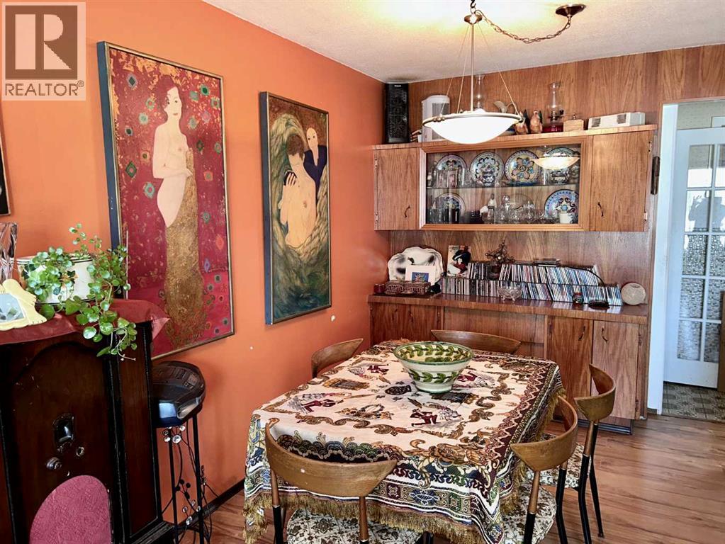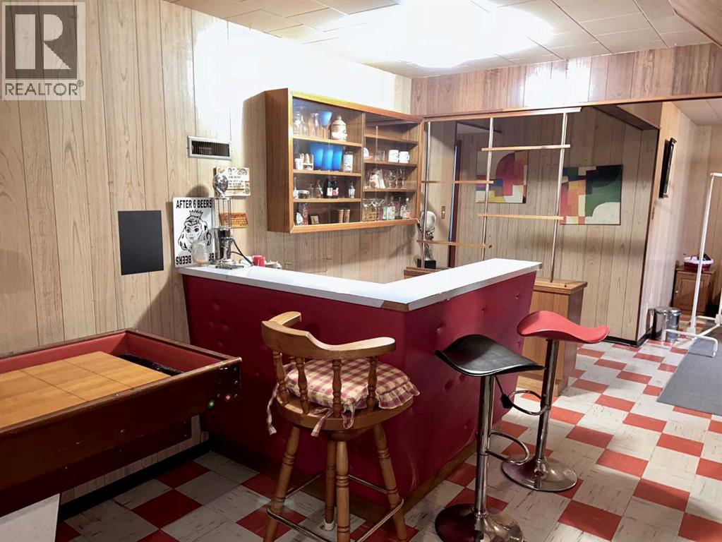 Welcome to this unique mid-century modern home located on a spacious corner lot in the charming Village of Innisfree. This unique property showcases stunning original features, including an unpainted built-in credenza, elegant china cabinet, and a distinctive curved wall - perfect for buyers who appreciate timeless design and architectural character. Inside, you'll find: 5 bedrooms (3 on the main level, 2 downstairs); 2 full bathrooms; A large eat-in kitchen with abundant cabinetry and counter space; and a fully developed basement with a kitchenette. The spacious rumpus room offers room for everyone, featuring a hidden playhouse for kids and a bar area for entertaining. Enjoy the outdoors in the 3-season enclosed porch, which opens to a private patio and connects to a double garage, providing ample parking for larger vehicles or extra storage. A single detached garage is useful as storage for lawn equipment.Bonus: This property includes the adjoining lot to the south, offering even more space or future development potential. Location highlights: Walking distance to local amenities including a convenience store, gas station, bank, postal service, and a K-12 school. Just off twinned Highway 16 (Yellowhead Highway) for easy access to Vegreville, Vermilion, and Edmonton (id:63190)