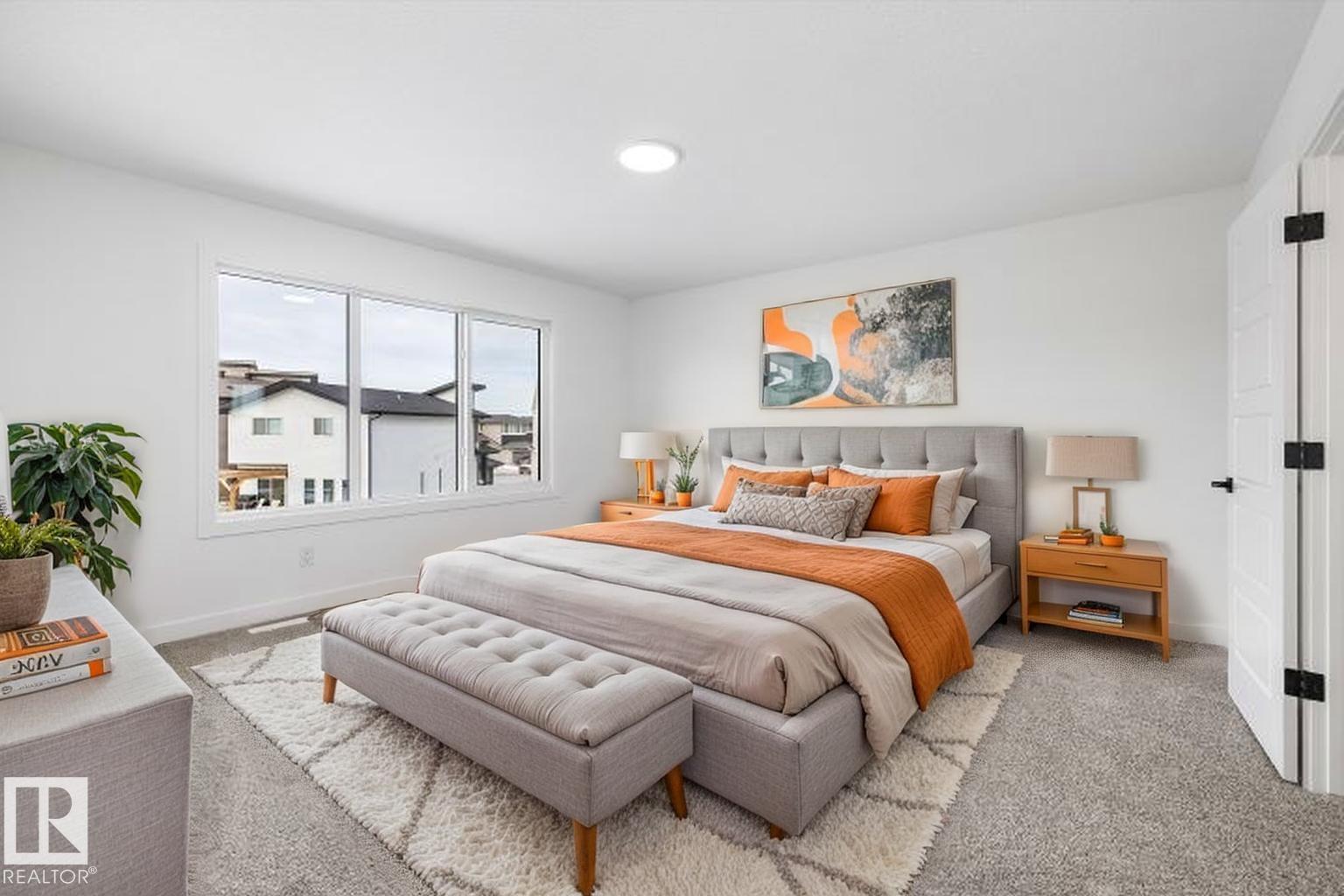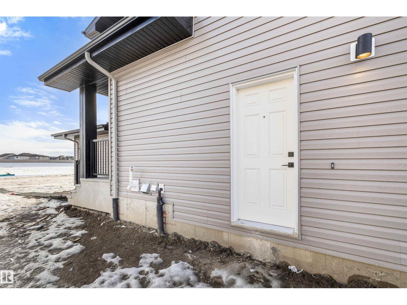 Built by Sterling Homes, this front-attached home in The Uplands at Riverview blends luxury finishes with functional family living in one of West Edmonton’s most scenic communities. Triple-pane windows and 9’ ceilings brighten the open main floor, where a welcoming foyer leads to a mudroom with access to the spice kitchen and walk-in pantry. The main kitchen features quartz countertops, a large island, custom cabinetry, chimney hood fan, full-height tile backsplash, and built-in microwave. The great room offers a tiled fireplace with wood mantle and a patio door to the backyard. Upstairs, the primary suite includes a 5-piece ensuite with freestanding tub, double sinks, glass shower, and walk-in closet connected to the laundry room. A bonus room, double-sink bath, and two bedrooms with walk-in closets complete the level. Finished with luxury vinyl plank flooring, upgraded railings, side entrance, and a double attached garage with floor drain. (id:63190)