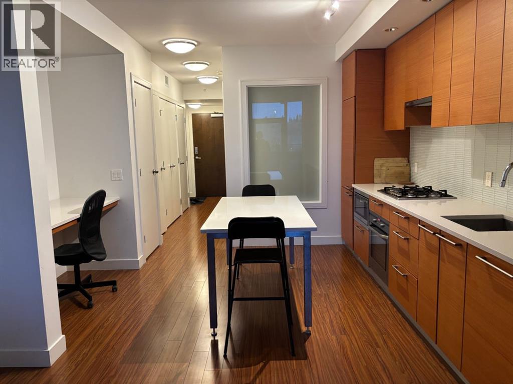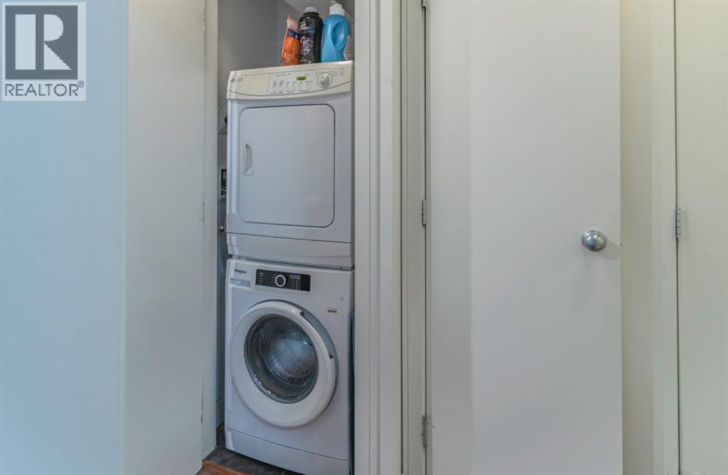 Fully furnished modern 1 bed/1bath condo unit on the "Flats Tower" of The Prestigious Waterfront Condo, Calgary's upscale Downtown neighborhood. Open concept floor plan, 9' ceilings, floor to ceiling windows. End unit & balcony is exposed to the view of the beautiful courtyard. Kitchen is fully equipped with high-end stainless steel appliances. Quartz central island & countertop. Full heights cabinetry. Bedroom has built-in head board, double bed-frame & 2 night tables. In-suite laundry & air conditioned. Unit includes an assigned parking stall & a storage locker. Enjoy living in a resort style building with superior amenities : concierge service, fitness facilities, hot tub, sauna, movie theatre, social lounge, outdoor garden patio, visitor parking & car wash. Move in & enjoy the lifestyle of a waterfront community along the Bow River & Princess Island Park. Walking distance to Downtown, Chinatown, East Village & Eau Claire Market, shops & restaurants. Bike or walk along the water path. Perfect for first time buyers or as an investment property. A great property to consider. (id:63190)