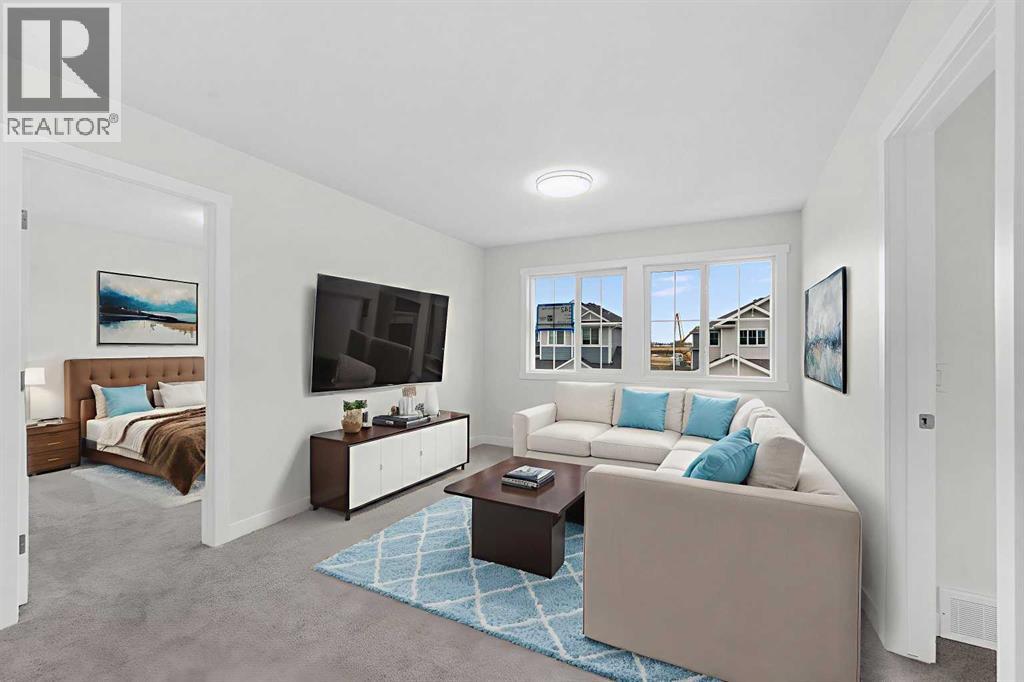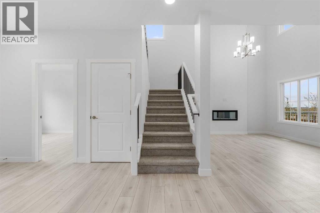 MODERN DESIGN!! FAMILY-FRIENDLY LAYOUT!! PRIME BALZAC LOCATION!! Step into a bright, open main floor featuring a welcoming living area with electric fireplace, spacious dining area with direct backyard access, and a beautifully designed kitchen with large island, built-in features, pantry, and extensive cabinetry. A main floor office adds everyday flexibility for work, study, or guests. Upstairs offers 3 bedrooms, 2 full baths, a family bonus area, and convenient upper-level laundry. The primary retreat includes a walk-in closet and luxurious 5-piece ensuite, while the other two bedrooms share a full 4-piece bath. The basement includes a separate entrance for future development potential. Rare oversized double attached garage with parking for three vehicles plus direct backyard access through a man door. Located in the growing community of Goldwyn, Balzac — minutes to CrossIron Mills, close to schools, and quick access to major routes. THIS IS THE KIND OF HOME YOU DON’T WAIT ON — BOOK YOUR SHOWING TODAY!! (id:63190)