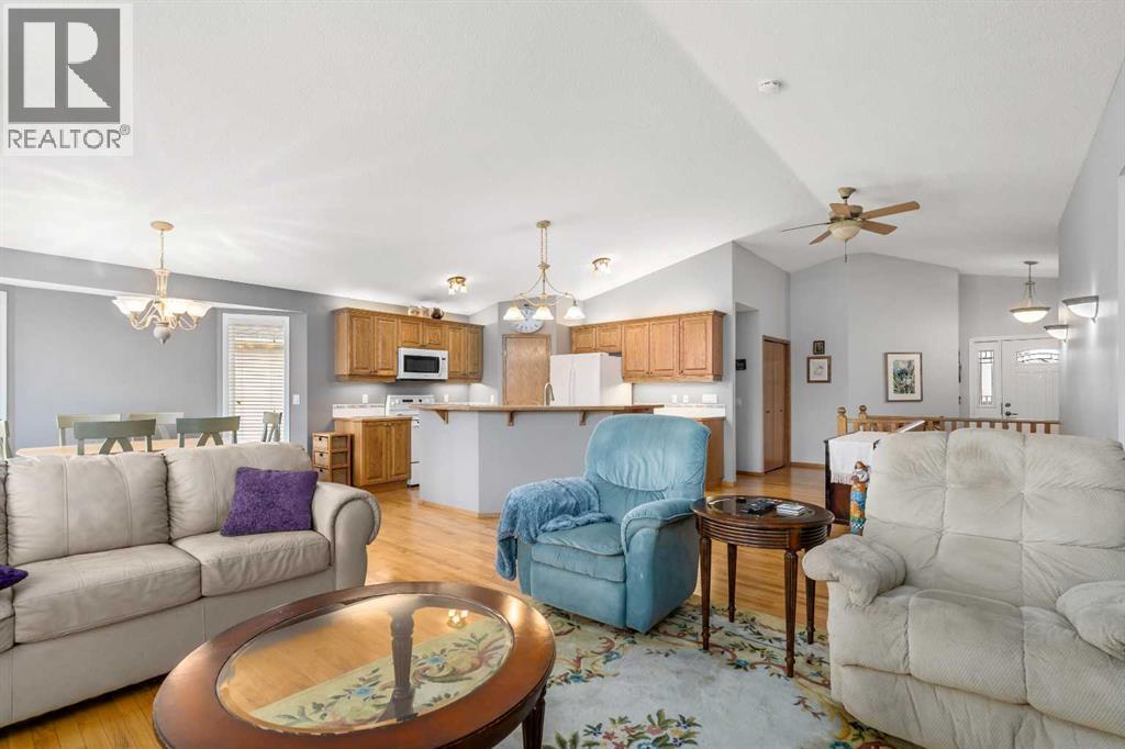 Discover this fully finished bungalow in northwest High River, featuring nearly 2,800 square feet of total living space. Offered by its original owners, this home backs onto the Happy Trails pathway along the Highwood River, providing serene views from your private back deck.With no age restrictions in the HOA, this property suits both families and retirees alike. Enjoy convenient access to the Highwood Golf Course, a nearby Grade 7-12 school, and family-friendly amenities including playgrounds, a spray park, and pump track. (id:63190)