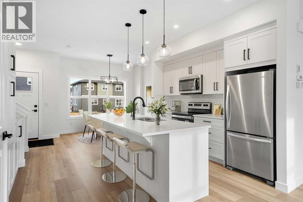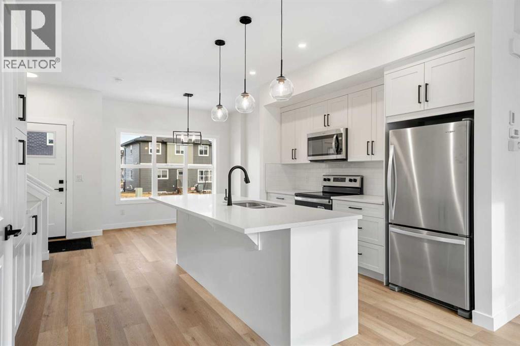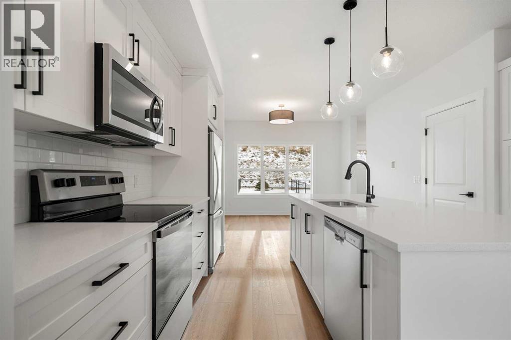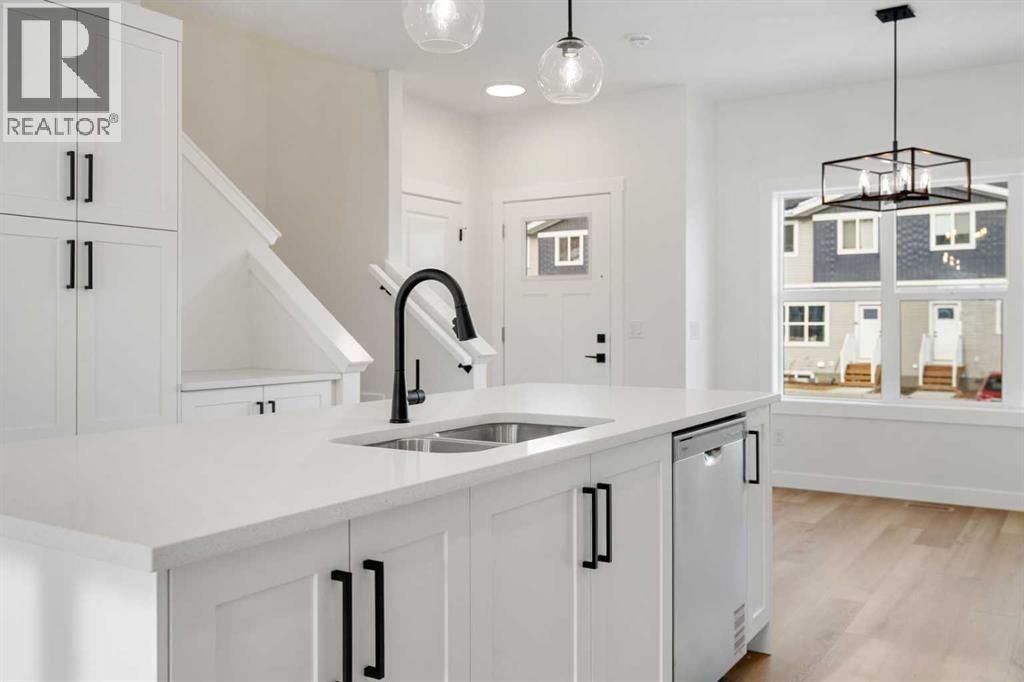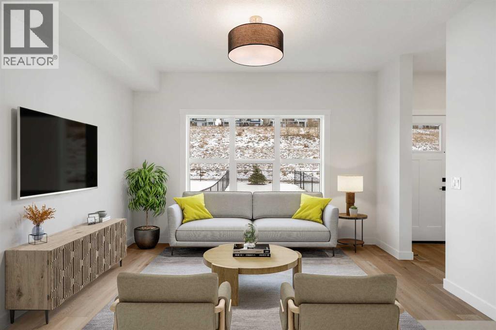 Welcome to the newly built #804, 525 River Heights Drive. This townhome features a HUGE SOUTH-FACING FENCED BACKYARD that offers the feel of a single-family yard. Inside, the main floor is bright and open, with a modern layout designed for both style and function. This unit backs onto a WALKING PATH AND GREENSPACE! At the heart of the home is a SLEEK CONTEMPORARY KITCHEN with QUARTZ COUNTERTOPS, MATTE BLACK HARDWARE, WHIRLPOOL STAINLESS STEEL APPLIANCES, SOFT-CLOSE CABINETRY, and a CENTRAL ISLAND WITH SEATING, ideal for casual dining or entertaining. The kitchen flows seamlessly into the dining and living areas, where LARGE WINDOWS and LUXURY FLOORING create a welcoming atmosphere. A powder room and a DEDICATED MUDROOM off the back entrance add practicality to everyday living. Upstairs, the primary bedroom includes a WALK-IN CLOSET and a PRIVATE THREE-PIECE ENSUITE. Two additional bedrooms provide versatile space for children, guests, or a home office. A four-piece bathroom and a CENTRALLY LOCATED LAUNDRY area complete the upper floor with added convenience. The unfinished basement offers potential for future development, extra storage, or a layout tailored to your needs. Energy-efficient features such as DUAL-PANE windows, a HIGH-EFFICIENCY HVAC system, and an HRV unit support year-round comfort. Outdoors, you can relax in your FULLY FENCED BACKYARD with a REAR PATIO or enjoy a quiet morning on the COVERED FRONT PORCH. 2 PARKING STALLS are INCLUDED, and with LANDSCAPING and SNOW REMOVAL taken care of, this property is truly low maintenance. Situated in the well-established community of RIVERSONG, you are close to schools, parks, walking paths, CO-OP and the Spray Lake Sawmills Family Sports Centre. Quick access to Highway 1 and 22 makes both Calgary and the mountains easy to reach. With quality finishes, a thoughtful design, and a vibrant neighbourhood, this home offers comfort and convenience in equal measure. Please note that photos are taken from the showhome an d may not reflect this property, as it is still under construction. CONTACT TO VIEW THE FREESTONE SHOWHOME at 525 RIVER HEIGHTS DRIVE – OPEN WEEKENDS 12 – 5pm! One or more photo(s) was virtually staged to help viewers visualize the home’s appearance once construction is fully completed. (id:63190)