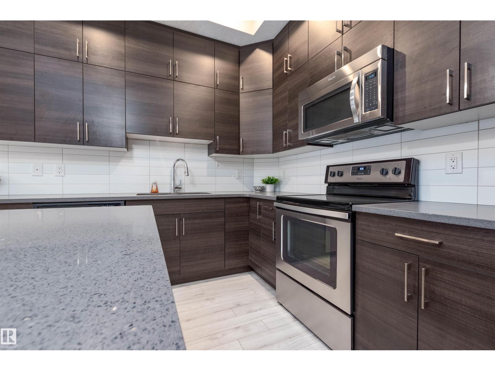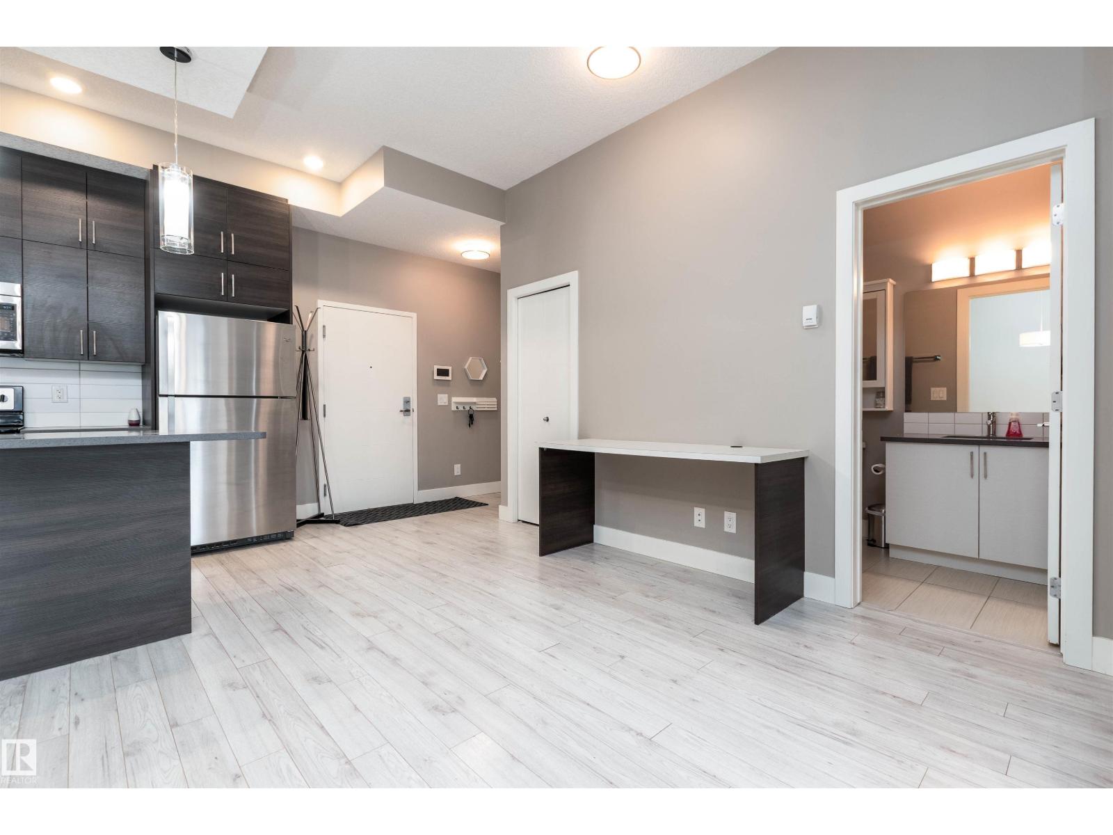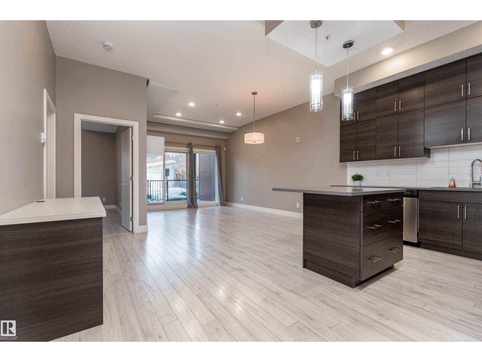 BEAUTIFUL & AFFORDABLE! This one bedroom condo in Strathcona offers an open concept with contemporary finishings, laminate flooring and 10 ft ceilings. Featuring a gorgeous kitchen with QUARTZ countertop island, modern cabinetry, and stainless steel appliances. Dining area, living room and direct access to your private patio. AMAZING ROOFTOP TERRACE with PANORAMIC CITY SKYLINE VIEWS! ONE TITLED UNDERGROUND PARKING STALLS plus a TITLED MAIN FLOOR STORAGE UNIT. Monthly condo fee is $534.72 includes heat and water and professional management. Super location close to the River Valley, U of A, Whyte Avenue, restaurants and shopping. Great value and location! Visit REALTOR® website for information. (id:63190)