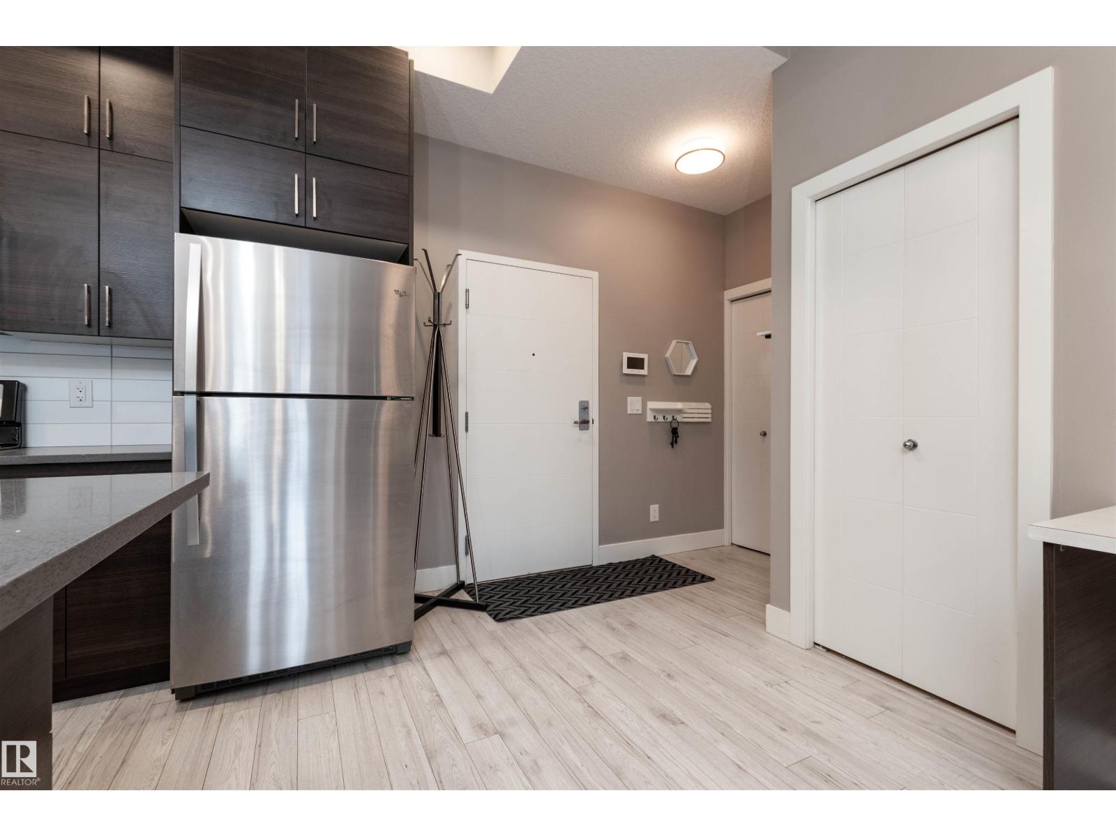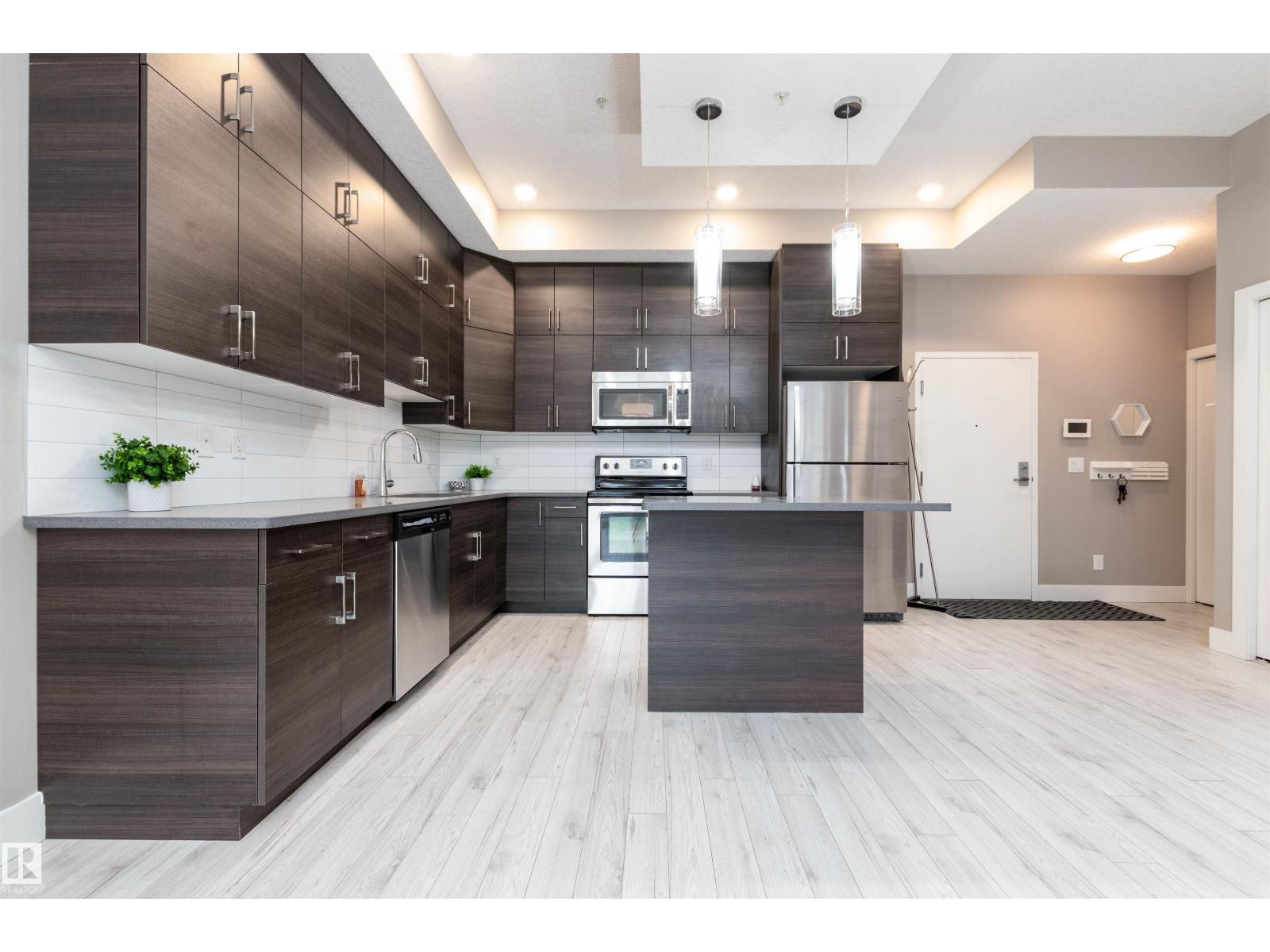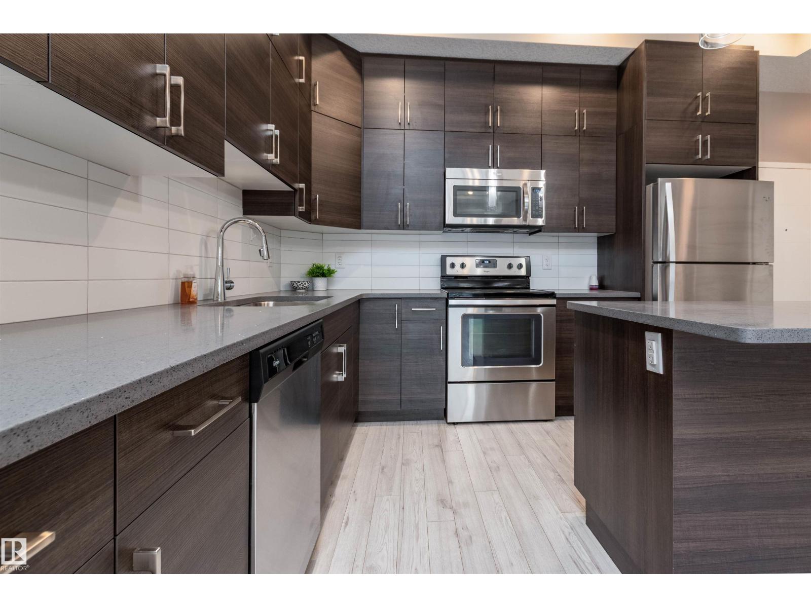 BEAUTIFUL & AFFORDABLE! This one bedroom condo in Strathcona offers an open concept with contemporary finishings, laminate flooring and 10 ft ceilings. Featuring a gorgeous kitchen with QUARTZ countertop island, modern cabinetry, and stainless steel appliances. Dining area, living room and direct access to your private patio. AMAZING ROOFTOP TERRACE with PANORAMIC CITY SKYLINE VIEWS! ONE TITLED UNDERGROUND PARKING STALLS plus a TITLED MAIN FLOOR STORAGE UNIT. Monthly condo fee is $534.72 includes heat and water and professional management. Super location close to the River Valley, U of A, Whyte Avenue, restaurants and shopping. Great value and location! Visit REALTOR® website for information. (id:63190)
