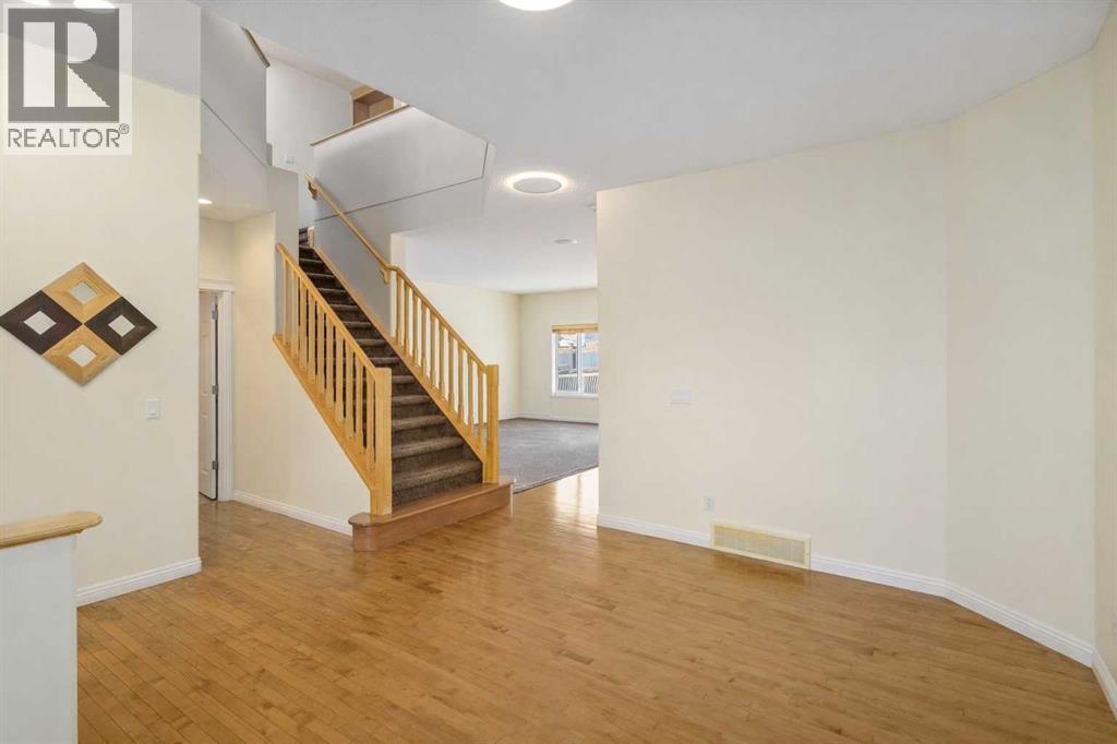 Welcome to the highly coveted neighbourhood of Kincora in Calgary NW. For the growing family, this two-storey, 3 bdrm., 2.5 bath, 2,077 sq. ft. home could be the ideal match. Numerous updates have been completed, including but not limited to central air conditioning (2025), upgraded hot water tank, newer appliances, central vac and new garage door opener. Introducing the main floor starts with the front-facing, attached double garage plus double-parking pad, which covers your parking requirements. Enjoy the benefits of energy-efficient living with professionally installed solar panels - a rare feature in the neighbourhood that helps lower utility costs and supports a sustainable lifestyle. Peace of mind comes standard with a radon remediation system - a valuable health and safety feature that sets this home apart from others in the area. When you step in, the tiled foyer gives you an immediate view of tall ceilings, warm oak hardwood floors, pleasing neutral colours and an overall feeling of spaciousness. The living room lies to the right of the foyer and from there leads to an open concept family room kitchen/dining area flooded with natural light from south-west facing windows. The carpeted family room has a natural gas corner fireplace and is ideal for keeping an eye on the kids while prepping dinner in the adjacent kitchen featuring honey-coloured cabinets, tiled backsplash, an island with a double sink, stainless steel appliances and a corner pantry. The dining area, which leads to a sun-drenched railed deck outside, is a prime entertainment area. A sizable, tiled laundry room with ample closet space, also accessible from the garage. and a 2-pc. bath completes the main level. Moving up to the carpeted second level, a well-windowed bonus room at the head of the stairs offers up endless options – home office, library, play area, etc. The primary bedroom is super spacy with a walk-through 4-pc. ensuite and a walk-in closet adjoining. Two additional bedrooms share a second 4-pc. bath. The basement is unfinished and only limited by your imagination as to developable options. The generous backyard is fenced for privacy and features a sitting area covered with pavers, plus a tiered lawn/shrub area at the rear of the property for those interested in exercising their green thumb. Proximity to Stoney, Shaganappi and Sarcee Trails and the surrounding shopping/restaurant areas, i.e.Creekside Shopping Centre, plus Kincora Pond, soccer fields, playgrounds, schools and churches make Kincora a perfect family-oriented neighbourhood. This home has been carefully maintained and is a delight to view. (id:63190)