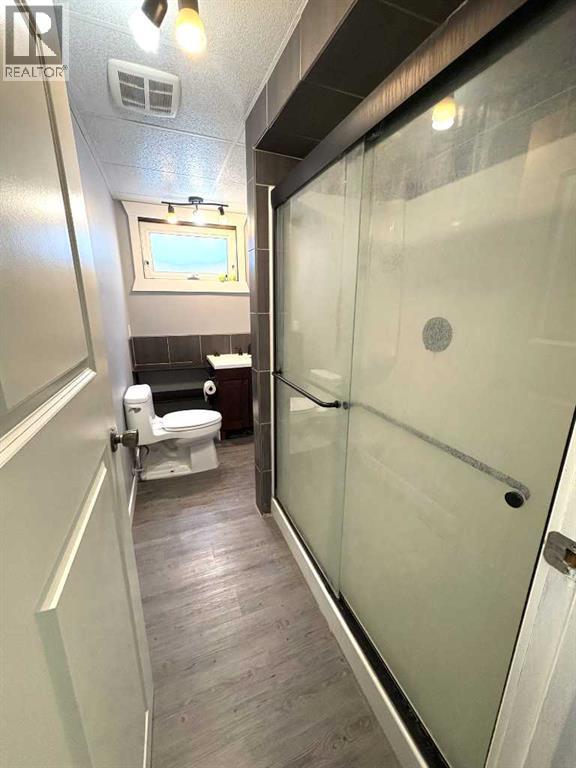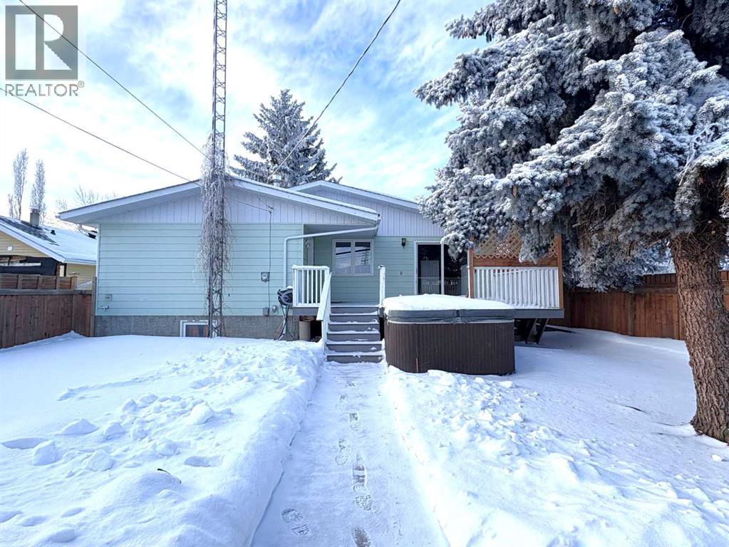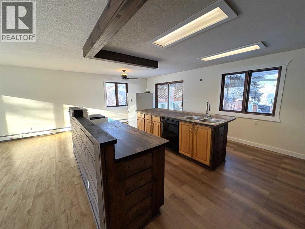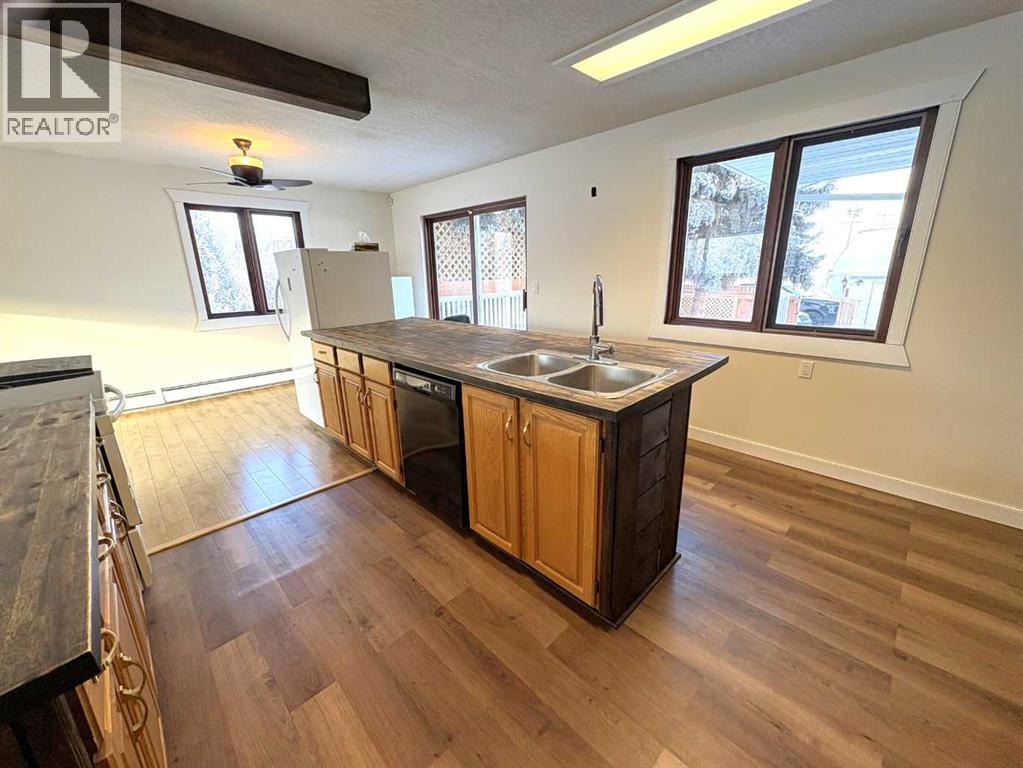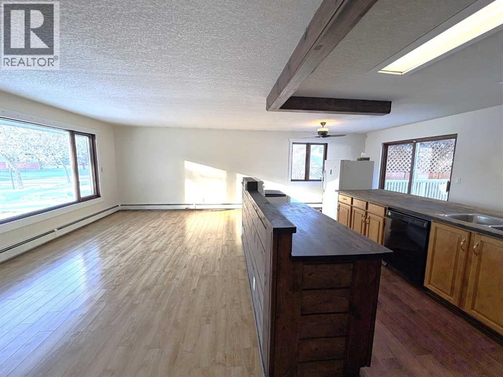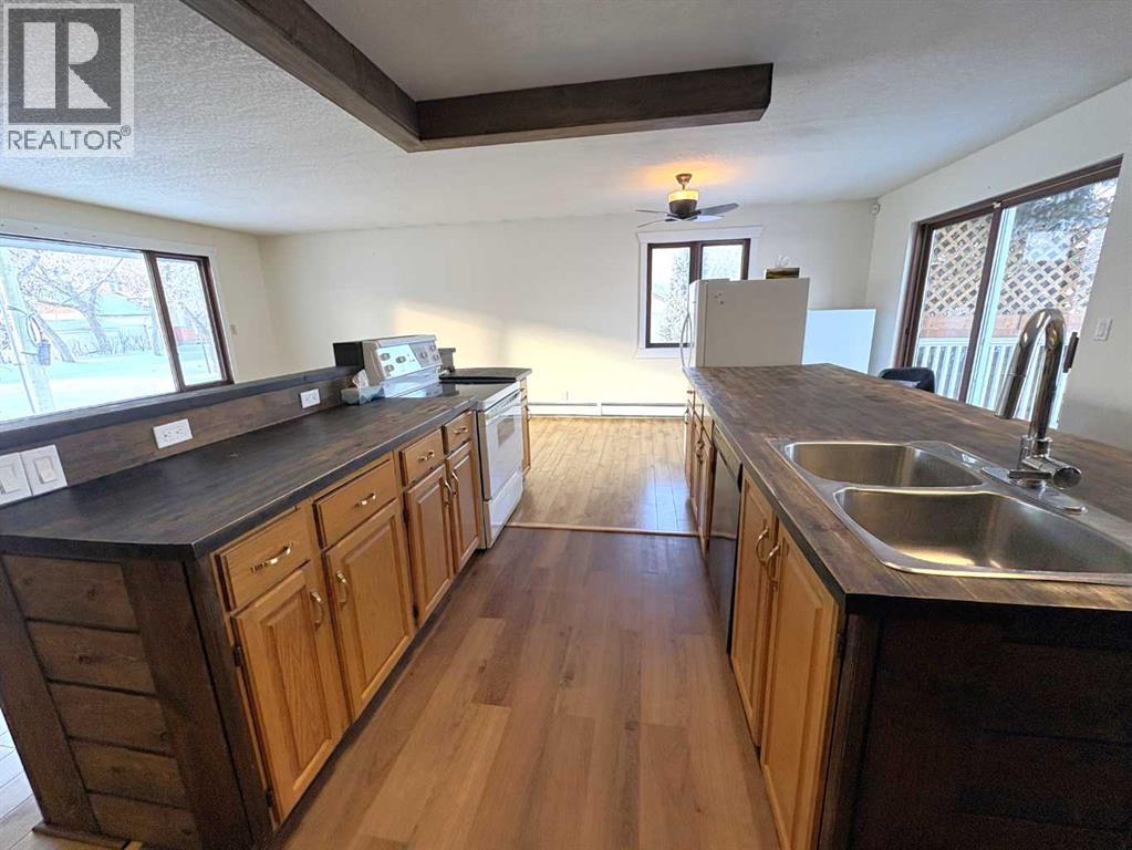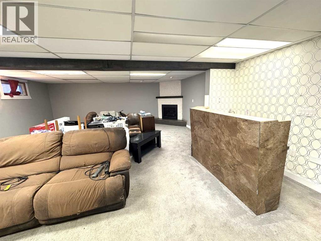 Check out this great family home. 1300 square foot bungalow. Four bedrooms, two full bathrooms, two 1/2 baths. You will love the open floor plan, perfect for entertaining family and friends. The spacious kitchen has two large islands which flow into the dining area. There are sliding doors to back deck. The bright living room has an outside powered roll down storm blind. The primary bedroom has a two piece en suite and walk-in closet, one more bedroom and a newer four piece bathroom. Main floor laundry for your convenience with another two piece bathroom. The finished basement features a large family room with a cozy gas fireplace and wet bar. There are two more bedrooms, another newer three-piece bathroom and two storage rooms. You will love your private fence backyard and maintenance free deck to enjoy your morning coffee. The detached 24‘ x 28‘ insulated garage gives you plenty of room to park and still have room for work area . Enjoy small town living in the vibrant community of Forestburg. (id:63190)