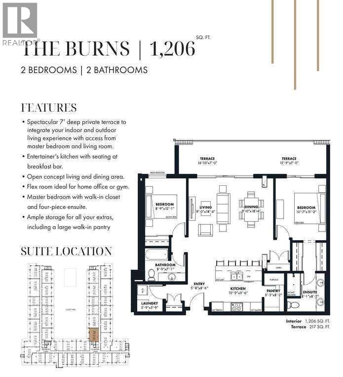 For more information, please click the "More Information" button. Step into a home where thoughtful design and modern comfort come together to create an inviting sanctuary for every lifestyle. A spectacular 7-foot-deep private terrace seamlessly blends indoor and out door living, with direct access from by the primary bedroom and living room. Ideal for enjoying morning coffee, unwinding in the evening, or hosting guests with elegance. The gourmet kitchen is a culinary centerpiece, featuring a spacious breakfast bar, ideal for casual meals or hosting friends and family. Enjoy the bright open concept living and dining area, designed for effortless gatherings, celebrations or quiet nights at home. Large windows fill the space with natural light, enhancing the sense of openness and warmth. A flex room that can be easily transformed to suite every lifestyle - perfect as a home office, gym, or creative space. Offering storage solutions throughout the home, including a large walk-in pantry, provide plenty of space. This exceptional property combines functional design with refined finishes, delivering a home that truly elevates everyday living. Photos contain digitally rendered and/or sample images. (id:63190)