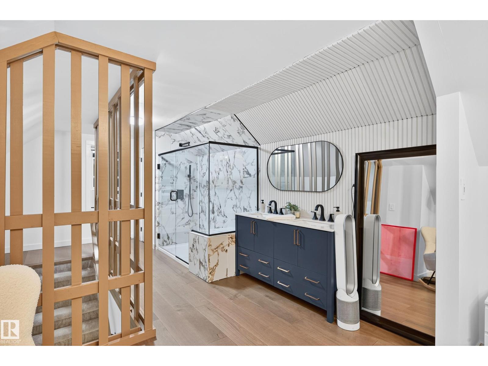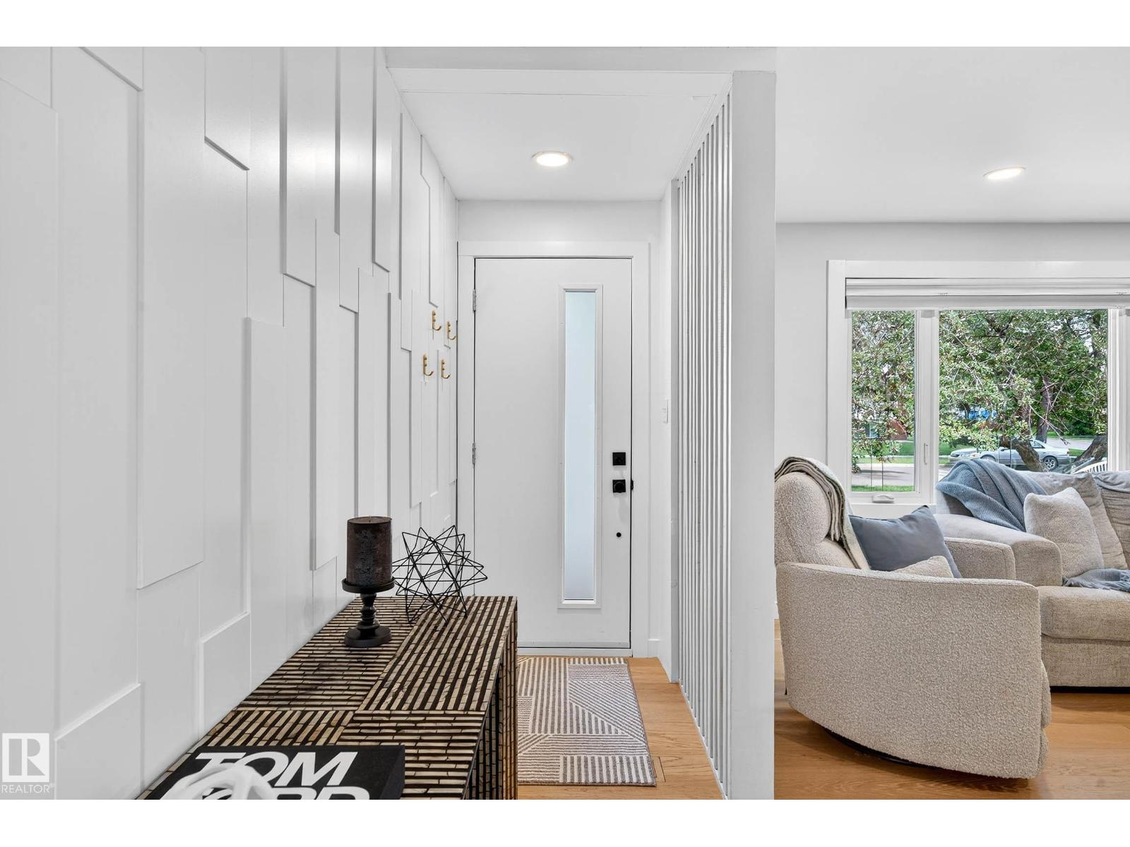 Welcome to Allendale! FULLY RENOVATED 1.5-storey home sits on a generous lot in an unbeatable location! Outstanding curb appeal showcases refreshed landscaping & welcoming front porch w/sleek glass railing. Step inside to a bright, airy & thoughtfully designed floor plan highlighted by contemporary finishes throughout. This home has truly had “THE WORKS”—a comprehensive renovation including windows, shingles, Hardie board siding, fencing, lighting, engineered hardwood flooring, geo wall panels, curved archways, stylish barn door, custom cabinetry, built-in shelving, updated appliances, farmhouse kitchen sink, modern countertops & backsplash, fresh paint, blackout blinds & fully updated bathrooms w/new fixtures. Convenient rear mudroom leads to a step-down deck & fully fenced, landscaped yard, complete w/oversized single garage featuring an extended covered patio—perfect for outdoor entertaining. Finished basement offers a spacious Rec Room, 4th bdrm, full 4-piece bath & ample storage. MUST SEE!!! (id:63190)