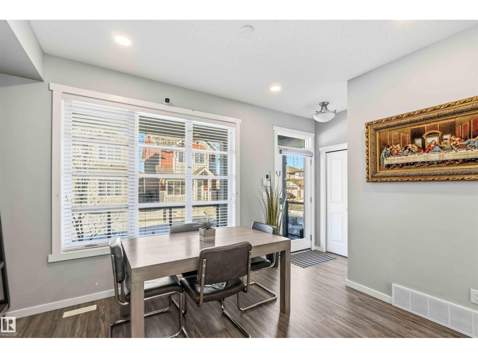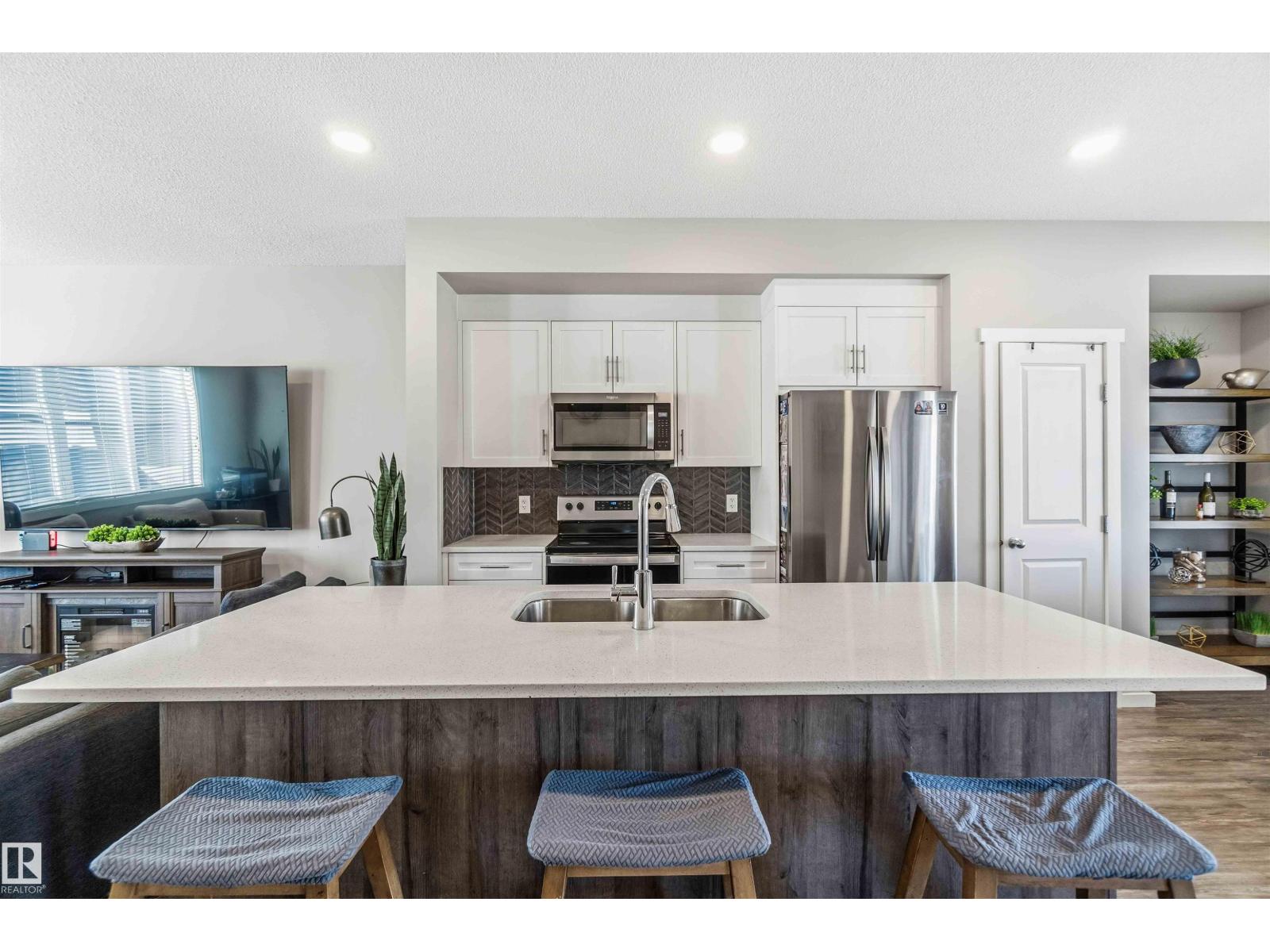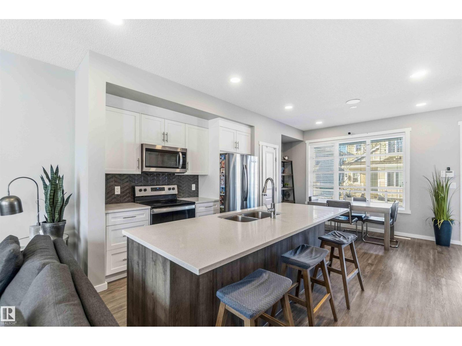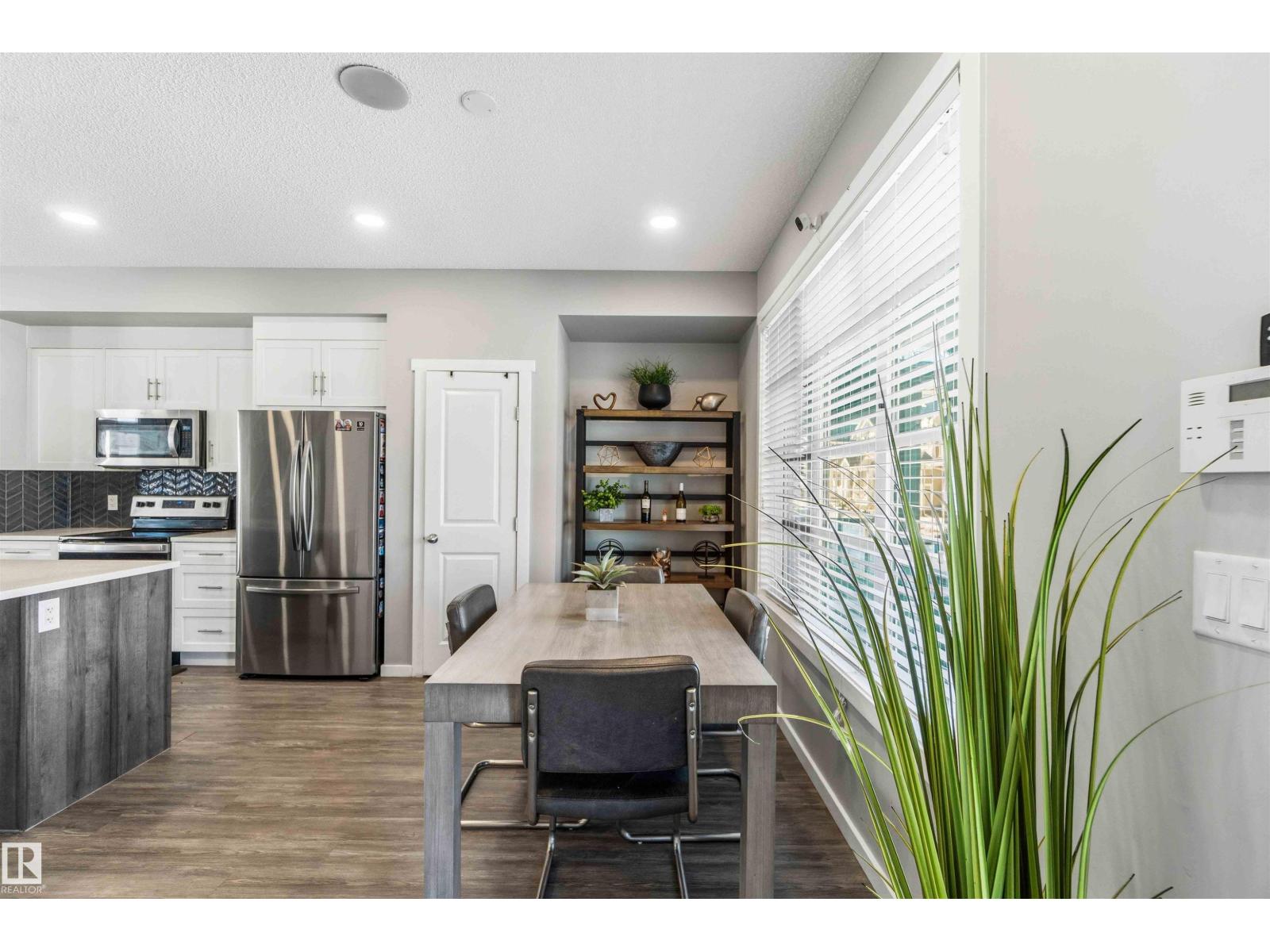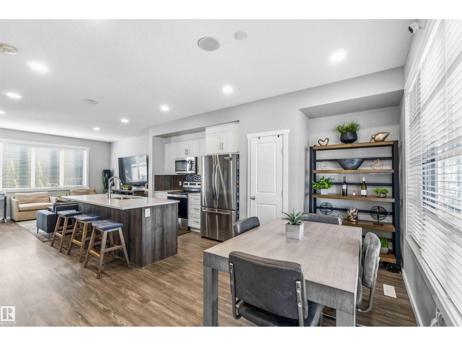 This former Homes by Avi showhome sits on a premium greenspace lot in the sought-after community of Laurel Green, offering style, space, and privacy in one exceptional package. The home features 3 spacious bedrooms, 2.5 bathrooms, and a bright, open main floor with 9’ ceilings and luxurious vinyl plank flooring throughout. The chef-inspired kitchen is finished with quartz countertops and a stainless steel appliance package, perfect for both everyday living and entertaining. Outside, enjoy the convenience of a double detached garage, full professional landscaping, and complete fencing—everything already done, just move in and enjoy. home has central air. (id:63190)