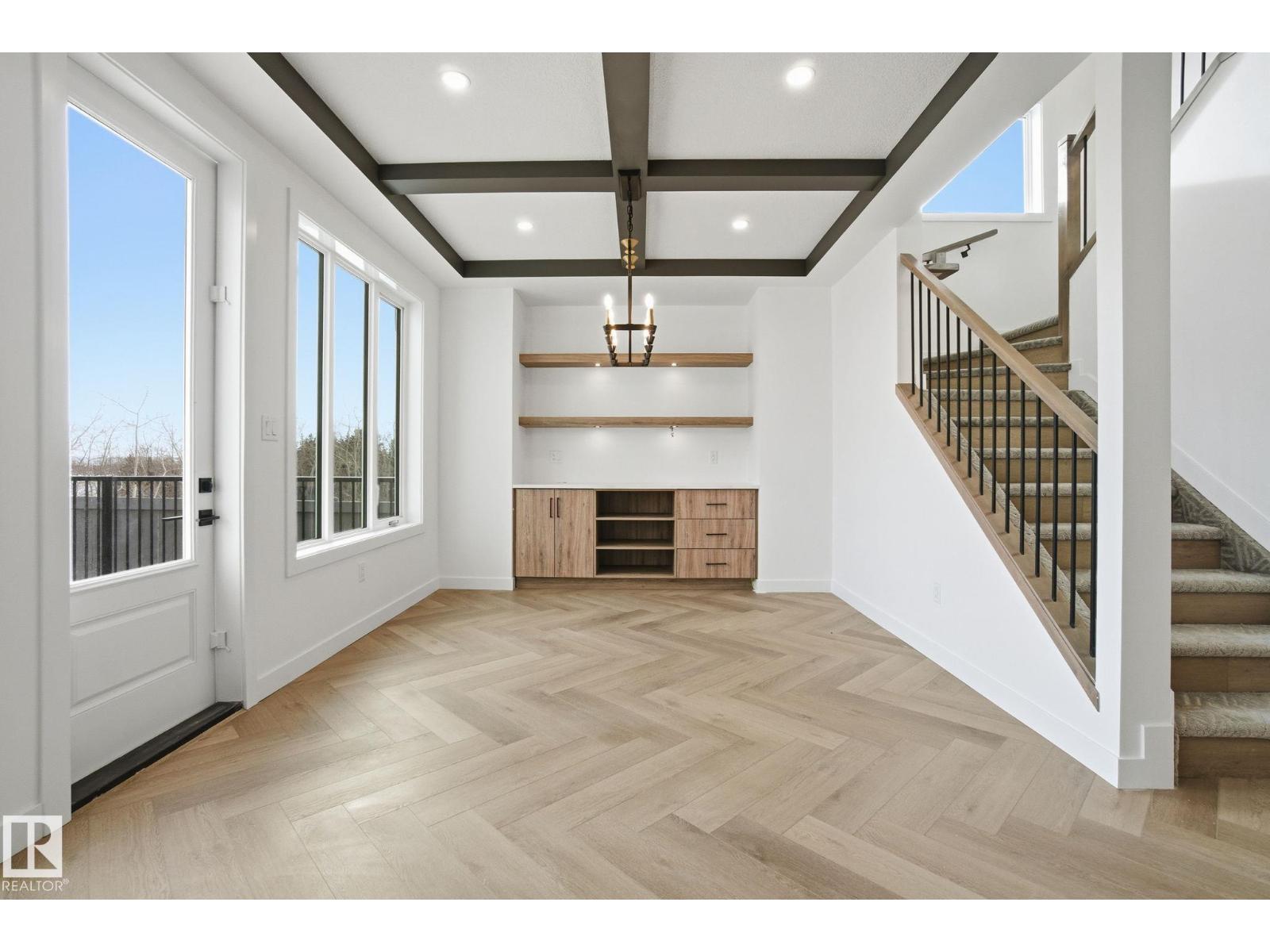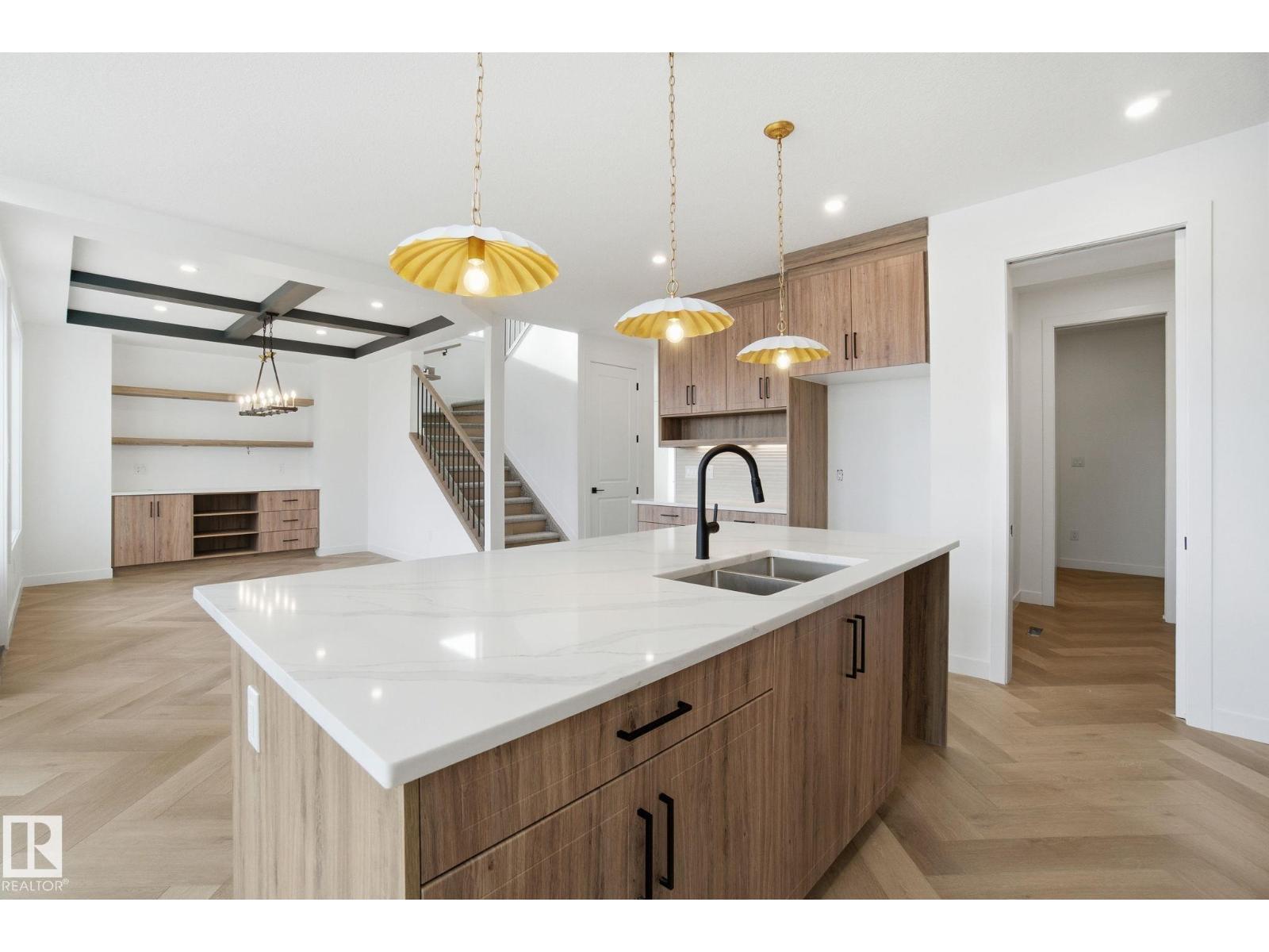 Welcome to our AVA model, this stunning home in the community of Marquis West. Offering 2,690sq/ft of modern elegance, this residence is thoughtfully designed to blend sophistication with functionality. From the moment you step inside, you’ll be captivated by the dropped living room, creating a distinct yet open space that adds a touch of elegance and privacy. The chef’s kitchen is a masterpiece, boasting high-end finishes, and ample cabinetry, making it the perfect space to entertain. The main floor also features a versatile den, perfect for a home office or an additional bedroom, along with a beautifully designed 3 piece bath. Upstairs, you’ll find 3 spacious bedrooms, including a luxurious primary suite with a spa-inspired ensuite and walk-in closet, and a second full bathroom complete the upper level, ensuring comfort for the entire family. . A separate entrance leads to the unfinished basement, allowing to customize the space to fit your needs. Placed beside a park and path, ultimate privacy (id:63190)