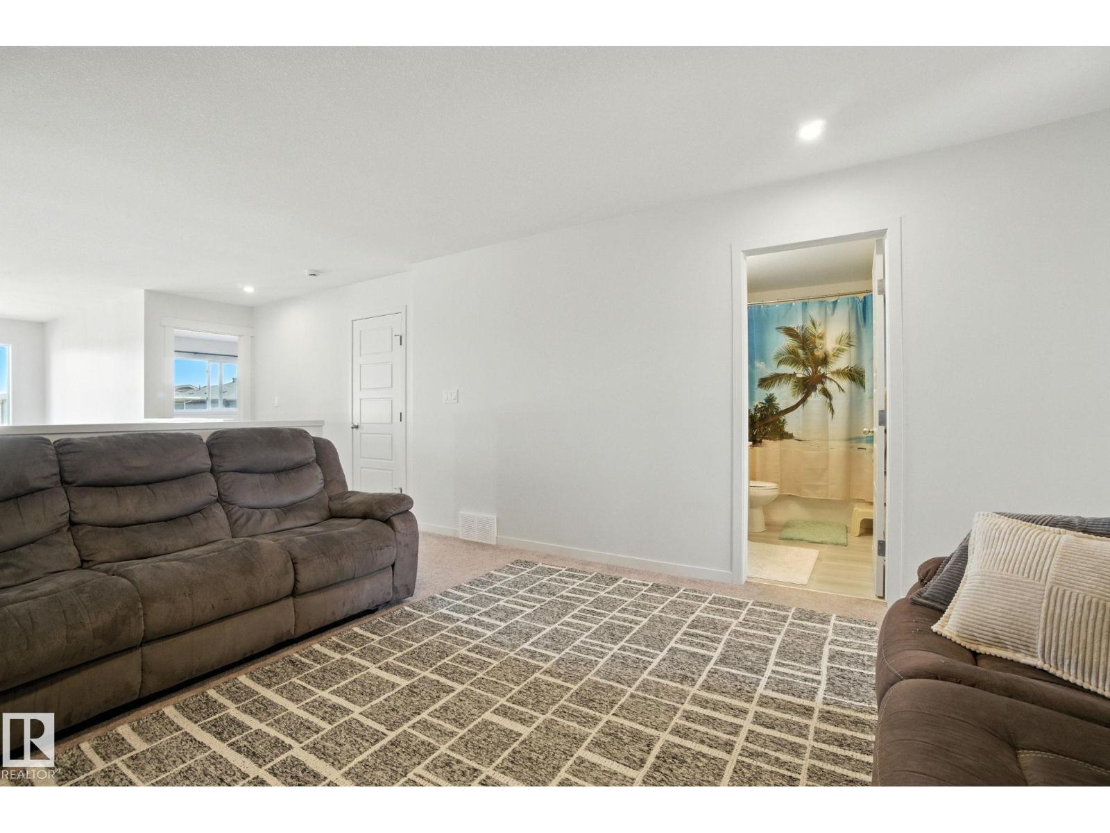 Great New 2-Storey Family home backing onto a walking path in one of Spruce Grove's fastest growing communities! This 2000 sq ft home features 4 bedrooms, 3 full bathrooms & loads of great features! Open concept main floor with large open to above living room with tons of natural light. Kitchen is a great size with a HUGE pantry and quartz countertops. Dining area is perfect for hosting family & friends! Main floor bedroom makes a great den or bedroom space & there's a full 3pc bath too. Upstairs you'll find a large bonus room, ideal spot to watch a hockey game! Master suite has plenty of furniture space, a 5pc ensuite & walk in closet! 2 more bedrooms, great for kids or guests. UPSTAIRS LAUNDRY! Basement is unfinished and ready for future development. Double attached garage. Great deck to enjoy on warm evenings and the landscaping is already done too! Lot backs onto a walking path for some extra separation from neighbours. Close to shopping and parks too! (id:63190)