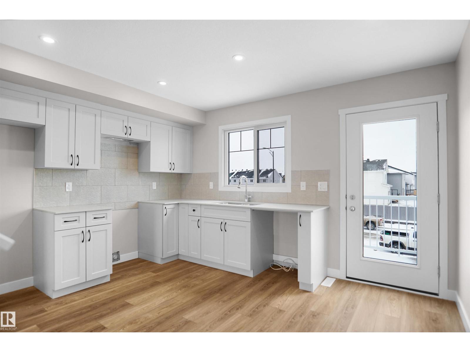 Welcome to this brand new half duplex the “Reimer” Built by the award winning builder Pacesetter homes and is located in one of Edmonton's newest west end communities of River's Edge. With over 1,288 square Feet, this opportunity is perfect for a young family or young couple. Your main floor as you enter has a flex room/ Bedroom that is next to the entrance from the garage with a 3 piece bath. The second level has a beautiful kitchen with upgraded cabinets, upgraded counter tops and a tile back splash with upgraded luxury Vinyl plank flooring throughout the great room. The upper level has 2 bedrooms and 2 bathrooms. This home also comes completed with a single over sized attached garage. This home is move in ready! (id:63190)