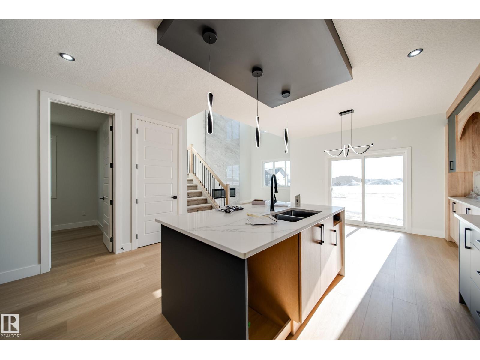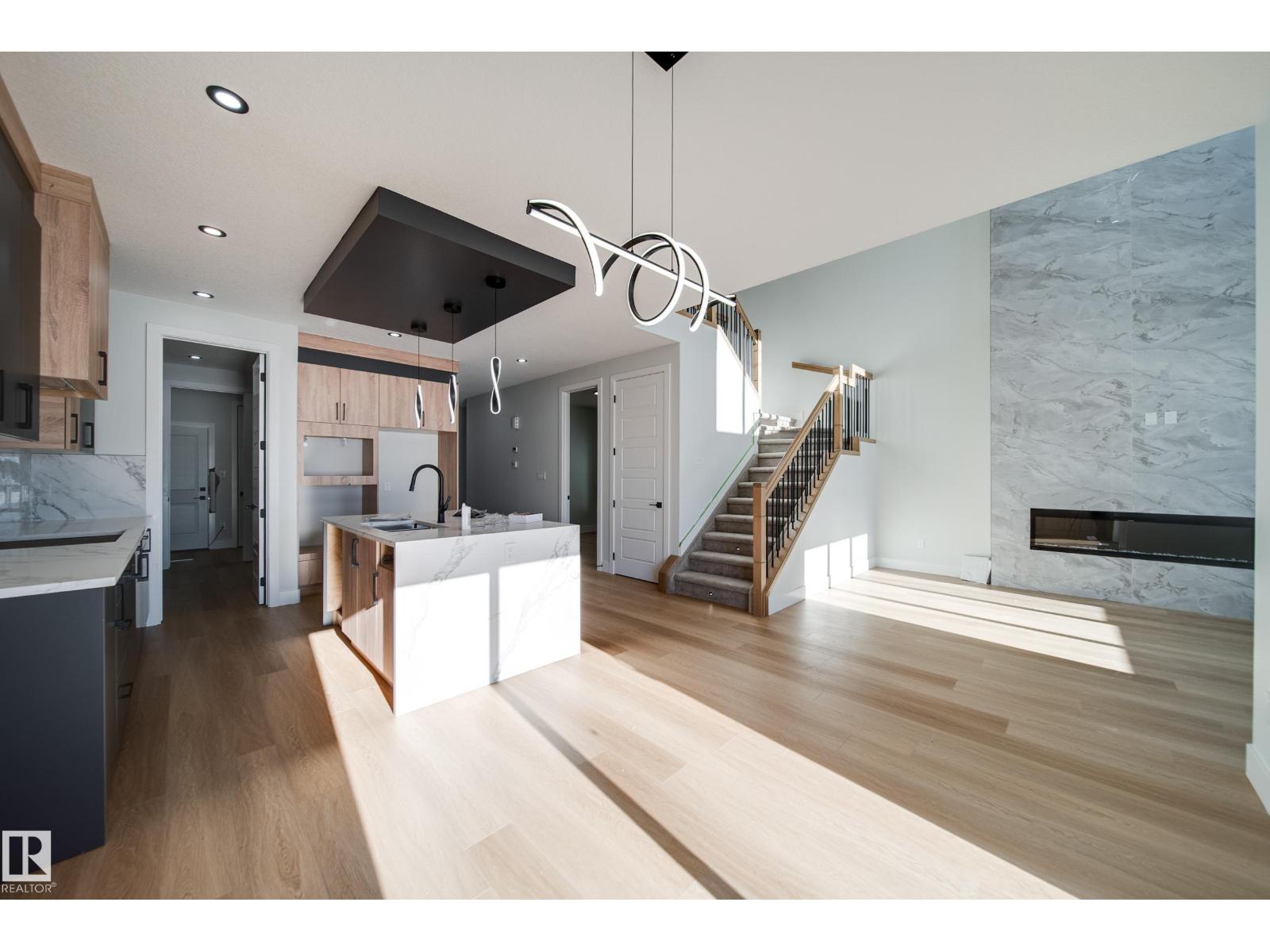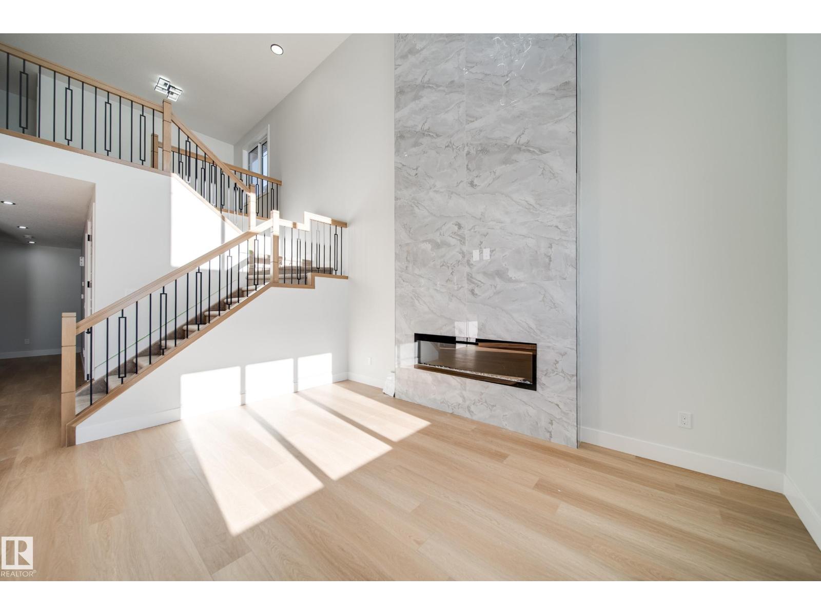 Welcome to the Crystal I by Active Homes built in the sought after neighbourhood of Crystallina. This Breathtaking 5 bedroom home is the ideal location for those with growing families looking to optimize their space at home. You'll be greeted by 9 FT CEILINGS and a spacious foyer. The MAIN FLOOR BEDROOM/DEN is ideal for those looking for an extra room, or an at home office. The WALKTHROUGH SPICE KITCHEN w/hidden door opens to your large QUARTZ ISLAND with an abundance of counter space and EXTENDED CABINETRY. The OPEN TO ABOVE living room allows for lots of natural light throughout the home. Upstairs, find 4 SPACIOUS bedrooms, including a stunning primary retreat w/a spa-like ensuite featuring a soaker tub, tiled shower, and generous WALK-IN CLOSET. This home also offers the convenience of UPSTAIRS LAUNDRY. The DOUBLE ATTACHED GARAGE provides ample room for 2 vehicles & excess storage space. The side entrance allows for future basement development. Upgrades throughout, and ready for immediate possession! (id:63190)
