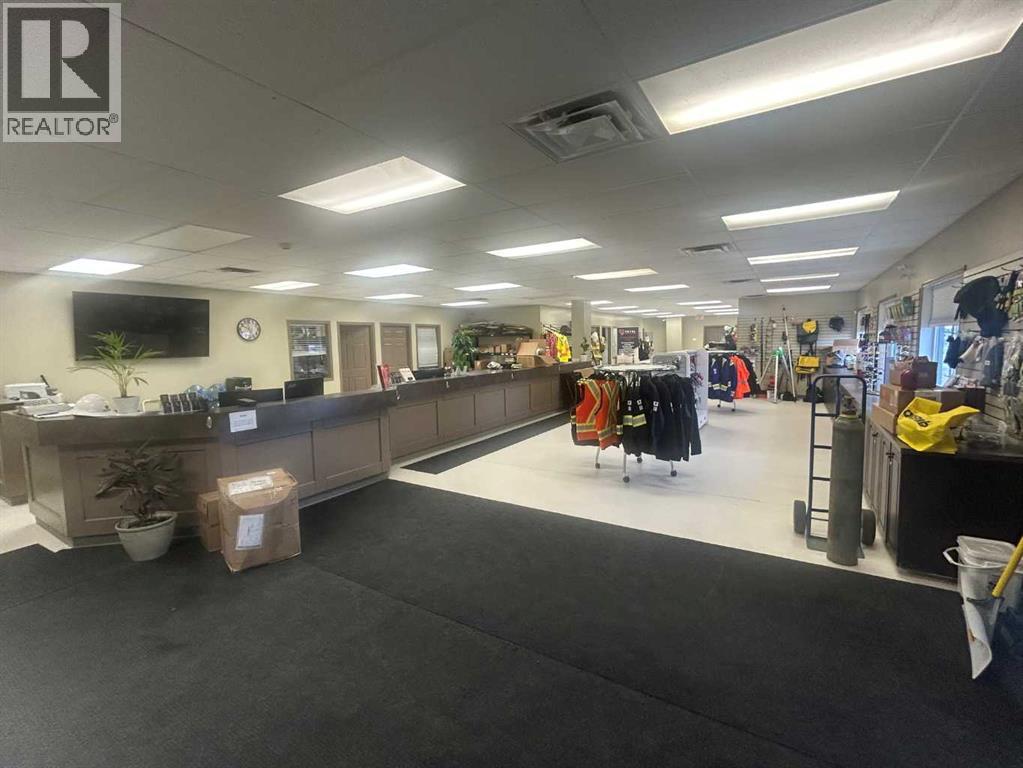 This 8,740 SF standalone building on 1 acre is available for sale. The building features an open reception area/showroom, six offices, two washrooms, and a large shop with (2) 14' x 16' overhead doors that create a drive-thru bay, as well as a storage mezzanine. The yard is graveled and fully fenced with access from the East and North sides of the property and ample paved parking is available directly in front. This location offers quick access to Highway 11, Highway 11A, and Highway 2. The property is also available for lease. (id:63190)