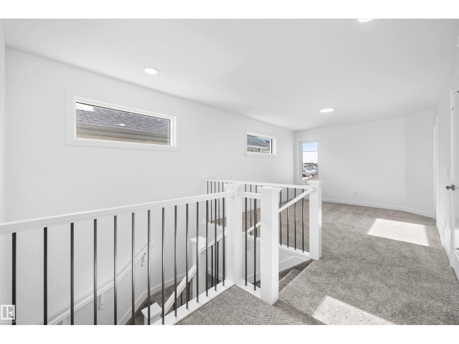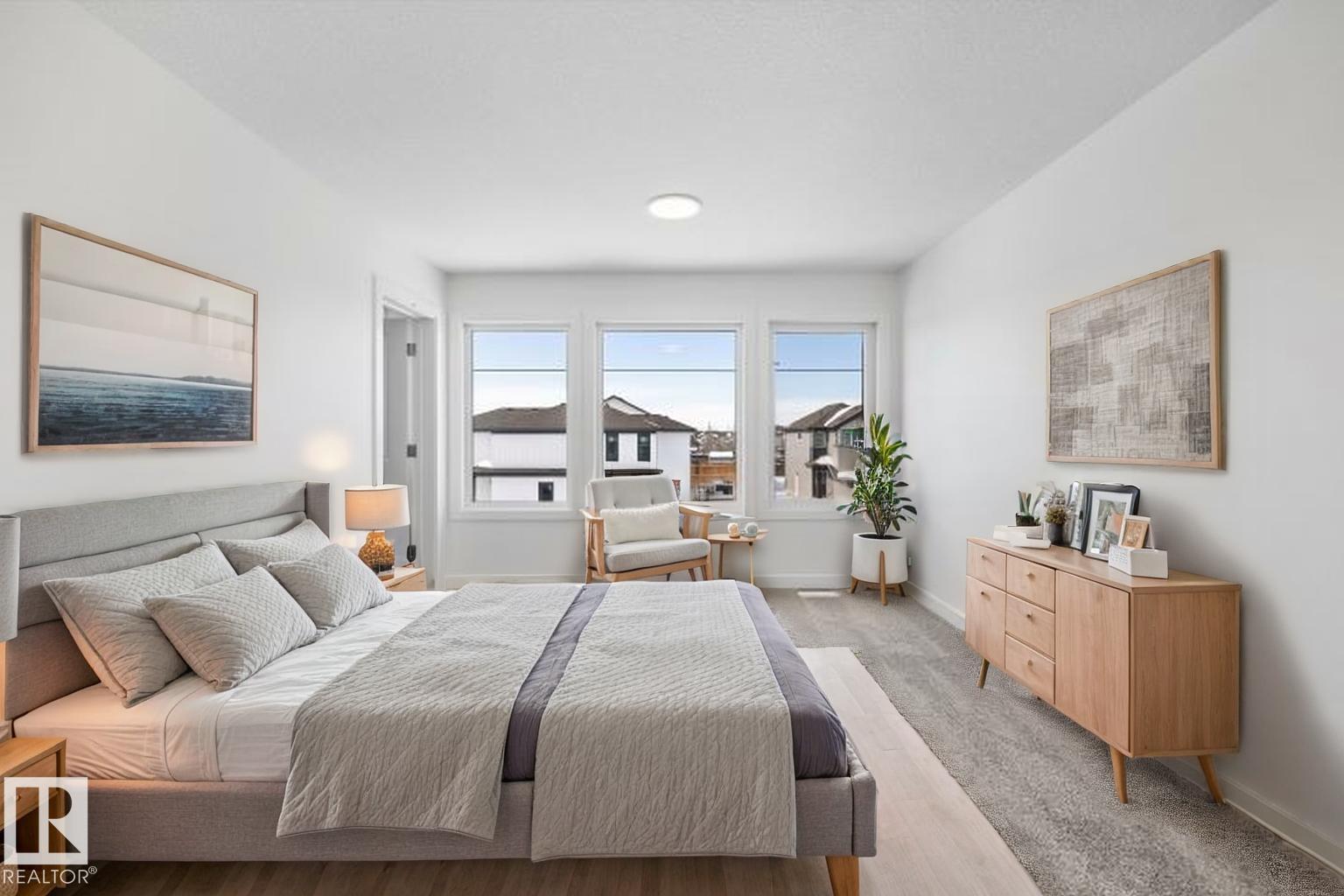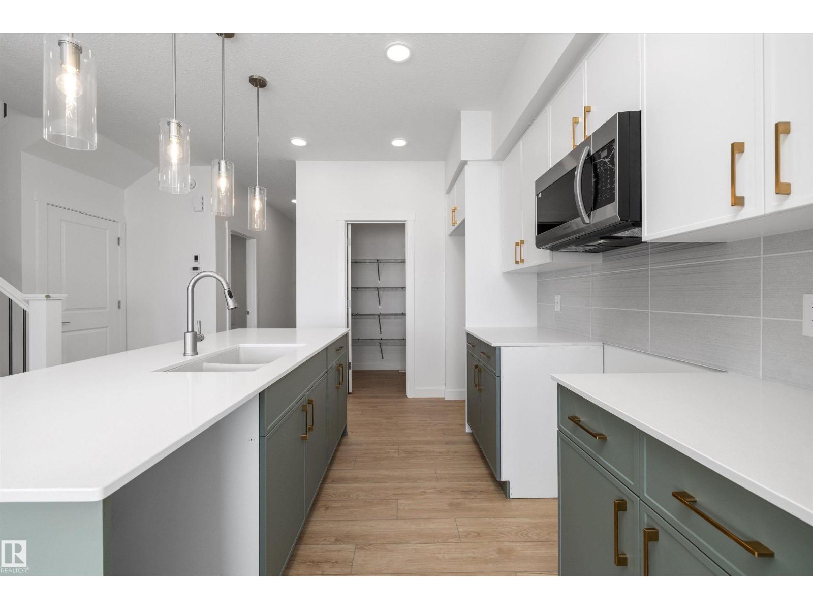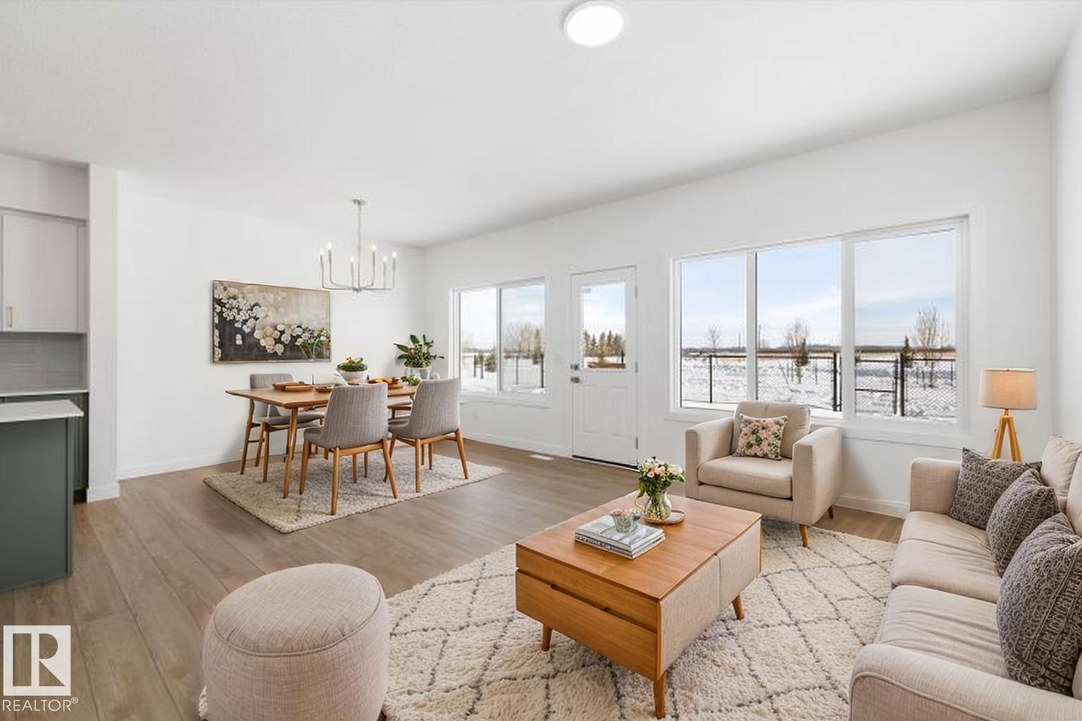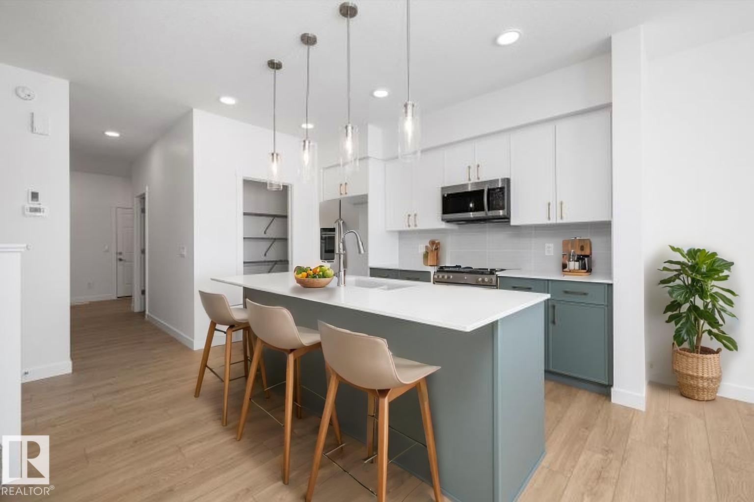 Built by Sterling Homes, this beautifully finished front-attached home in Sienna blends modern style, comfort, and thoughtful design in one of Fort Saskatchewan’s most welcoming family communities. Triple pane windows and 9’ ceilings flood the main floor with natural light. A main-floor bedroom and full 3-piece bath offer flexibility for guests or extended family. The open-concept kitchen features quartz countertops, a large island, upgraded cabinetry, tiled backsplash, corner pantry, and over-the-range microwave, flowing seamlessly into the dining area and great room with backyard access. Upstairs, the bright primary suite includes a spa-inspired 5-piece ensuite and walk-in closet, along with a bonus room, upper-floor laundry, full bath, and two additional bedrooms. Luxury vinyl plank flooring, upgraded railings, a separate side entrance, oversized double attached garage with floor drain, and basement rough-ins complete this stylish, family-friendly home. (id:63190)