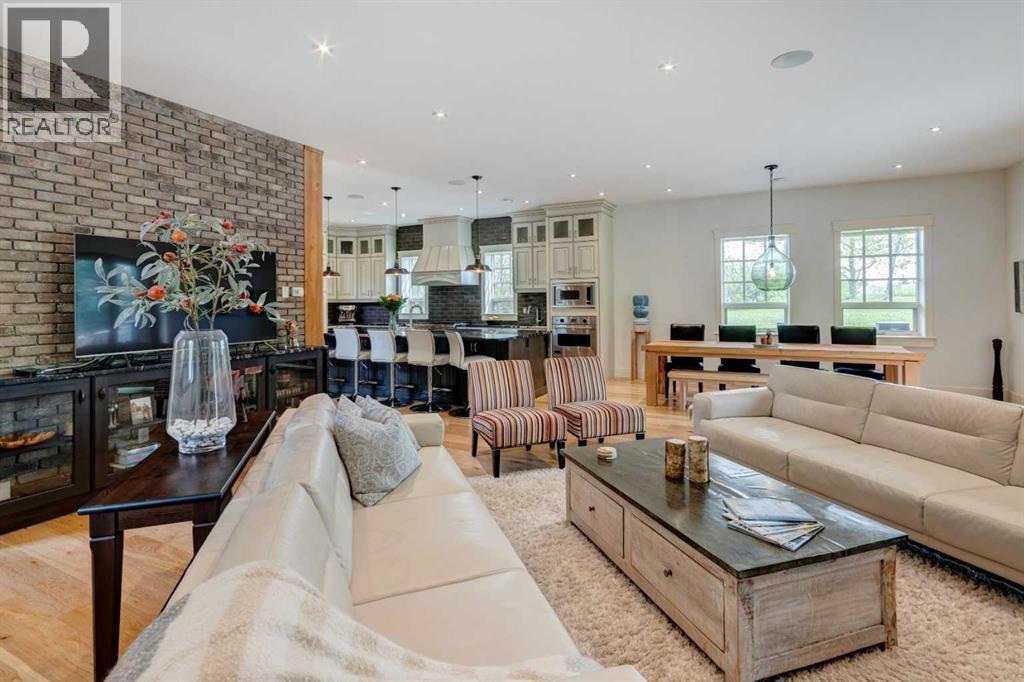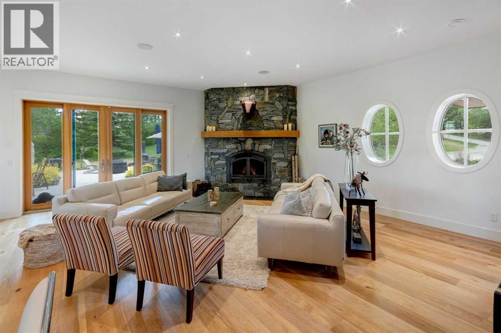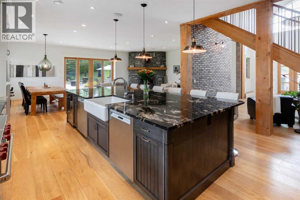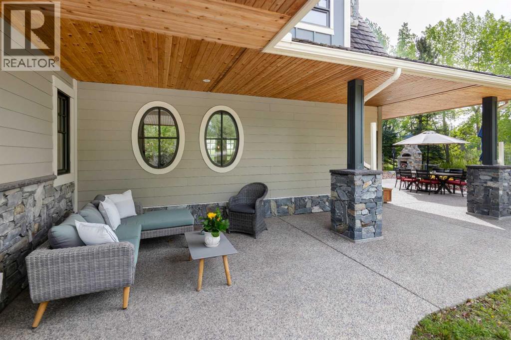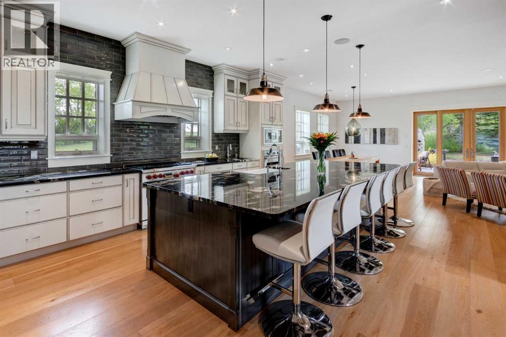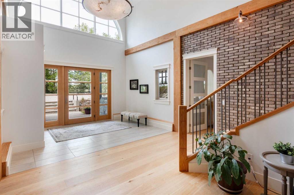 This unique gated 2-acre parcel is a 1 of a kind 2 story rustic home nestled within 25 Min to downtown Calgary. With ample living space this home has numerous unique & elegant features: a cathedral grand foyer with rustic timber beams, tiled floors & stunning staircase are just the beginning. The home office is versatile with exterior & interior feature windows. Beyond the office is a Chef’s dream kitchen which has everything you need including 48” Sub Zero water/ice fridge, 36” Wolf Range with custom Hood fan, 2 built in DW's, a Viking Wall Oven & Microwave. Add to it, full height custom HANDCRAFTED cabinets, 14 ft island with granite counters & farmers sink completed by a second prep sink with ample storage. Wait did I mention the hidden wine treasure under the staircase to store some of your favorites? The dining area can accommodate 8-12 people easily. The open concept family room can host family visits anchored with a wood-burning fireplace complete with a natural ledge stone & 10’ ceilings throughout. On main is another bedroom perfect for inlaws or 2nd home office with walk-in closet & custom organizer. Convenient 3pc bath with a w/in shower just adjacent. The 2nd level has 3 additional bedrooms. The primary bedroom has vaulted ceilings, large w/in closet & a 6pc dream ensuite with double vanities, a soaker tub, walk-in STEAM shower & separate water closet.The primary also has a sitting area & gas fireplace to add coziness. 2 more bedrooms, one with its own ensuite & large closet, the other bedroom is adjacent to a 3pc bath & separate laundry. Let the story unfold as you make your way back to main level & walk to large mudroom with a separate access to garage & entrance to an additional 1687 sq ft of living. The options are endless whether you have teenagers, a growing family, mother-in-law living with you, a Nanny with a family or a secondary legal suite for extra revenue. Included in this area is a 2nd kitchen with large eating area, living room with gas fireplace, 2 more bedrooms with a shared 4pc ensuite, a second 4pc bath, & separate laundry. Change it up to make it a Rec Room fantastic for entertaining the teenagers. The options are endless. This home incorporates modern efficiencies & quality construction features such as: fully automated & customizable Lutron Lighting system, copper plumbing, dual heat sources integrating a combination of highly efficient forced air & boiler systems with extensive in-floor heating throughout, concrete walls & spray foam insulation. The O/S 4 car garage which can hold 6+ vehicles for the enthusiast & includes a work area & 2pc bath. The outdoor space includes 2000 sq ft of exposed aggregate & paving stone patios, natural gas fire table, firepit & wood fired pizza oven perfect for entertaining. This thoughtfully designed & constructed home make this home a must see! (id:63190)