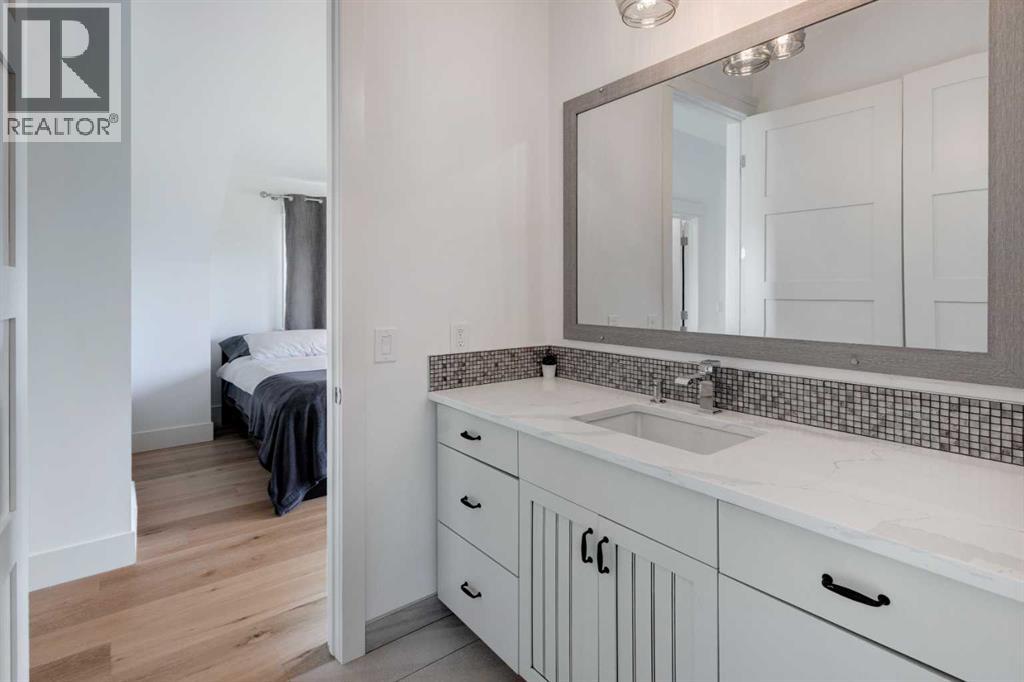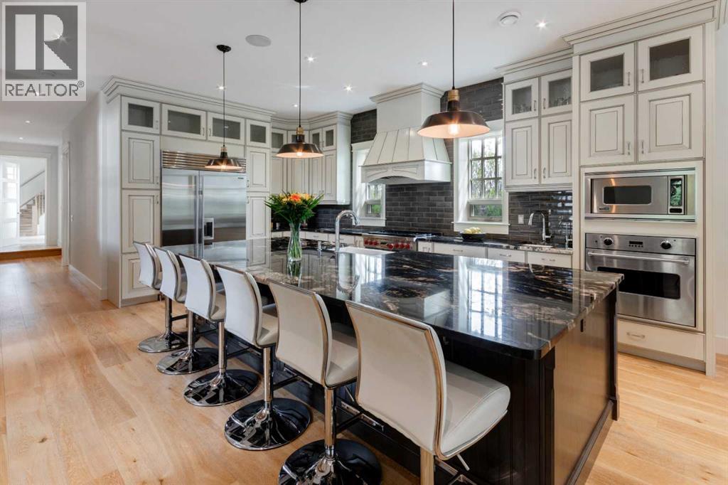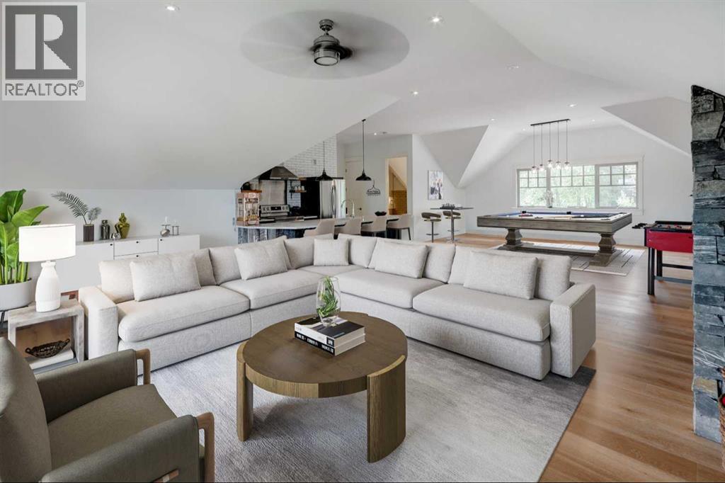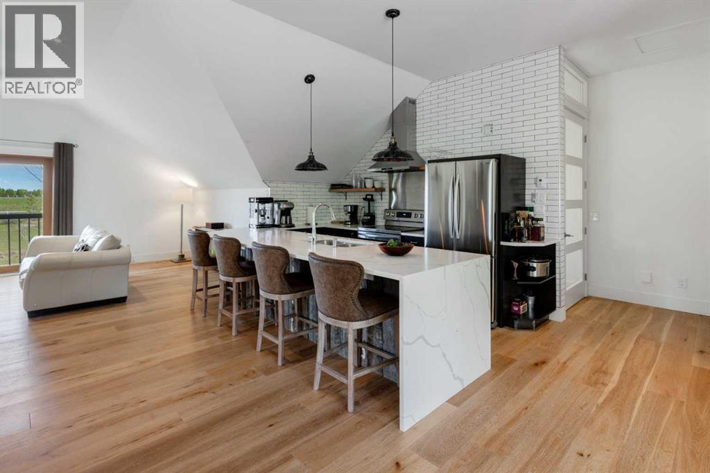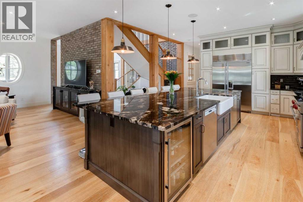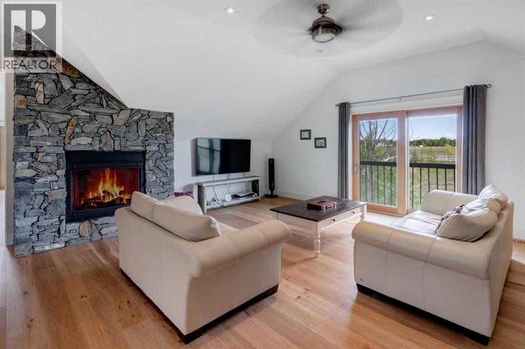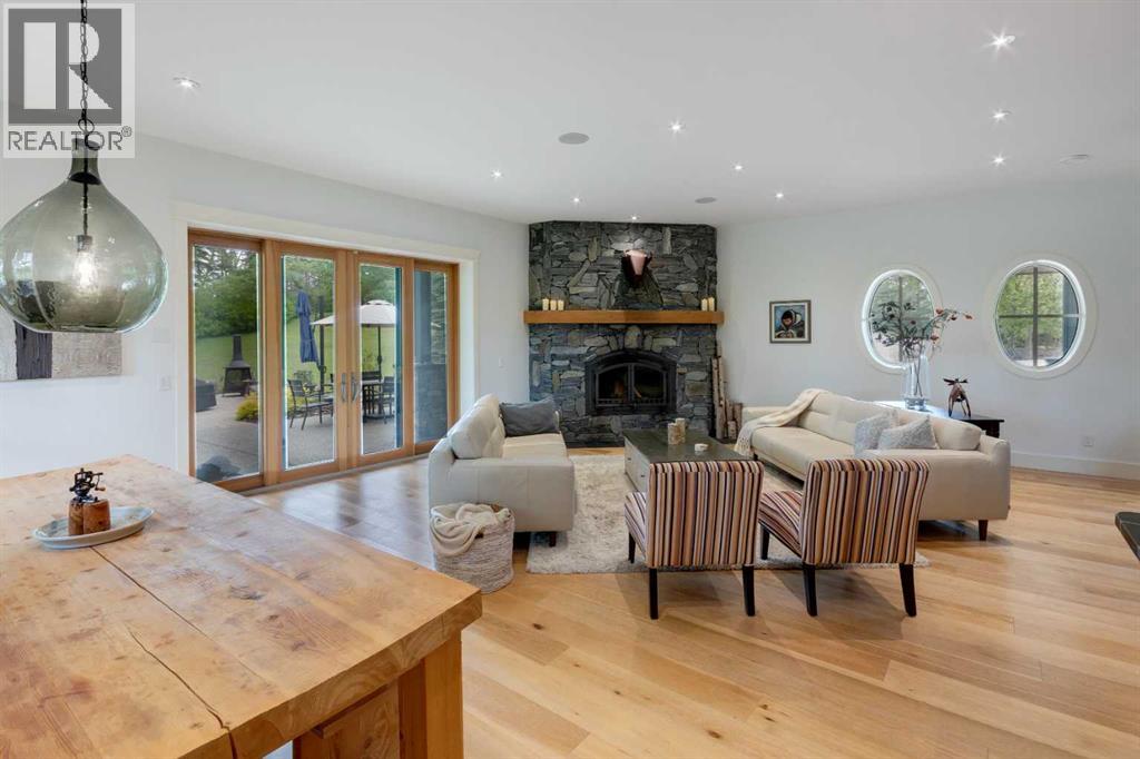 This unique gated 2-acre parcel is a 1 of a kind 2 story rustic home nestled within 25 Min to downtown Calgary. With ample living space this home has numerous unique & elegant features: a cathedral grand foyer with rustic timber beams, tiled floors & stunning staircase are just the beginning. The home office is versatile with exterior & interior feature windows. Beyond the office is a Chef’s dream kitchen which has everything you need including 48” Sub Zero water/ice fridge, 36” Wolf Range with custom Hood fan, 2 built in DW's, a Viking Wall Oven & Microwave. Add to it, full height custom HANDCRAFTED cabinets, 14 ft island with granite counters & farmers sink completed by a second prep sink with ample storage. Wait did I mention the hidden wine treasure under the staircase to store some of your favorites? The dining area can accommodate 8-12 people easily. The open concept family room can host family visits anchored with a wood-burning fireplace complete with a natural ledge stone & 10’ ceilings throughout. On main is another bedroom perfect for inlaws or 2nd home office with walk-in closet & custom organizer. Convenient 3pc bath with a w/in shower just adjacent. The 2nd level has 3 additional bedrooms. The primary bedroom has vaulted ceilings, large w/in closet & a 6pc dream ensuite with double vanities, a soaker tub, walk-in STEAM shower & separate water closet.The primary also has a sitting area & gas fireplace to add coziness. 2 more bedrooms, one with its own ensuite & large closet, the other bedroom is adjacent to a 3pc bath & separate laundry. Let the story unfold as you make your way back to main level & walk to large mudroom with a separate access to garage & entrance to an additional 1687 sq ft of living. The options are endless whether you have teenagers, a growing family, mother-in-law living with you, a Nanny with a family or a secondary legal suite for extra revenue. Included in this area is a 2nd kitchen with large eating area, living room with gas fireplace, 2 more bedrooms with a shared 4pc ensuite, a second 4pc bath, & separate laundry. Change it up to make it a Rec Room fantastic for entertaining the teenagers. The options are endless. This home incorporates modern efficiencies & quality construction features such as: fully automated & customizable Lutron Lighting system, copper plumbing, dual heat sources integrating a combination of highly efficient forced air & boiler systems with extensive in-floor heating throughout, concrete walls & spray foam insulation. The O/S 4 car garage which can hold 6+ vehicles for the enthusiast & includes a work area & 2pc bath. The outdoor space includes 2000 sq ft of exposed aggregate & paving stone patios, natural gas fire table, firepit & wood fired pizza oven perfect for entertaining. This thoughtfully designed & constructed home make this home a must see! (id:63190)