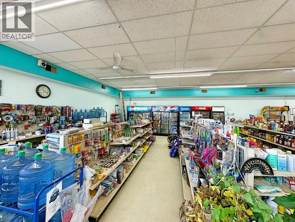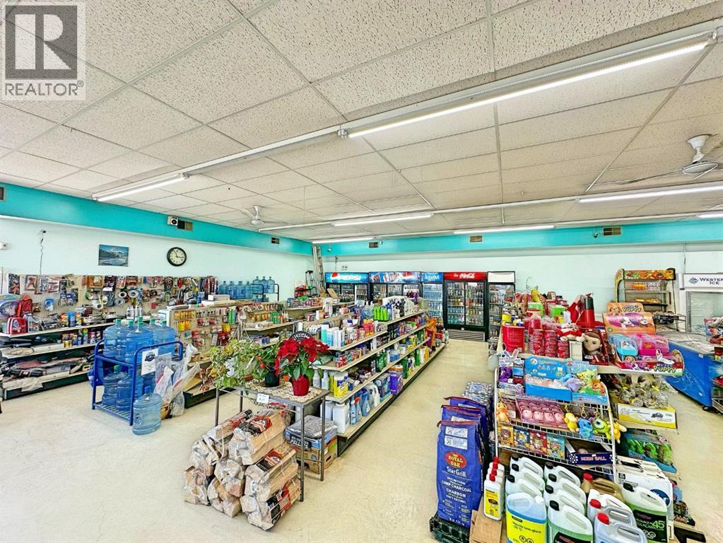 Exceptional Turnkey Investment Opportunity. This offering includes the land, a mixed-use building, a well-established grocery business, all equipment, and an above-ground fuel tank. As the only grocery store in town, the business serves as the central retail hub, providing a steady revenue stream from groceries, liquor, tobacco, lottery, and fuel (regular and diesel). The previous postal services have been upgraded to a Purolator depot for higher margins and simpler operations. The property is meticulously maintained and includes a newly built 1,200 sq. ft. residential home (2 bedrooms, 2 bathrooms) located directly next to the store—perfect for an owner-operator or as a rental property. The grocery store occupies 3,200 sq. ft. on a spacious 0.544-acre lot, offering significant room for expansion. The 2025 property assessment is $532,330, which includes the land, the commercial building, and the residential home. Annual property taxes are $6,606.62. This assessment and tax amount are for the real estate only and do not include the value of the business assets. Future growth potential includes upgrading the fuel infrastructure or adding a shop-in-shop food depot to meet rising local demand. With new residential developments currently under construction nearby, this is a rare chance to acquire a thriving business with real estate in a growing Alberta community. (id:63190)
