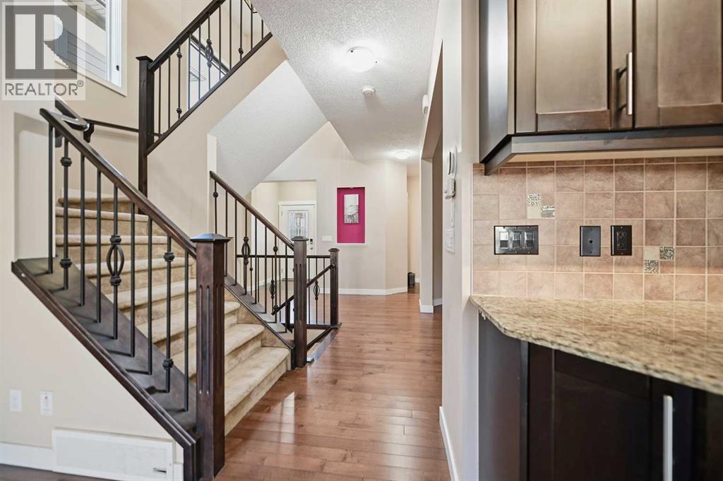 Welcome to 55 Skyview Shores Road NE—an exceptional home offering 5 bedrooms plus a den, and 3.5 baths. With over 3,100 sq. ft. of developed living space across three levels this home is a must see! Built by Shane Homes and meticulously maintained, this property also features new Hardie Board siding and a Class 4 roof for enhanced durability and weather protection.An added advantage is the City-registered legal suite (BP2025-09310), providing outstanding flexibility for extended family living or rental income.Step inside to a bright and functional main level featuring granite countertops, hardwood flooring, iron spindle railings, knock-down ceilings, and upgraded stainless steel appliances. The spacious kitchen offers a walk-in pantry, an extended granite island, and direct access to the deck. A welcoming family room with a gas fireplace, along with separate living and dining areas, make this level ideal for both everyday living and entertaining.Upstairs, you’ll find a generous layout that includes a vaulted bonus room, a comfortable primary suite with a 5-piece ensuite (double sinks, soaker tub, separate shower), and a walk-in closet. Two additional large bedrooms each feature walk-in closets and space for a computer desk. Convenient upper-level laundry adds practicality to the second floor.The legal secondary suite offers a private entrance and a thoughtfully designed layout.Additional highlights include an insulated double attached garage with a sink and 220V wiring, as well as a fully fenced and landscaped yard. Ideally located close to major routes, schools, parks, shopping, transit, and just 6 minutes from the airport, this home combines comfort, convenience, and income potential in one of NE Calgary’s most desirable communities.Easy to show and truly a must-see! (id:63190)