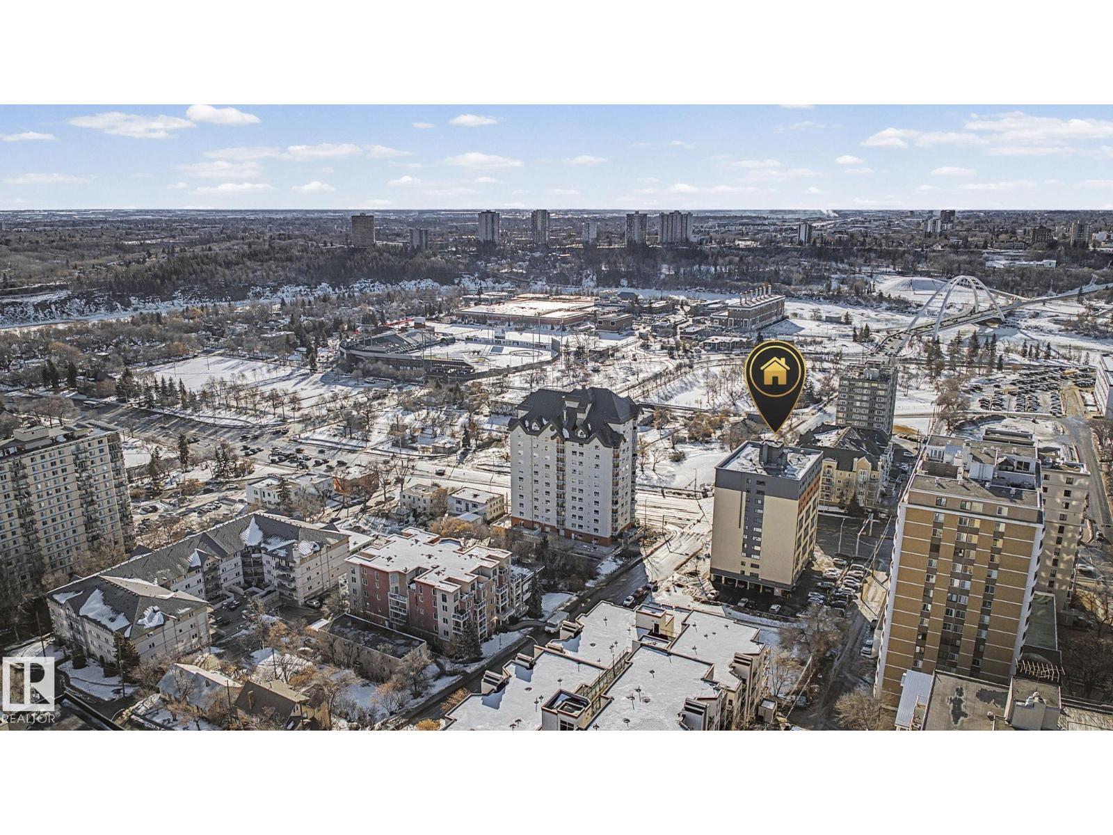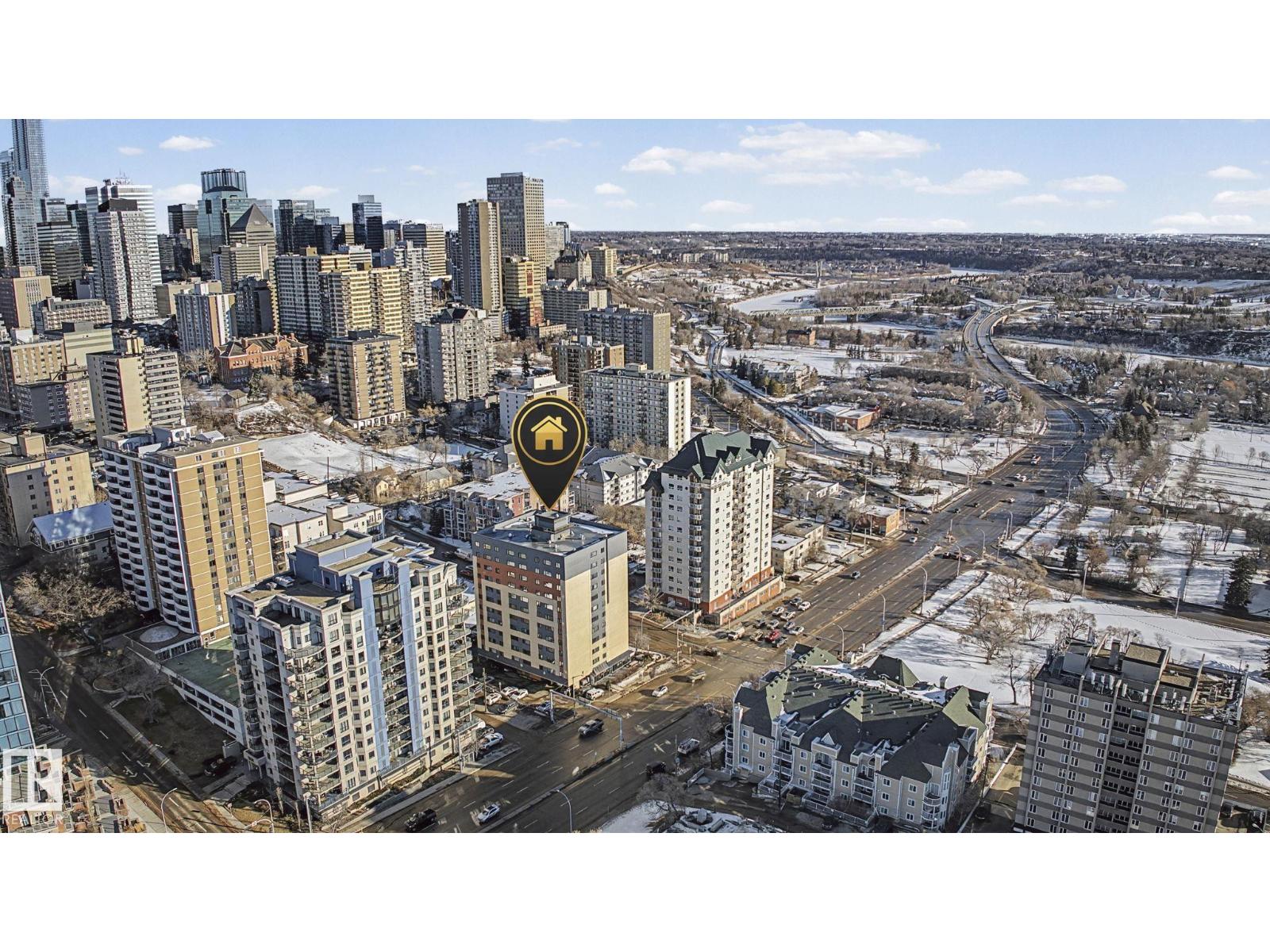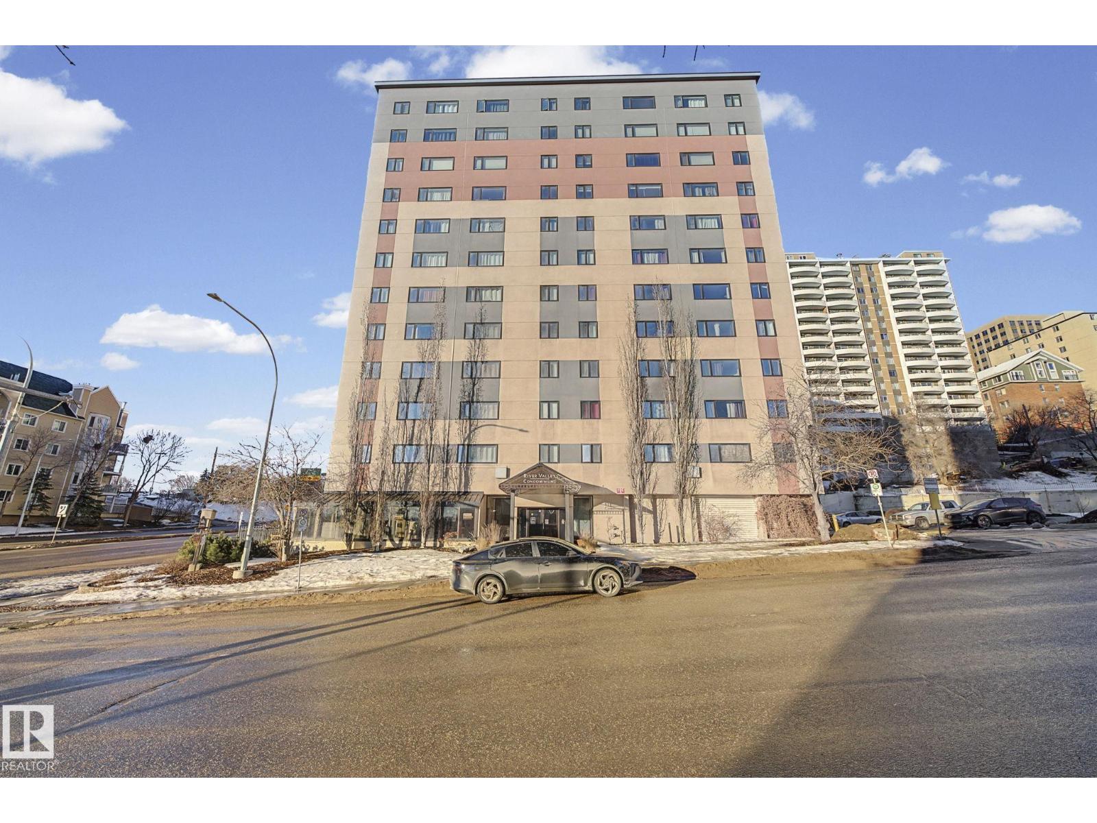 Adorable and affordable! Come and enjoy this 8th floor CORNER UNIT near everything you love. Steps from the river valley, this 1 bed 1 bath unit has easy access to the University of Alberta, MacEwan University, LRT, ICE District, city center, shopping, restaurants, festivals and the incredible river valley trail system. This corner unit has a great layout and beautiful Edmonton views! River Valley Condominiums features concrete construction, two elevators, a flexible parking system, same floor laundry and garbage disposal and updated windows and heating system. Very low condo fees include heat, unlimited electricity, water, sewer, insurance, property manager and a healthy reserve fund. A wonderful opportunity for first time buyers and investors alike! (id:63190)