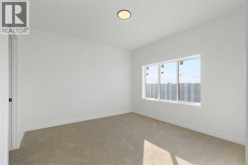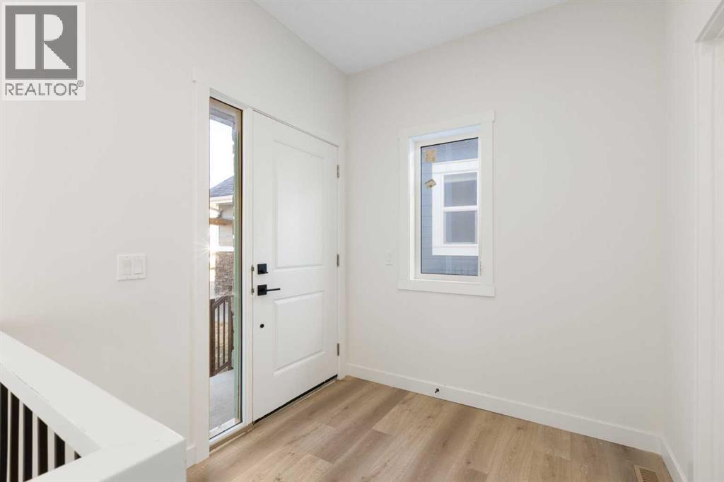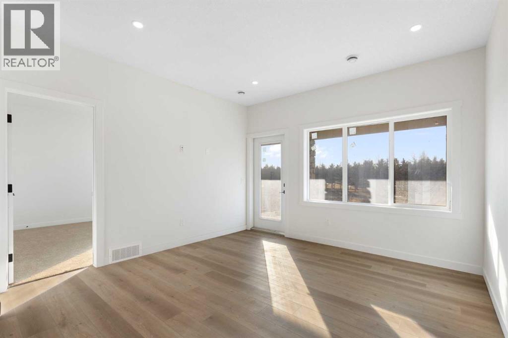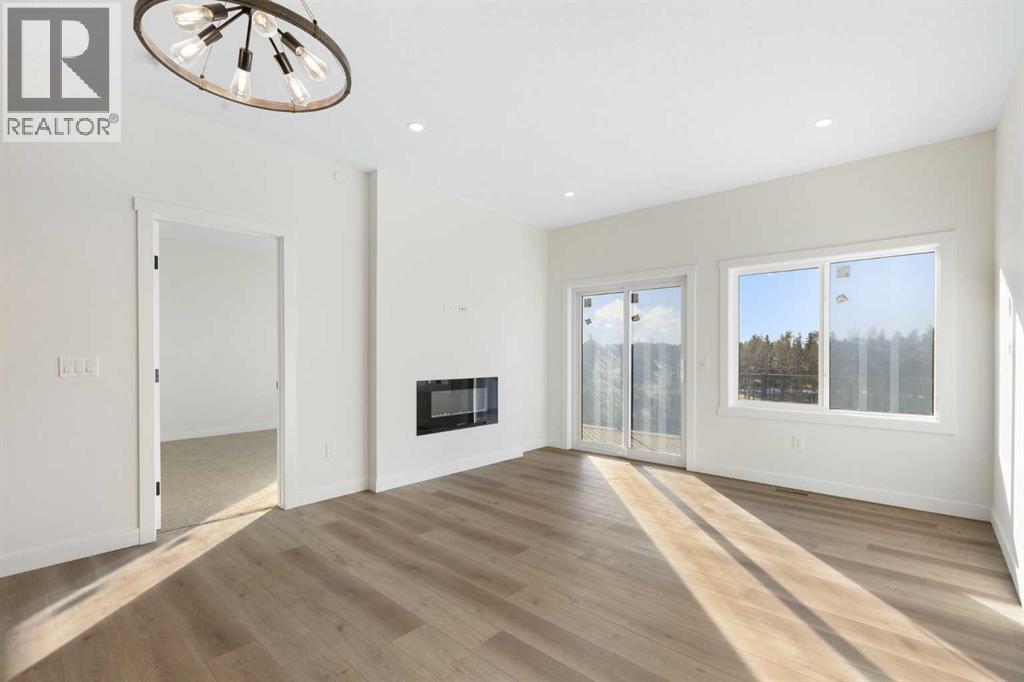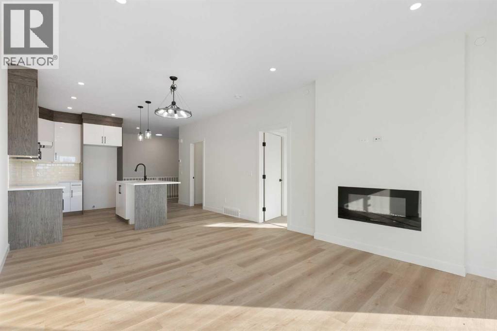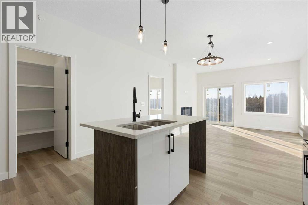 This 2025-built semi-detached bungalow offers a modern, open-concept layout with nearly 1,000 sq ft above grade plus a fully finished walk-out basement. The main floor features a bright kitchen with quartz countertops, island, pantry, and vinyl plank flooring, flowing seamlessly into the dining area and living room complete with an electric fireplace. The spacious primary bedroom includes a walk-in closet and 5-piece ensuite with double vanity. A convenient den and 2-piece bath complete the main level. Downstairs, the finished walk-out basement offers two additional bedrooms, a 3-piece bath, family room, and dedicated laundry area. Enjoy the double attached garage and driveway parking, along with a sloped backyard backing onto green space with no neighbours behind. Located in a golf course community with access to walking paths, playgrounds, recreation facilities, and more, with HOA amenities included. Enjoy the freedom of no water restrictions in this premier golf community - a significant advantage over Calgary, Chestermere, and Strathmore. **Property is being sold as-is, where-is, with no warranties or representations. All offers are subject to court approval and must be unconditional. Property has not received final occupancy approval, as permits and final grading remain outstanding. (id:63190)
