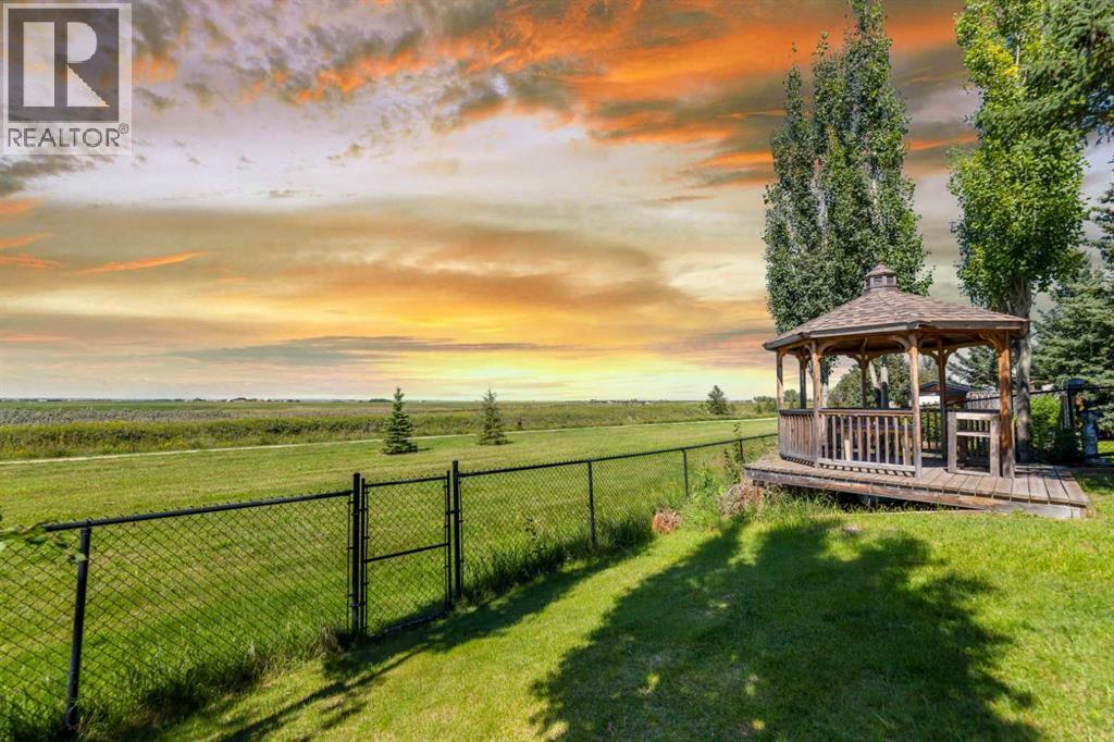 Peaceful Country Living at Its Finest in Irricana:Welcome to a home where wide-open skies, quiet evenings, and modern comfort come together beautifully. This fully finished walkout bungalow offers over 2,600 sq. ft. of refined living space, delivering the perfect balance of warmth, function, and rural charm.From the moment you step inside, you’re greeted by a spacious foyer that flows effortlessly into a sun-filled great room. Expansive west-facing windows frame breathtaking, unobstructed countryside views, while a cozy gas fireplace creates the perfect gathering space for family and friends.The open-concept dining area and kitchen are thoughtfully designed for both everyday living and entertaining. Featuring granite countertops, abundant cabinetry, and seamless access to the garage, this space makes busy mornings and grocery days feel effortless.Your primary retreat is a true sanctuary—generously sized and filled with natural light. The elegant four-piece ensuite includes a relaxing soaker tub, and the dual walk-in closets provide exceptional storage. French doors lead directly to the deck, where you can enjoy morning coffee with sunrise views or unwind as the sun sets across the prairie.Two additional bedrooms and a full four-piece bathroom complete the main level, offering flexibility for family, guests, or a home office.The fully finished walkout basement expands your living space with comfort and versatility. Enjoy in-floor heating, oversized windows that flood the lower level with natural light, a spacious games area, inviting family room, an additional four-piece bath, and a private bedroom with its own walk-in closet—ideal for guests, teens, or multi-generational living. Added peace of mind comes with a new roof installed in 2023.Step outside and experience the true magic of country living. The backyard is designed for relaxation and enjoyment, featuring a hot tub, gazebo, shed, and multiple deck access points from both the dining room and prim ary suite. Summer evenings are made for entertaining, and clear country nights offer star-filled skies you simply can’t find in the city.Located in the welcoming community of Irricana, this home offers the serenity of rural life while maintaining convenient access to nearby amenities. Enjoy peaceful drives home, friendly neighbors, and miles of open countryside right at your doorstep. (id:63190)