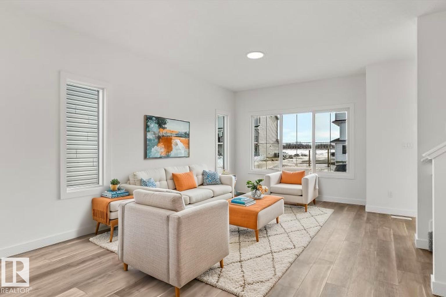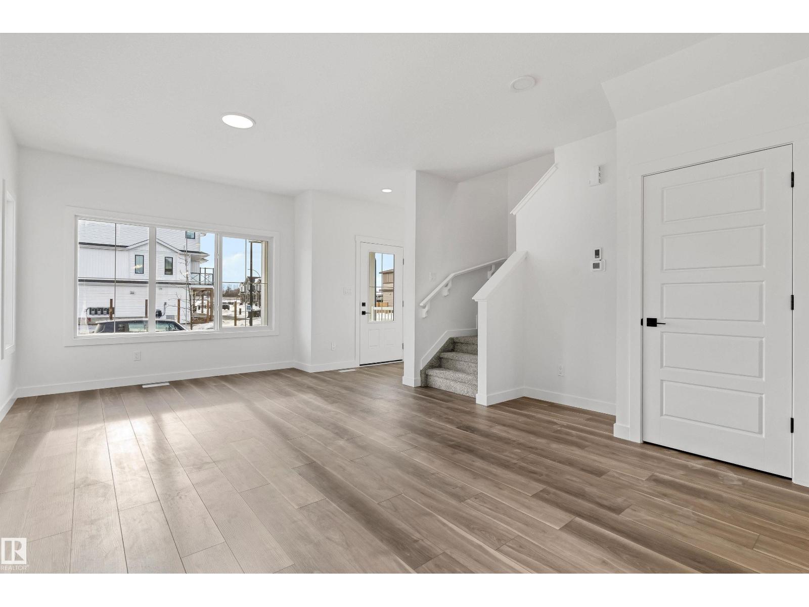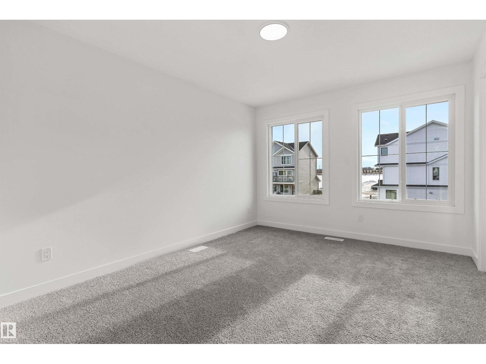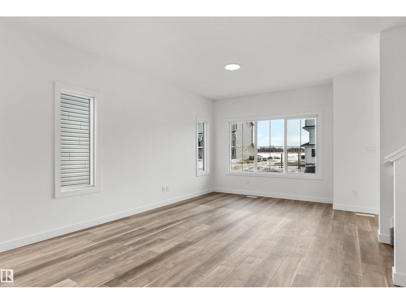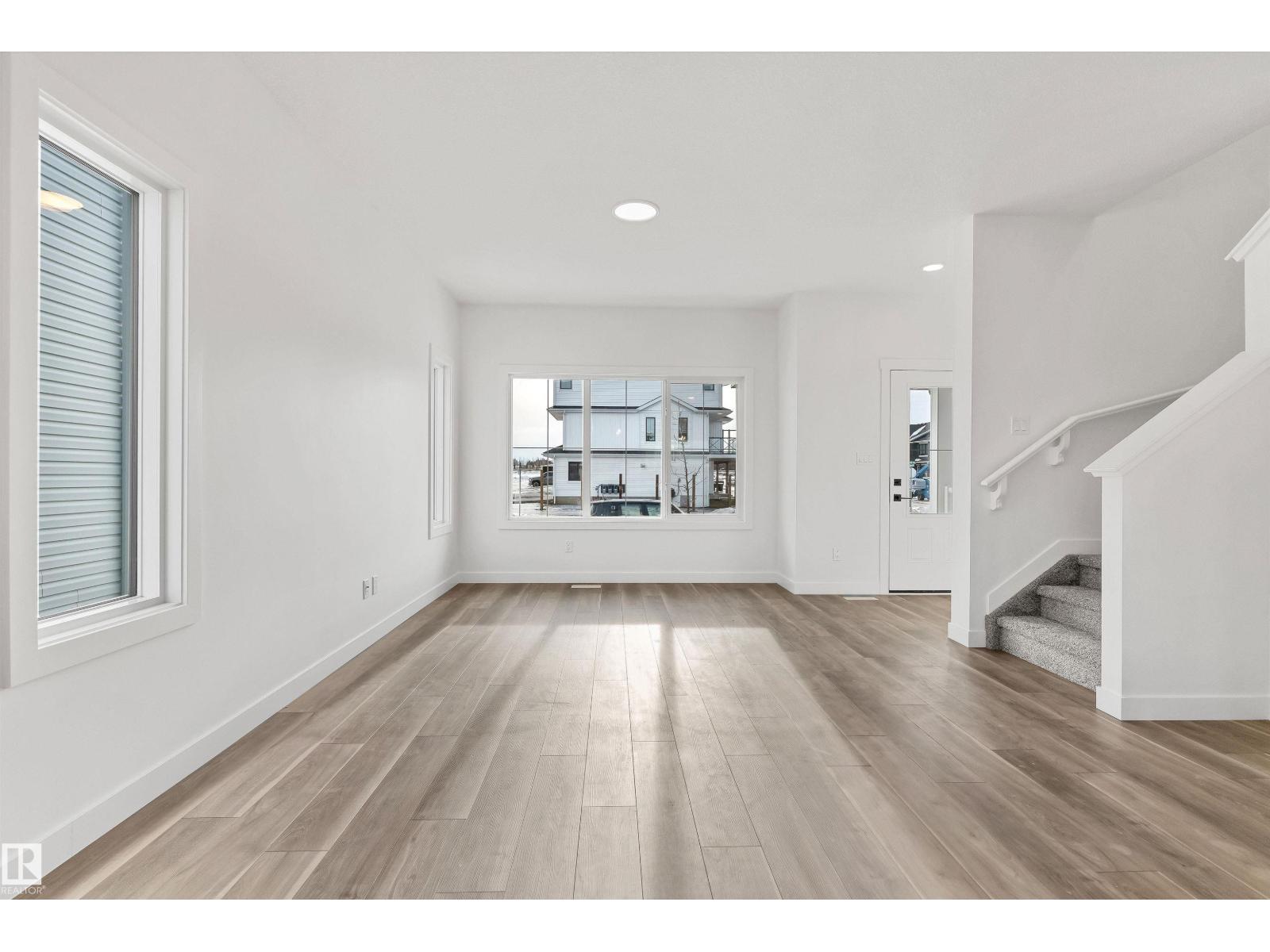 Built by Sterling Homes, this inviting laned home in Easton blends modern style with everyday comfort in one of Spruce Grove’s most family-friendly communities. Triple pane windows and 9’ ceilings fill the main floor with natural light, enhancing the open-concept layout that flows from the living and dining areas to a rear kitchen featuring quartz countertops, upgraded cabinetry, a spacious pantry, and a backyard-facing window. A tucked-away half bath and rear entry add smart functionality. Upstairs, a cozy loft offers flexible space, while the bright primary suite includes a walk-in closet and private 3-piece ensuite. Two additional bedrooms, a full bath, and upper-floor laundry complete the level. Finished with luxury vinyl plank flooring, a backyard parking pad, side entrance, and basement rough-ins, this home is designed for modern living and future growth. (id:63190)