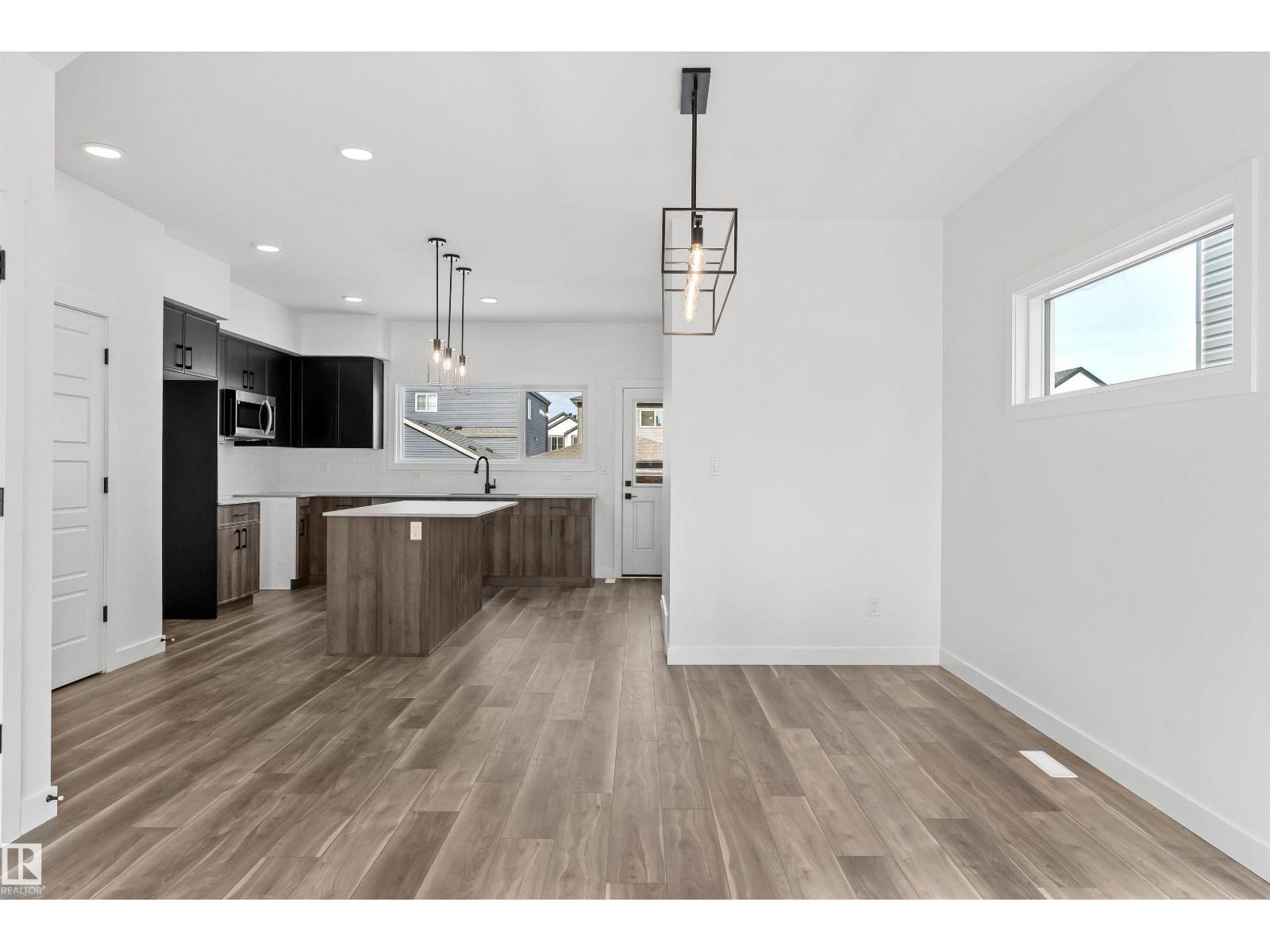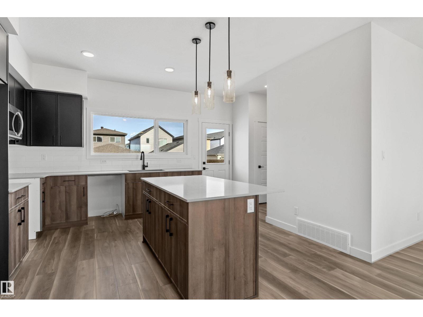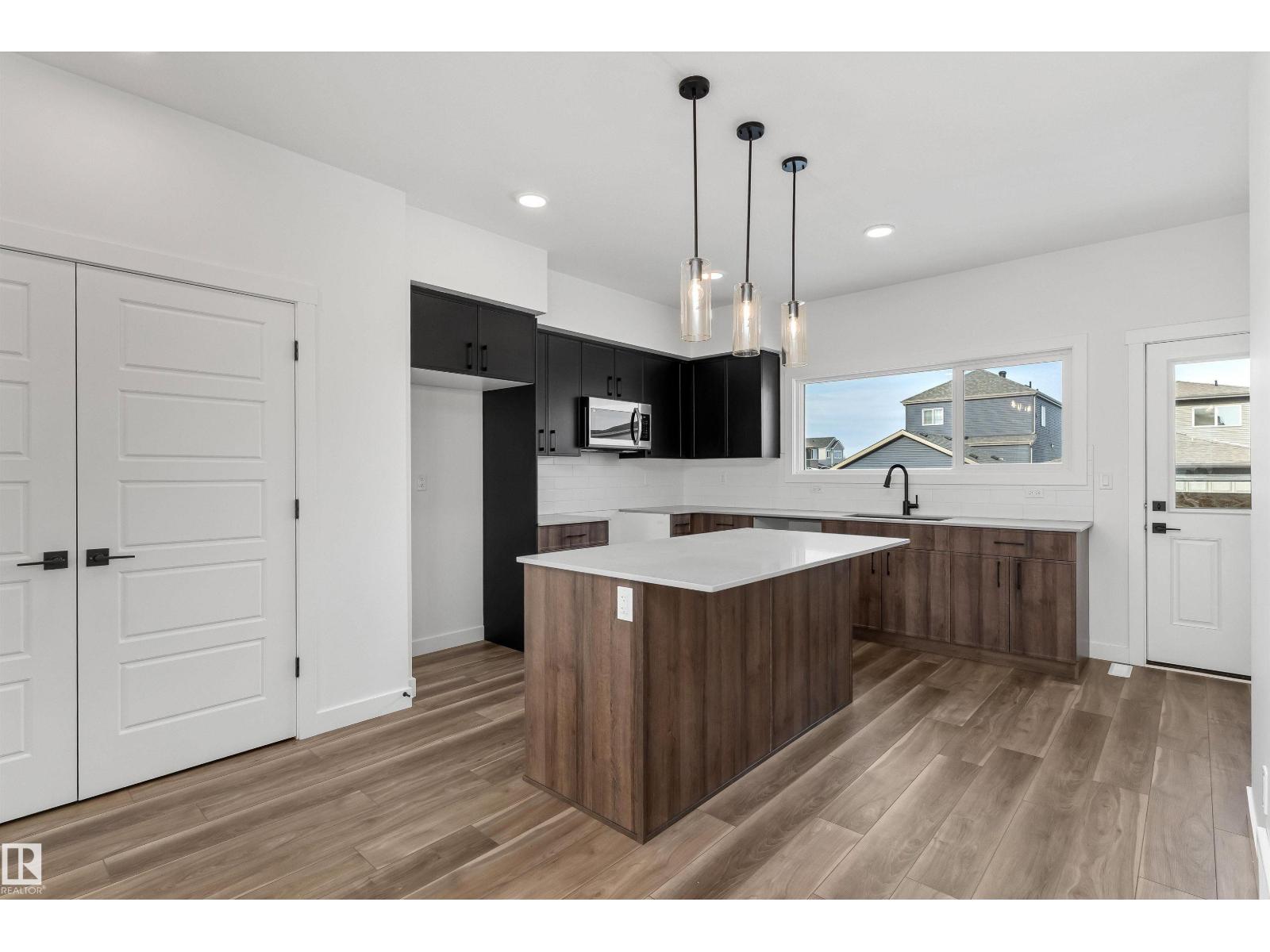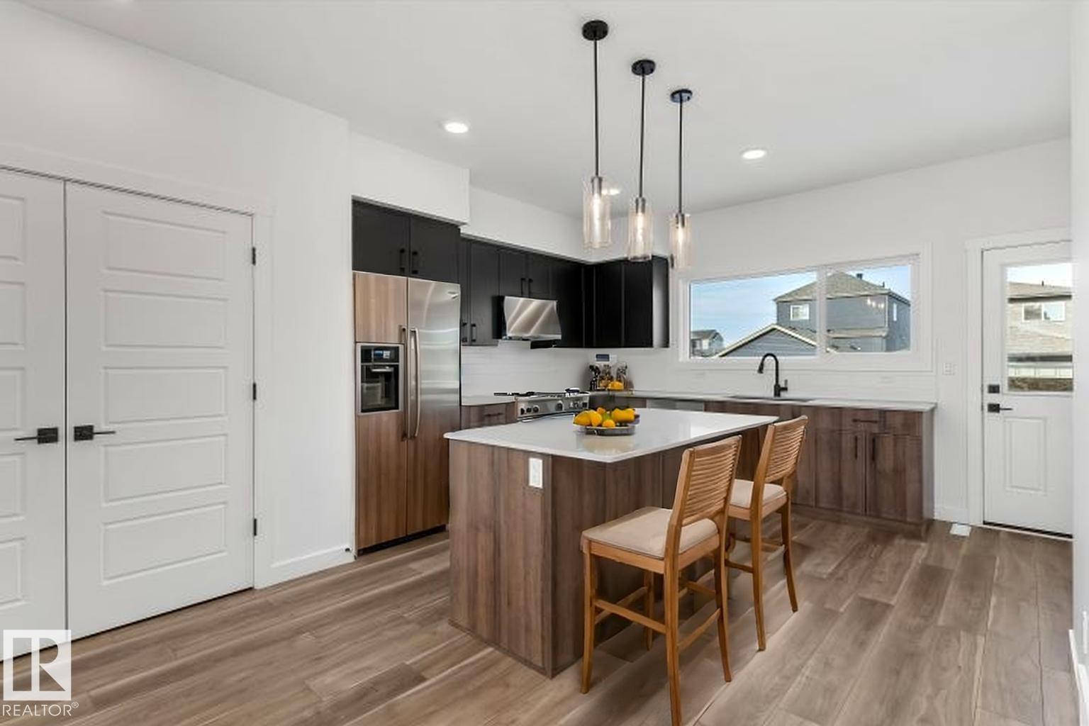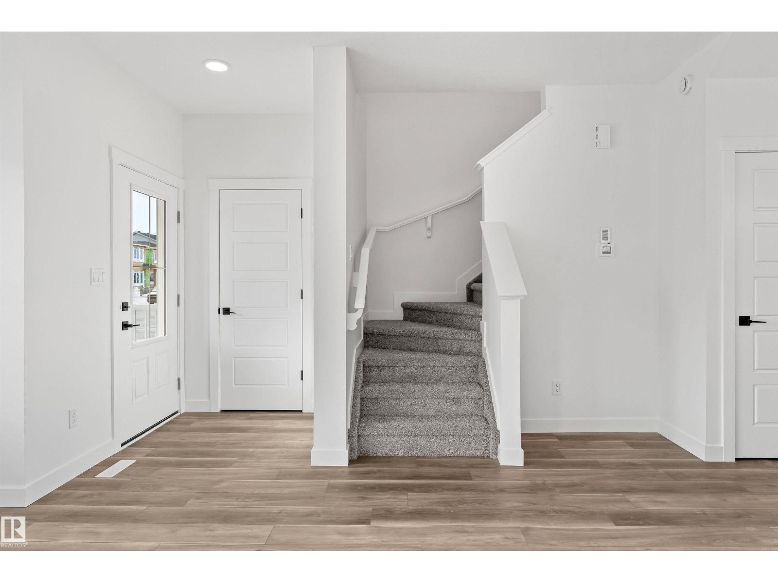 Built by Sterling Homes, this inviting laned home in Easton blends modern style with everyday comfort in one of Spruce Grove’s most family-friendly communities. Triple pane windows and 9’ ceilings fill the main floor with natural light, enhancing the open-concept layout that flows from the living and dining areas to a rear kitchen featuring quartz countertops, upgraded cabinetry, a spacious pantry, and a backyard-facing window. A tucked-away half bath and rear entry add smart functionality. Upstairs, a cozy loft offers flexible space, while the bright primary suite includes a walk-in closet and private 3-piece ensuite. Two additional bedrooms, a full bath, and upper-floor laundry complete the level. Finished with luxury vinyl plank flooring, a backyard parking pad, side entrance, and basement rough-ins, this home is designed for modern living and future growth. (id:63190)