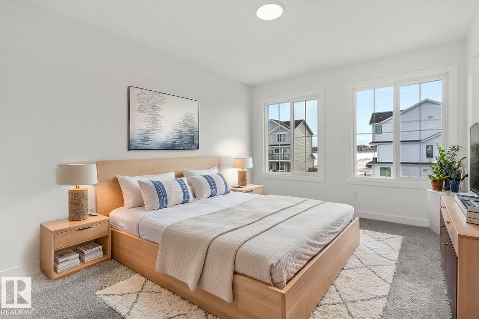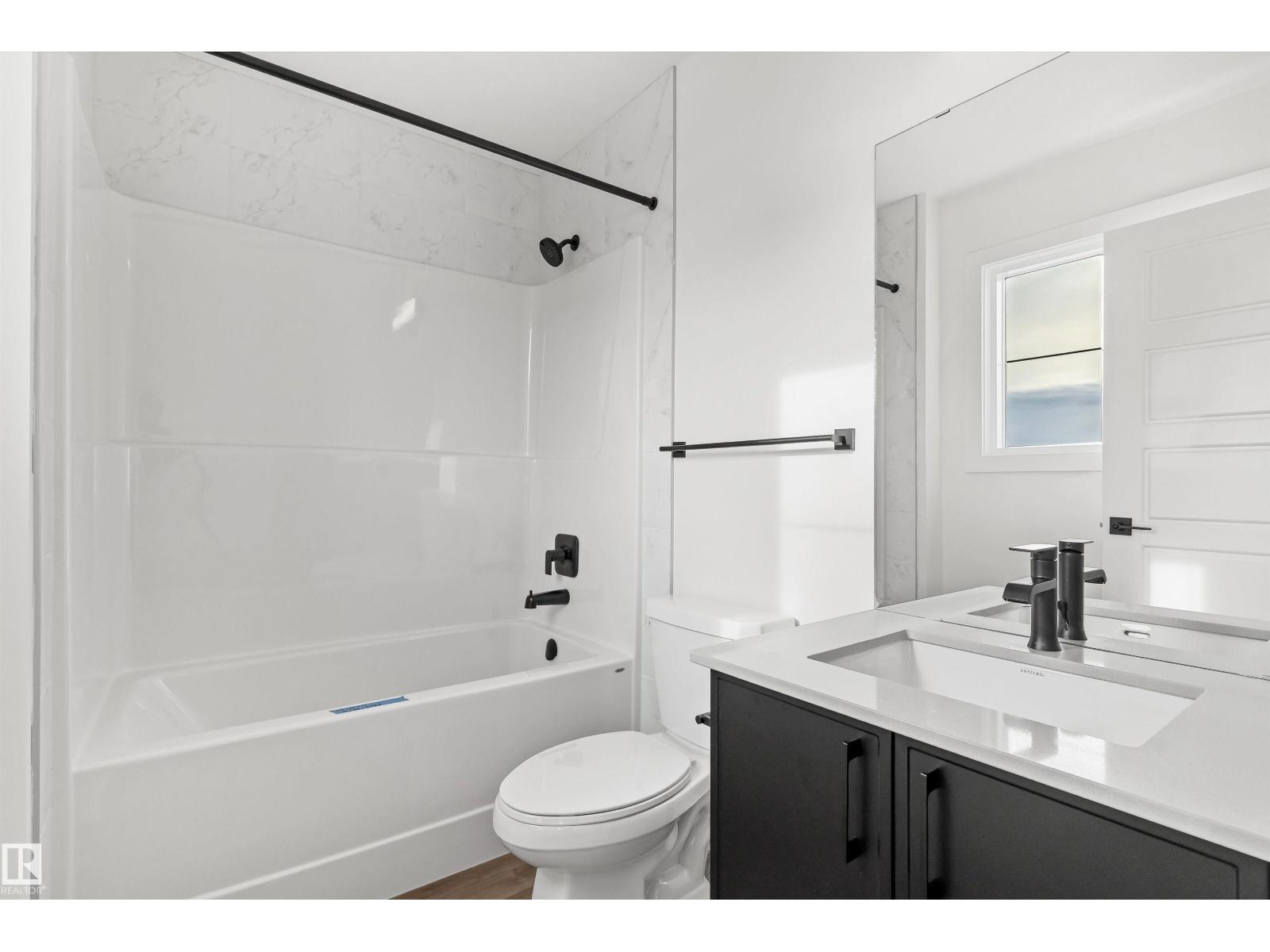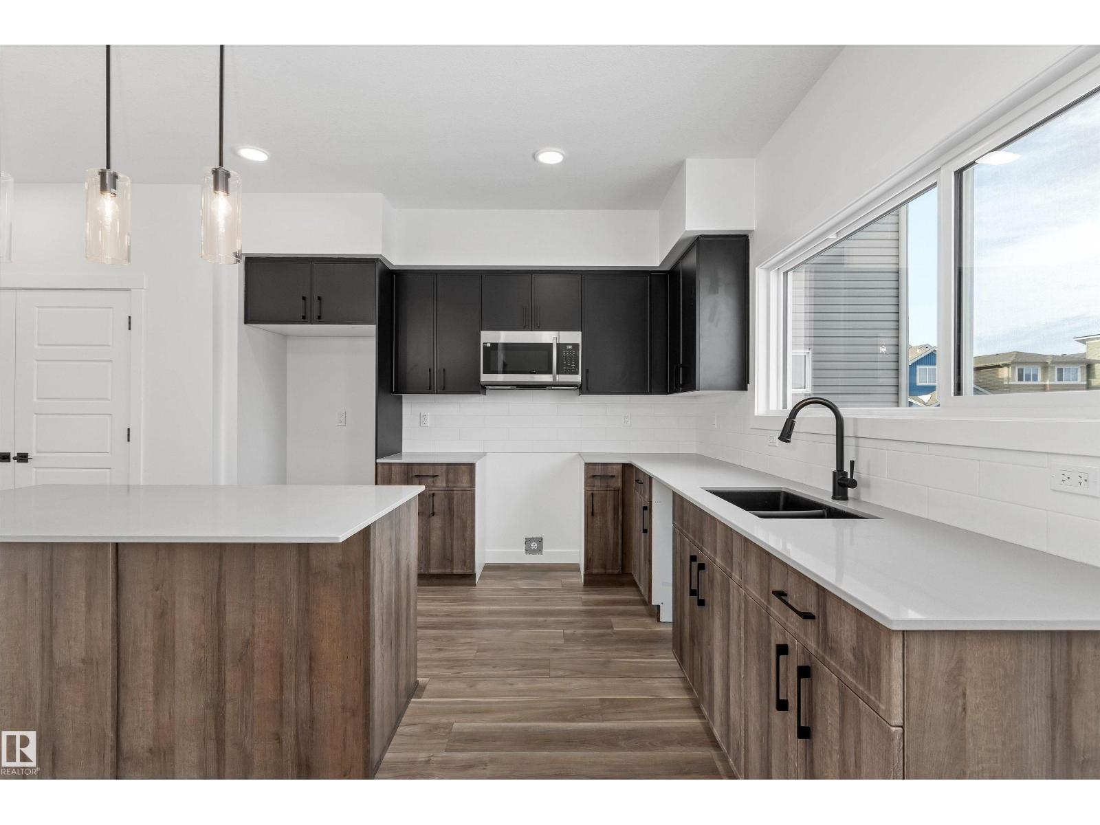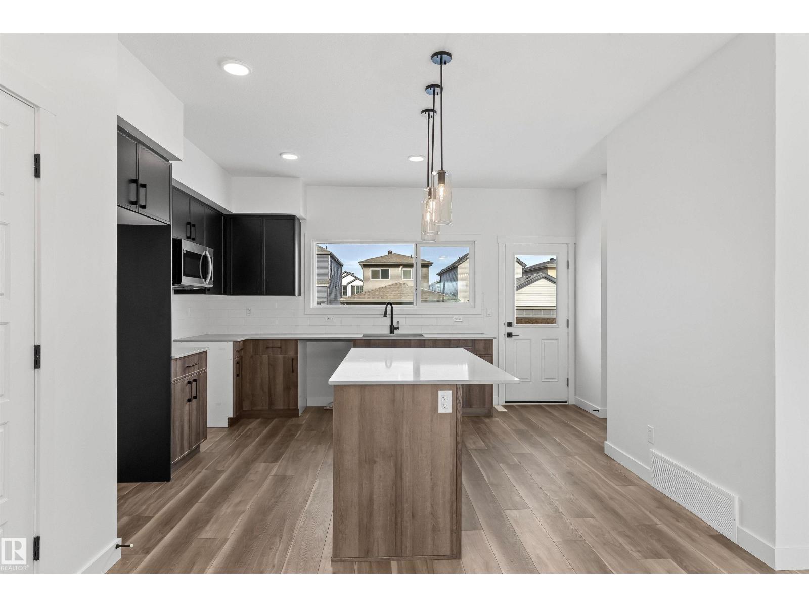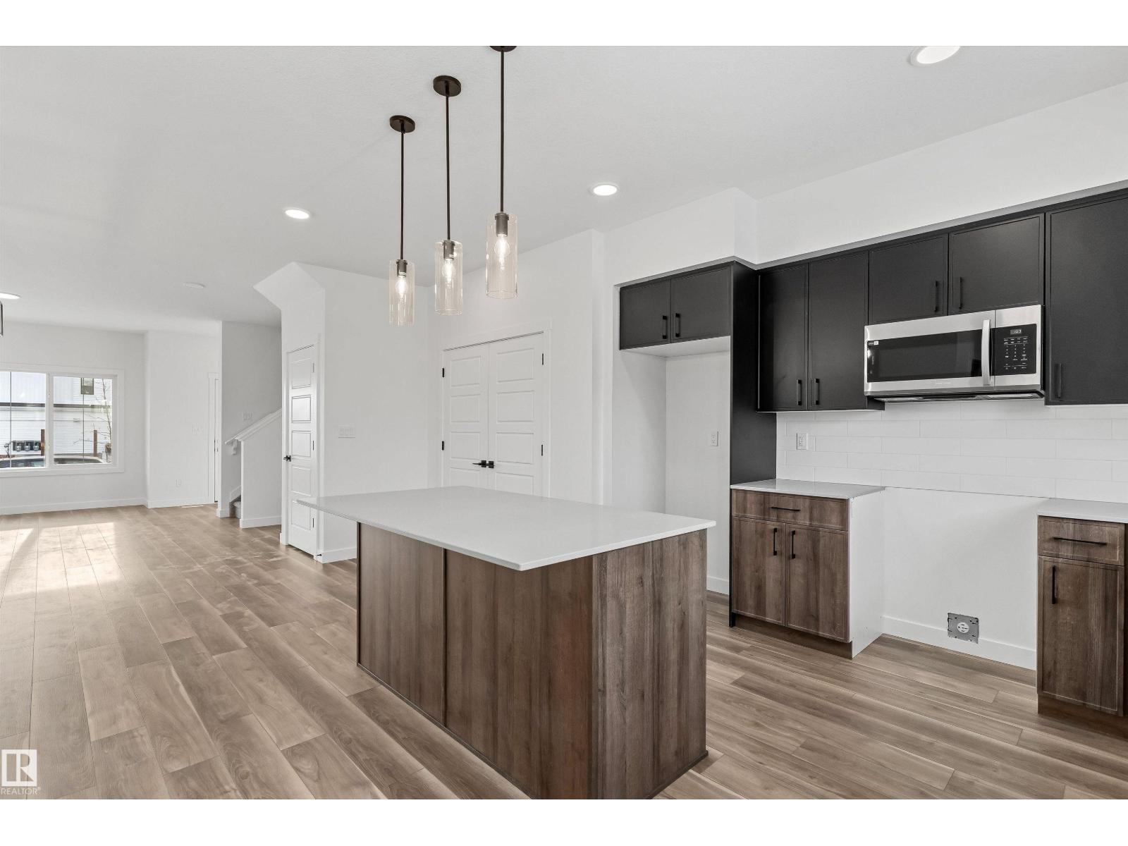 Built by Sterling Homes, this inviting laned home in Easton blends modern style with everyday comfort in one of Spruce Grove’s most family-friendly communities. Triple pane windows and 9’ ceilings fill the main floor with natural light, enhancing the open-concept layout that flows from the living and dining areas to a rear kitchen featuring quartz countertops, upgraded cabinetry, a spacious pantry, and a backyard-facing window. A tucked-away half bath and rear entry add smart functionality. Upstairs, a cozy loft offers flexible space, while the bright primary suite includes a walk-in closet and private 3-piece ensuite. Two additional bedrooms, a full bath, and upper-floor laundry complete the level. Finished with luxury vinyl plank flooring, a backyard parking pad, side entrance, and basement rough-ins, this home is designed for modern living and future growth. (id:63190)
