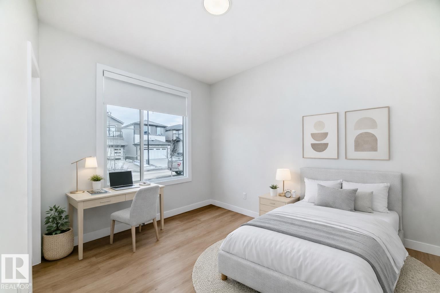 Upgraded and well-maintained single-family home in the desirable community of Glenridding Ravine, offering just under 1700sqft with 4 bedrooms and 3 full bathrooms, including a main-floor bedroom and full bath. This home features numerous upgrades throughout and is not builder grade. Notable improvements include upgraded kitchen appliances w/induction cooking, premium laundry appliances, luxury vinyl plank flooring upstairs, builtin cabinetry at the rear entry, custom wardrobe storage in the primary walkin closet, storage/medicine cabinets in the upstairs bathrooms. Energy-efficient mechanical systems include high-efficiency heating and on-demand hot water. A separate side entrance provides future potential for a legal basement suite. Oversized 26’x20’ garage is fully insulated, drywalled, 8-foot door, and overhead storage. Fully finished backyard includes concrete patios and full fencing. Located in an amenity-rich, growing community with future schools and recreation facilities. Photos virtually staged (id:63190)