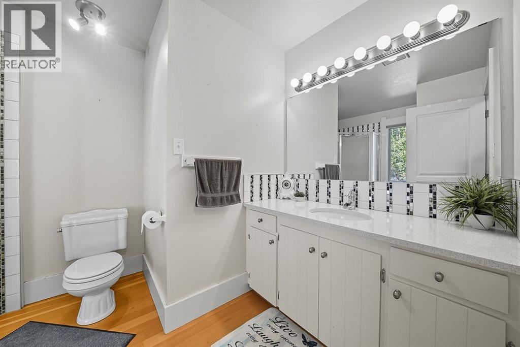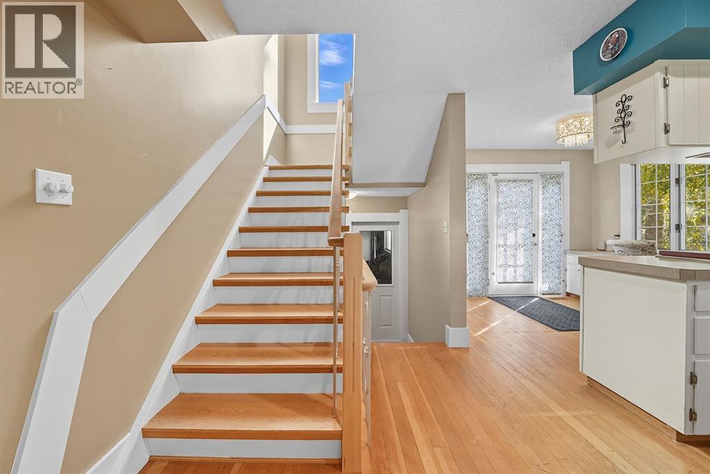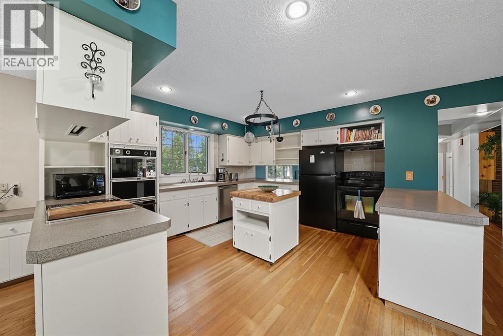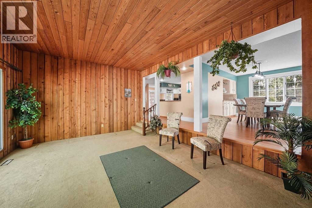 One of a kind opportunity for an acreage in the Summer Village of Birchcliff on the sunny side of Sylvan Lake! On pavement and steps away from the Lake sits 3.64 secluded acres nestled in mature trees with walking/quading trails. There is a one of a kind Charming 2672 sq foot home with a Double attached garage & Triple detached shop (complete with two 8' doors and one 10' door - ideal workshop or storage for your toys). The large country kitchen offers an abundance of countertop space and cabinets. The open concept has the dining room and kitchen looking onto the family room with gorgeous wood detailing. The large dining space is ideal for dinners with family and friends. It comes complete with the custom made wooden dining table. You'll enjoy the great views outside from the wall of windows in the family room. The wood burning fireplace is ideal for staying cozy on cold evenings. Plenty of space for your family to spread out as there is a living room with vaulted ceilings which also offers a second wood burning fireplace. There is a 3 piece bathroom on the main. You'll appreciate the hardwood flooring throughout most of the main floor and up the stairs to the upper bedroom evel. The home uniquely offers 4 bedrooms upstairs including the primary suite with a luxurious ensuite. 3 of the bedrooms have balconies. For your convenience there is a bedroom level bright laundry room. The basement is ideal for storage but also could be developed for your future needs. Peace and privacy are yours with the abundance of trees and private trails.The skys the limit with how youll enjoy the great outdoors. The property has a fire pit area and horseshoe pit. If you enjoy outdoor pursuits and you want to be close to the lake, this may be the Ideal property for your growing family or as a Lake getaway! (id:63190)