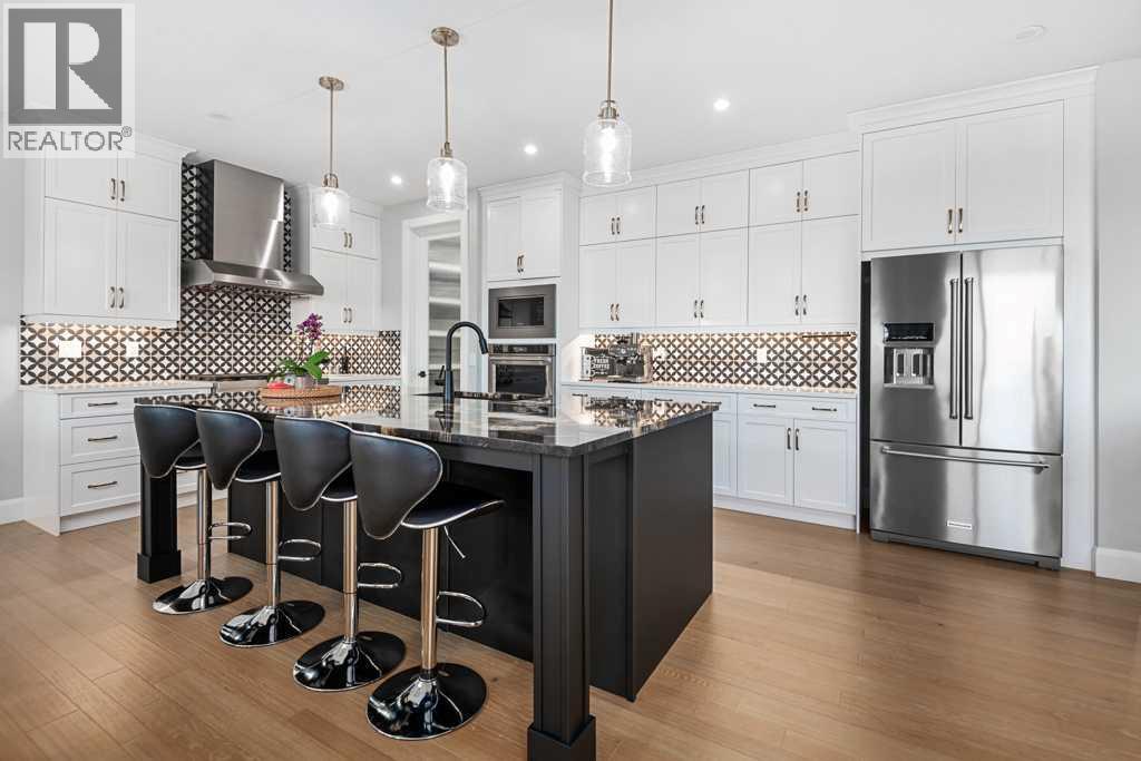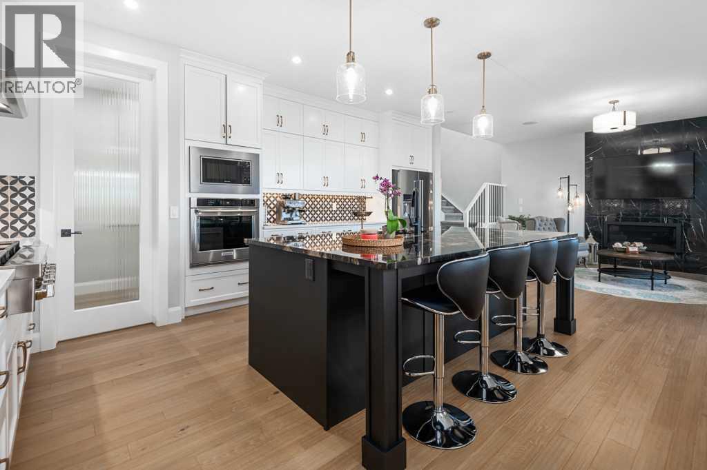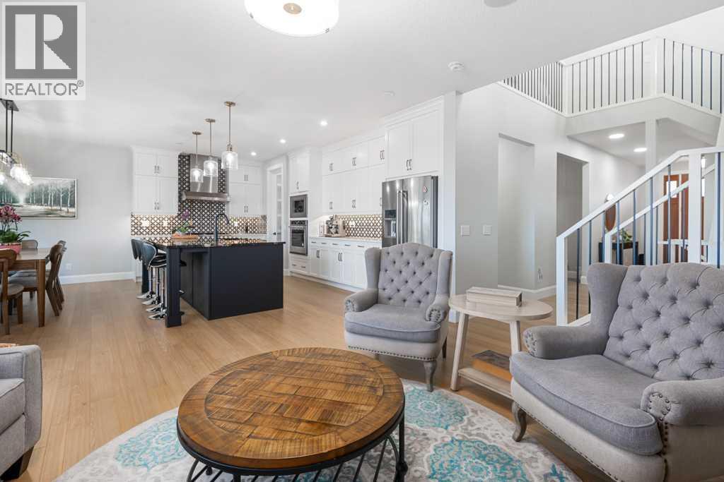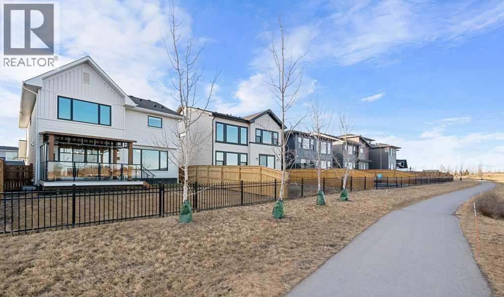 Welcome to an exceptional luxury home in the award-winning community of Harmony, offering over 4,000 sq ft of fully finished living space and a premium setting that truly delivers the lifestyle this community is known for. Perfectly positioned with an east-facing backyard, this home backs onto a peaceful walking path and Mickelson National Golf Club, creating a rare blend of privacy, views, and year-round recreation right outside your door. Inside, you’ll love the bright, upscale feel with 9’ ceilings on the main floor and in the basement, rich engineered hardwood flooring, and a stunning open-concept layout anchored by a feature gas fireplace in the living room. The main floor is both functional and elegant, featuring a formal dining room, an impressive chef’s kitchen with a high-end gas cooktop, built-in oven and microwave, a large granite island, and a convenient walk-through pantry that connects seamlessly to the rest of the home, ideal for busy families and effortless entertaining. Upstairs, the upper level is designed with comfort in mind, featuring three spacious bedrooms, each with its own walk-in closet, plus two full bathrooms and a highly desirable upper-level laundry room. The fully finished basement expands your living space beautifully with two additional bedrooms, a full bathroom, and a stylish entertaining area complete with a granite-topped basement bar, perfect for movie nights, hosting friends, or creating a private guest retreat. You will love the heated garage to guard against the unpredictable Calgary weather. Step outside to enjoy your large upgraded deck and the morning sun in the east-facing backyard, with direct access to the walking path, perfect for peaceful strolls, biking, and enjoying everything Harmony has to offer. You’re close to Harmony Lake, the popular Harmony Adventure Park, excellent public and private schools, shopping, dining, and major routes make commuting to Calgary, the mountains, or Cochrane easy and efficient. (id:63190)