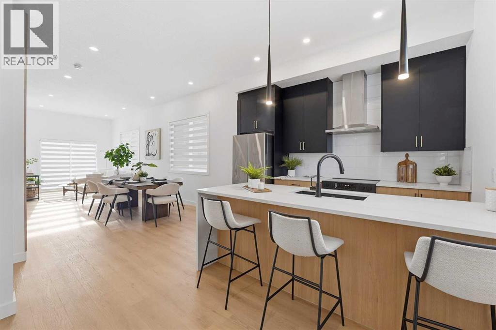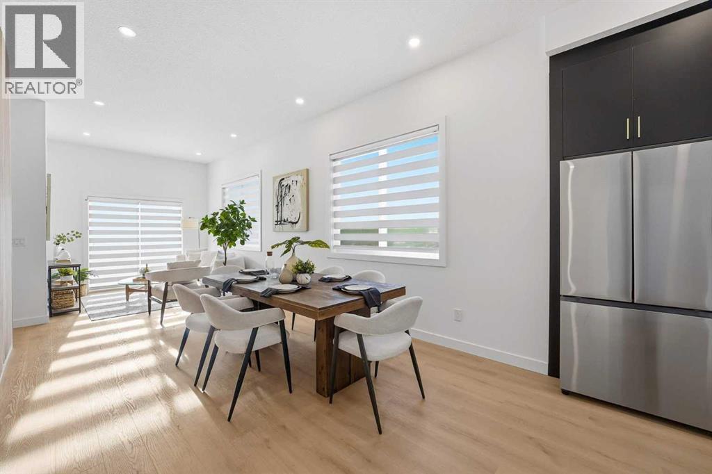 *OPEN HOUSE SATURDAY APRIL 25th 12:00PM-2:00PM* Built for durability and designed for real life, this Hudson END UNIT is a bright and spacious 3-bedroom, 2.5-bathroom townhome offering the perfect balance of style and function. With 1,411 sq ft, two private balconies, and the advantages of an end unit, you’ll enjoy extra natural light, added privacy, and more flexible living space. The DOUBLE ATTACHED TANDEM GARAGE gives you secure parking plus plenty of room for storage, bikes, or seasonal gear. Quality starts from the ground up. The Hudson is built on a 4” THICK SLAB USING SULPHATE-RESISTANT CONCRETE — a premium structural choice that helps protect your home for decades. The exterior is designed for Calgary’s climate, featuring a BRICK CLADDING SYSTEM WITH RAIN SCREEN BEHIND HARDIE BOARD SIDING, helping defend against moisture and harsh freeze-thaw cycles. For everyday convenience and security, the R12 INSULATED GARAGE DOOR WITH BELT DRIVE, WIFI, AND LIVE-VIEW CAMERA adds comfort and peace of mind. Inside, the main floor feels open and welcoming with 10’ CEILINGS, BLACK LAMINATED PVC DOUBLE-GLAZED WINDOWS, and a generous BALCONY that extends your living space outdoors. The OPEN-STYLE KITCHEN WITH PANTRY CLOSET is finished with QUARTZ COUNTERTOPS, FULL-HEIGHT CERAMIC TILE BACKSPLASH, and TALL UPPER CABINETS WITH UNDER-CABINET VALANCE LIGHTING. The PREMIUM SAMSUNG STAINLESS STEEL APPLIANCE PACKAGE includes a FRENCH DOOR FRIDGE WITH BUILT-IN WATER PITCHER and a SELF-CLEANING SMOOTH-TOP RANGE. Upstairs, three well-sized bedrooms offer flexibility for families, guests, or a home office. The primary bedroom features its own PRIVATE BALCONY, while bathrooms include QUARTZ COUNTERS, FULL-HEIGHT CERAMIC TILE SURROUNDS, and 24x12” TILE FLOORING. Thoughtful everyday features — like LINEN AND WASHER + DRYER CLOSETS, AUTOMATED ZEBRA BLINDS, VINYL DECKING WITH ALUMINUM RAIL + GLASS PANELS, and FULL LANDSCAPING — help make daily living easy and comfortable. Located in Belvedere, one of Calgary’s fastest-growing communities, you’re steps from groceries, restaurants, and everyday amenities, with parks and schools nearby. Downtown Calgary is only 15–20 minutes away, giving you city access while enjoying the value of a growing neighbourhood. With durable construction, two balconies, and a tandem garage, this Hudson end unit delivers both lifestyle and long-term value. Limited Time Promotion: Right now, buyers can receive one full year of FREE CONDO FEES. This promotion is available for a limited time and is scheduled to end March 31st. (id:63190)
