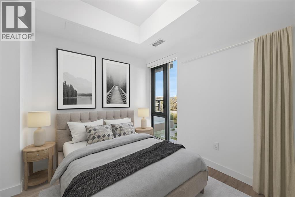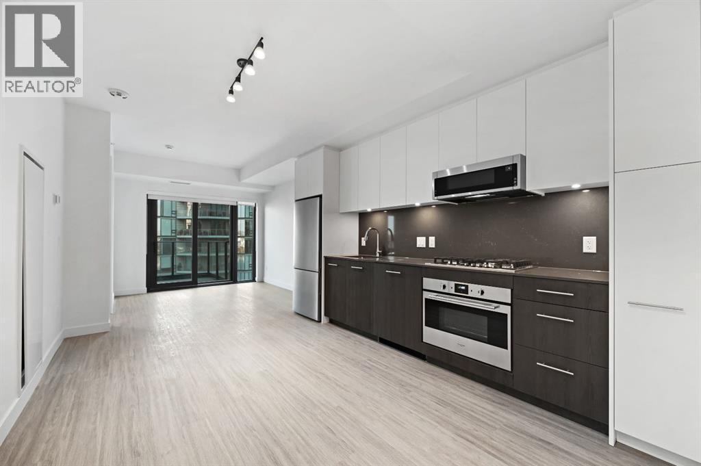 Elevate your lifestyle in this 9th floor residence at First & Park, Eau Claire’s newest luxury condo. This 2 bedroom, 2 bathroom home offers sophisticated design and sweeping north-facing views, creating a calm retreat above the city. The open layout features a modern chef’s kitchen with quartz countertops, integrated appliances, and stylish finishes, flowing seamlessly into a sun-filled living space framed by floor-to-ceiling windows.The primary suite is complete with a spa-inspired ensuite, while the second bedroom and full bath provide comfort for guests, family, or a home office. With titled underground parking and building amenities including: upscale gym & yoga studio (outdoor space beside with gas bbq hook ups), party lounge, modern co-working space and concierge.Step outside and enjoy the best of Calgary’s downtown — the Bow River pathways, Peace River Bridge, Prince’s Island Park, and vibrant dining and shopping are just moments away. Perfect for professionals, downsizers, or those seeking a lock-and-leave lifestyle, this is urban living at its finest. Packages available for FURNISHED UNITS! (id:63190)