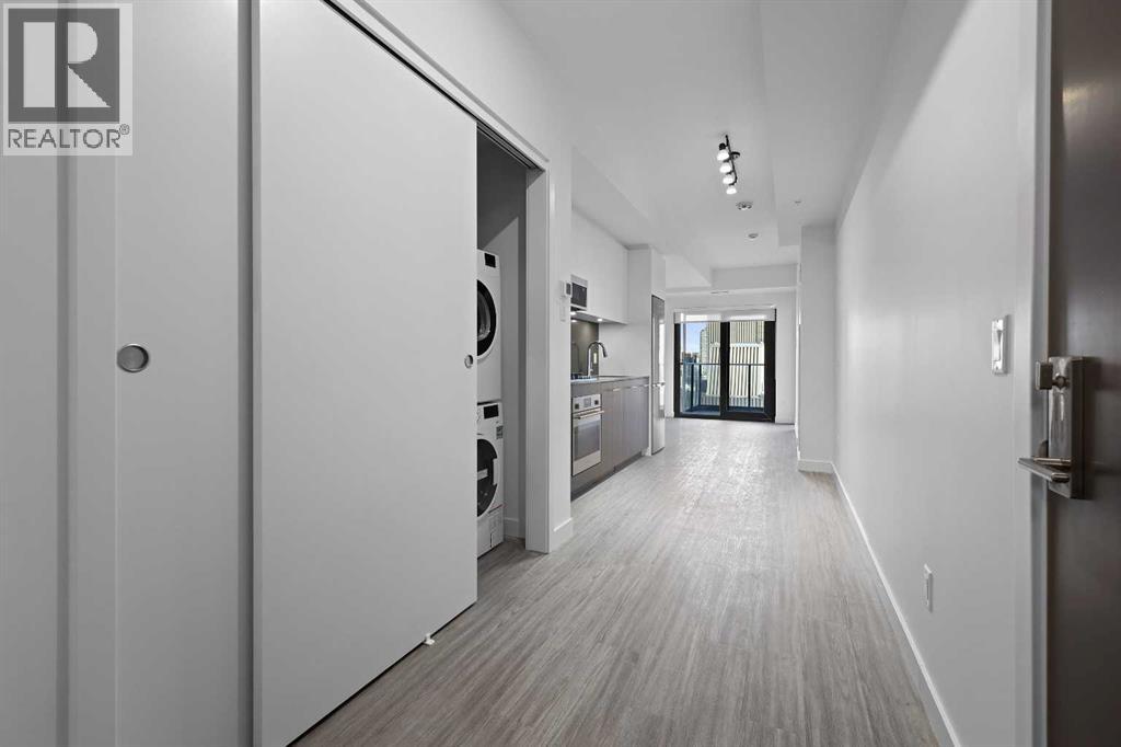 Welcome to unit 604 at First & Park, an elegant new address in Calgary’s sought-after Eau Claire community. This one bedroom, one bathroom home combines modern design with everyday convenience. The open-concept layout features a sleek kitchen with contemporary cabinetry, quartz countertops, and premium appliances, flowing seamlessly into the bright living space and east facing balcony. A spacious bedroom, full bath, and in-suite laundry offer comfort and functionality. Enjoy a titled parking stall, along with building amenities including an upscale gym & yoga studio (patio just outside which also features gas bbq hookups), party lounge, modern co-working space and concierge. Just steps from the Bow River pathways, Prince’s Island Park, dining, and downtown, this is the perfect balance of style and location. Whether you’re a first-time buyer, investor, or looking for a stylish downtown retreat, this home at First & Park is the perfect opportunity to live where the city meets the river. Packages available for FURNISHED UNITS! 1 titled parking stall with unit! *Visit CRA website for more info on GST Rebate* eligibility and amounts depend on buyer qualifications and intended use (e.g., primary residence vs. rental). (id:63190)