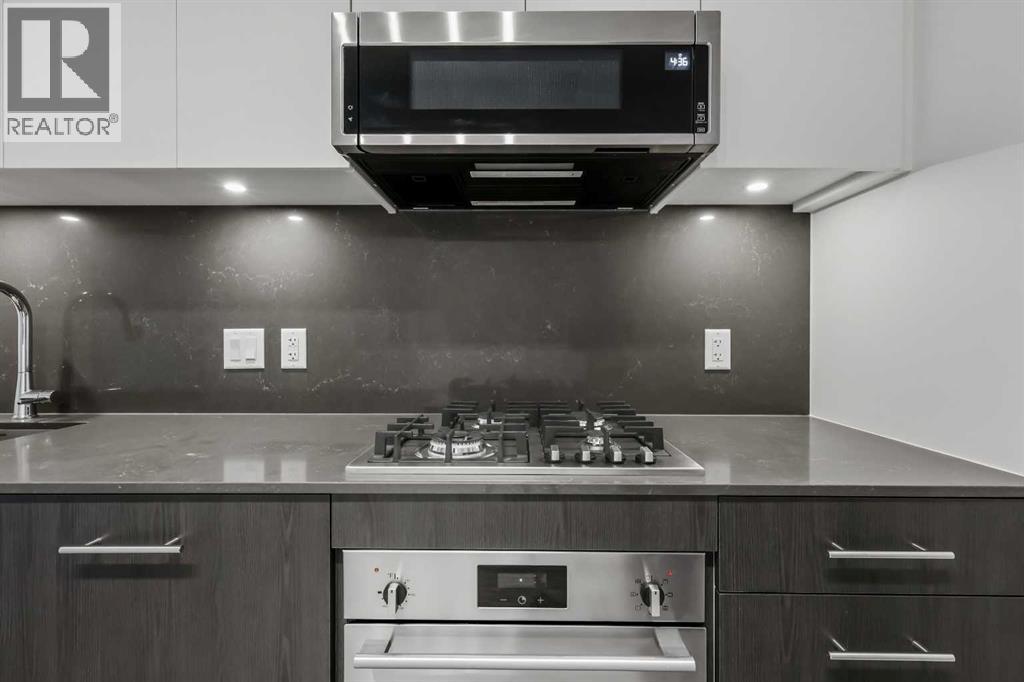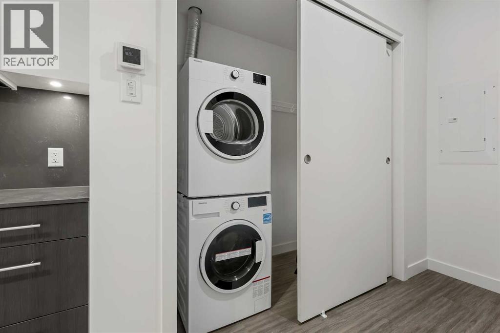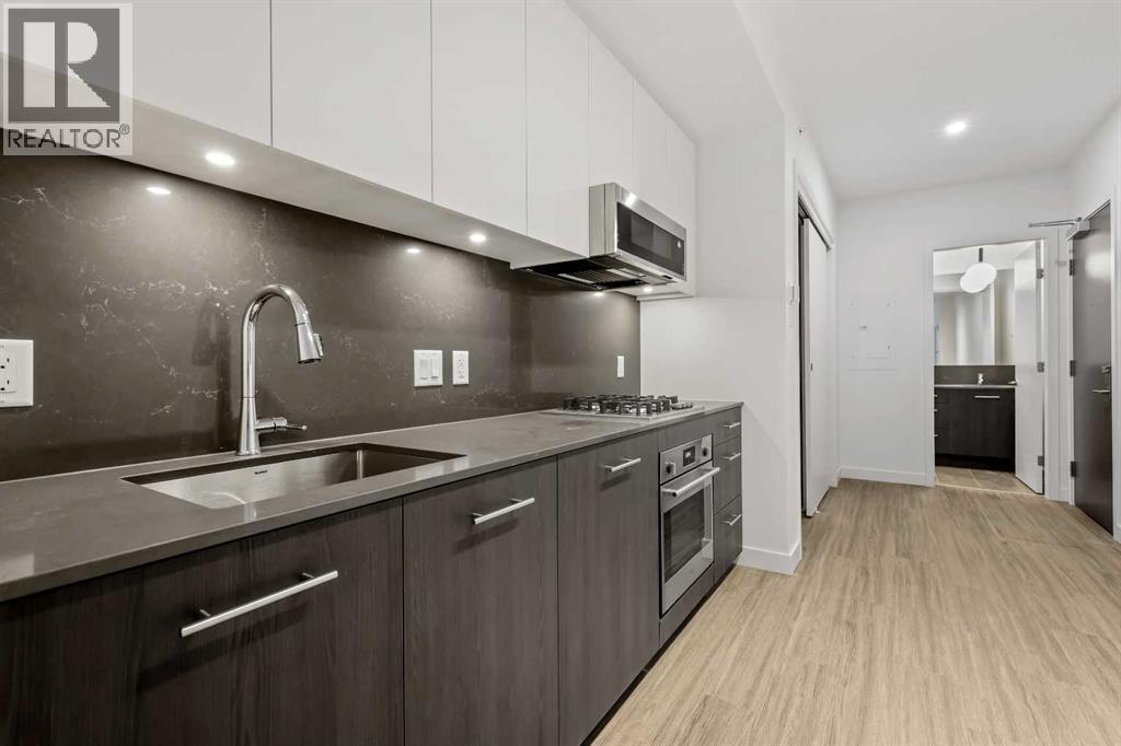 Welcome to Unit 207 at First & Park — a contemporary one-bedroom, one-bathroom condo ideally located in Calgary’s desirable Eau Claire district. This stylish unit offers the best bang for your buck in the building!The kitchen boasts stainless steel appliances, quartz countertops, and plenty of cabinetry, while the living area offers extra space to relax or entertain as it continues out to your private balcony. Additional highlights include in-suite laundry, full bathroom, a titled storage locker, and building amenities - fitness/yoga studio, party lounge, coworking space, concierge 7 days a week, snaile package centre, and two elevators.Enjoy being just steps from the Bow River pathways, Prince’s Island Park, Eau Claire Market, and downtown’s best restaurants, cafés, and shops — all while living in a quiet, boutique building. Whether you’re a first-time buyer, investor, or looking for a downtown pied-à-terre, this property checks all the boxes for stylish inner-city living. Packages available for FURNISHED UNITS! 1 titled storage included with unit! *Visit CRA Website for more info on GST Rebate* eligibility and amounts depend on buyer qualifications and intended use (e.g., primary residence vs. rental). (id:63190)