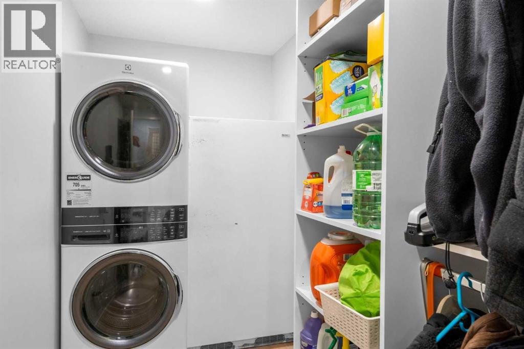 Welcome to this beautifully upgraded 3-bedroom, 2-bathroom Executive residence offering 1181 sqft of thoughtfully designed living in the heart of Carrington. This west-facing unit overlooks the inner courtyard (from your oversized balcony with gas hook up) mirroring as your backyard, providing both privacy and an abundance of natural light. Designed with elevated finishes and exceptional functionality in mind, this home delivers outstanding long-term value for both discerning homeowners and savvy investors. The open-concept layout creates seamless flow between the kitchen, dining, and living areas, anchored by a designer kitchen featuring elevated stone countertops, a full-height tile backsplash, built-in appliances, deeper 14 inch upper cabinets (versus standard 11 inch), soft-close cabinetry, roll-out shelving, under-cabinet lighting, smart drawer storage, a walk-in pantry, and a built-in wine fridge - a combination that enhances both everyday living and rental desirability. The spacious primary suite offers a walk-in closet with built-in organizers and a private 4-piece ensuite complete with dual sinks, additional pillar storage, & a pocket door entry. Two additional bedrooms provide flexibility for family living, guests, or a dedicated home office. Luxury Vinyl Plank flooring, upgraded bedroom carpet, an upgraded lighting package (with the dining room fixture to be replaced with a modern selection), knockdown ceilings, air conditioning, a generous in-suite laundry room with substantial storage, a massive separate storage unit (2 units merged into 1), and extra large sized underground parking with an EV charger just steps from the elevator, further elevate the home. The location is equally compelling, with everyday amenities, dining, shops, and services just steps away, making the property exceptionally walkable and attractive to both owners and tenants. Quick access to Stoney Trail (Highway 201) allows for effortless commuting across the city or out of town as w ell as 15 minutes to airport. While the growing northwest community of Carrington, surrounded by parks and pathway systems, continues to experience strong demand and long-term growth. This is a highly upgraded, well-positioned property offering design, function, and value in one complete package. Pet friendly complex! (id:63190)
