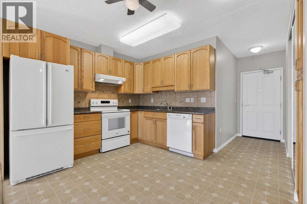 **OPEN HOUSE SATURDAY FEBRUARY 21ST 1-3PM **Welcome to peaceful adult living with breathtaking country and mountain views! This well-maintained 55+ community offers the perfect blend of quiet serenity and convenient access to the city.This bright and inviting 2-bedroom, 1.5-bath condo features a functional layout designed for comfortable everyday living. The spacious primary bedroom includes a 2-piece ensuite, a large closet, and was freshly painted last year, giving the space a clean and updated feel. A second bedroom offers flexibility for guests, hobbies, or a home office.The kitchen is thoughtfully laid out with a built-in pantry, plenty of storage, and a cozy dining area, while in-suite laundry adds everyday convenience.Enjoy the charm of a friendly, well-cared-for building with excellent amenities including a workout area, and a common room that can be reserved for private gatherings and events. This is a wonderful opportunity to enjoy a low-maintenance lifestyle in a community that truly feels like home.If you’re looking for comfort, convenience, and a welcoming community with a serene country feel, this is the one. (id:63190)