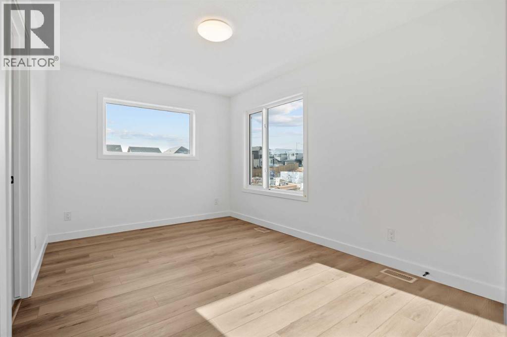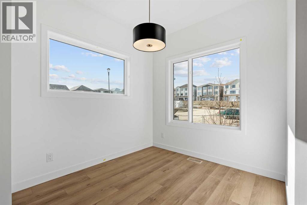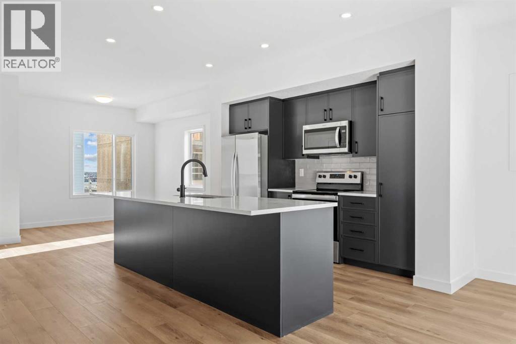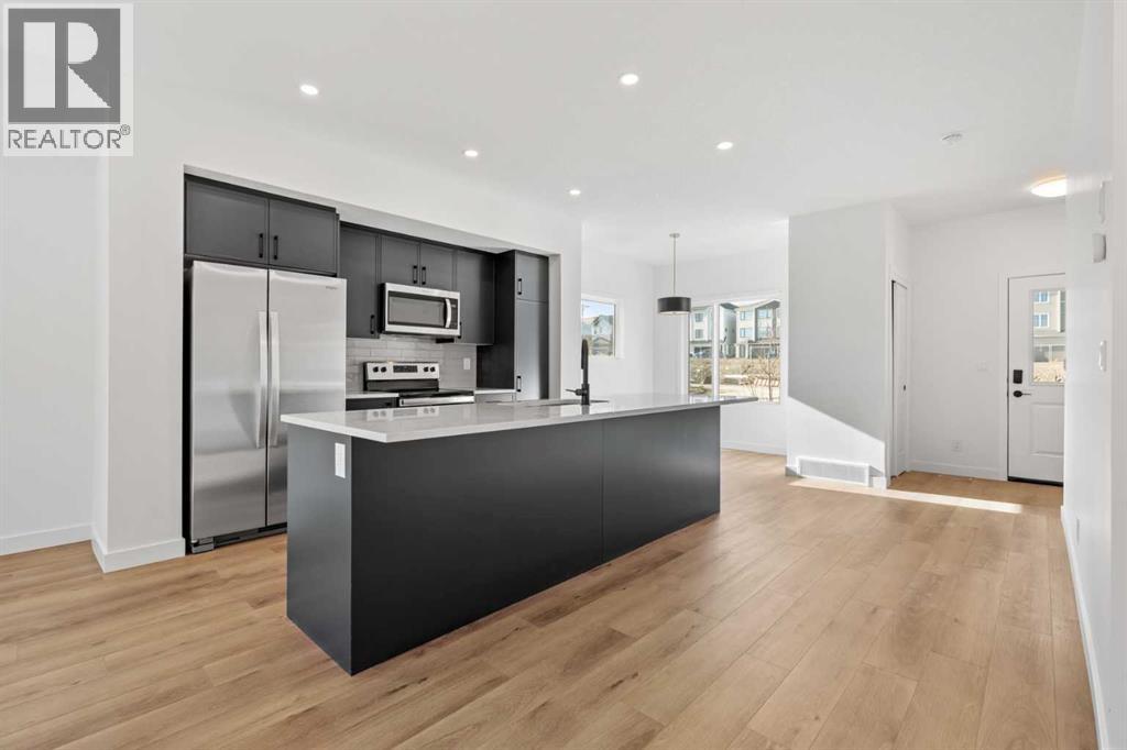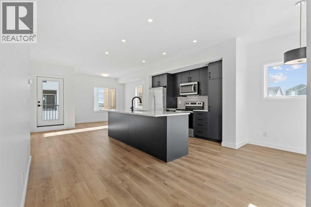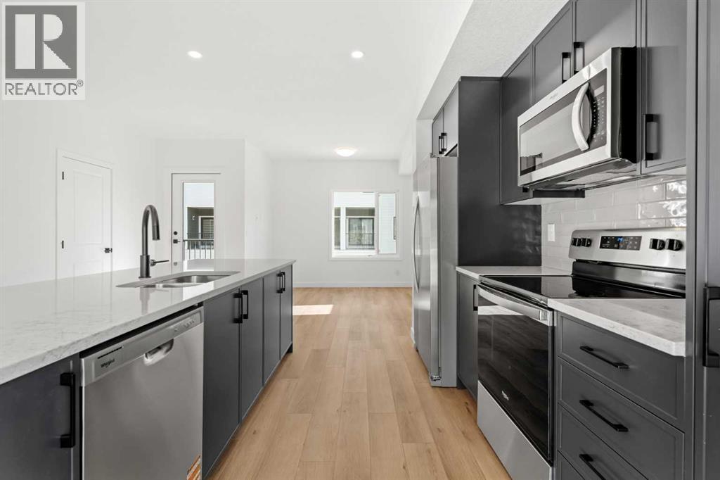 2 YEARS FREE CONDO FEES | NEW BUILD TOWNHOME | LOW CONDO FEES | 4 BED (3 UP, 1 DOWN) / 2.5 BATH / 1,327 SQ FT | ATTACHED GARAGE + DRIVEWAY | IMMEDIATE POSSESSION – Welcome to the Spruce 1 townhome by Minto Communities, an award-winning Canadian builder, located in Wildflower, proudly voted Best New Community in Canada. This vibrant, master-planned community in Airdrie is designed with lifestyle and connection in mind, offering a thoughtful mix of home styles in a neighbourhood built to grow with you.This brand-new townhome offers a spacious and functional layout ideal for families, professionals, or anyone looking for extra flexibility. The main floor features a modern kitchen positioned at the centre of the home, complete with a large island, stainless steel appliances, contemporary finishes, ample cabinetry, and storage. The dining area is located at the front of the home just off the foyer, creating an inviting space for everyday meals or entertaining. Toward the back of the home, the living room provides a comfortable retreat with direct access to a private balcony, perfect for enjoying fresh air. A convenient 2-piece bathroom completes this level.Upstairs, the primary bedroom offers a walk-in closet and private 3-piece ensuite. Two additional bedrooms, a full 4-piece bathroom, and discreet upper-floor laundry complete the upper level, providing excellent functionality for growing households or home office needs.The lower level features a fourth bedroom and direct access to the oversized single attached garage, offering versatility for guests, a home gym, or workspace. A full driveway provides additional parking, adding everyday convenience rarely found in townhome living.Residents of Wildflower enjoy exclusive access to The Hillside Hub, a standout amenity centre featuring Airdrie’s first outdoor pool, a hot tub, open-air sports court, and a variety of shared indoor and outdoor spaces designed for gathering, recreation, or quiet retreat. With nearby parks, pathways, amenities, and easy access to major routes, Wildflower delivers a truly well-rounded lifestyle.Combining award-winning community planning, modern design, low condo fees, and immediate possession, this is an outstanding opportunity to own a stylish new build townhome in one of Canada’s most celebrated communities. Don’t miss your chance to make Wildflower home! Book your visit today! (id:63190)
