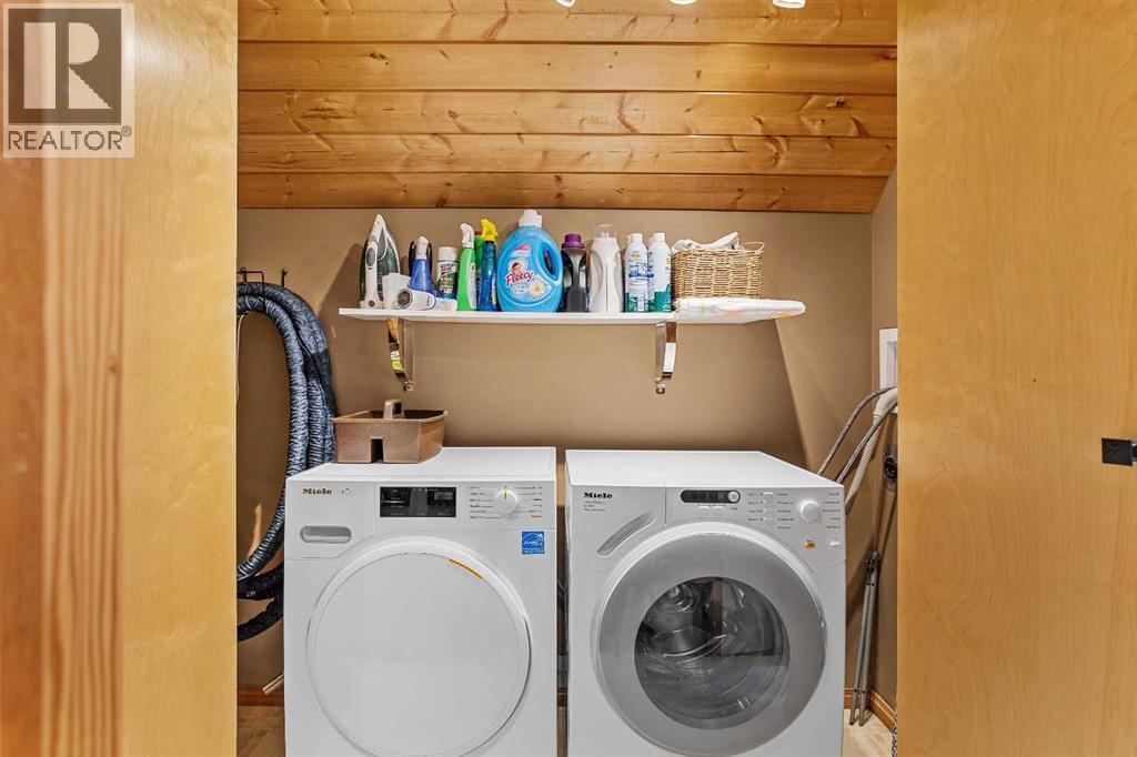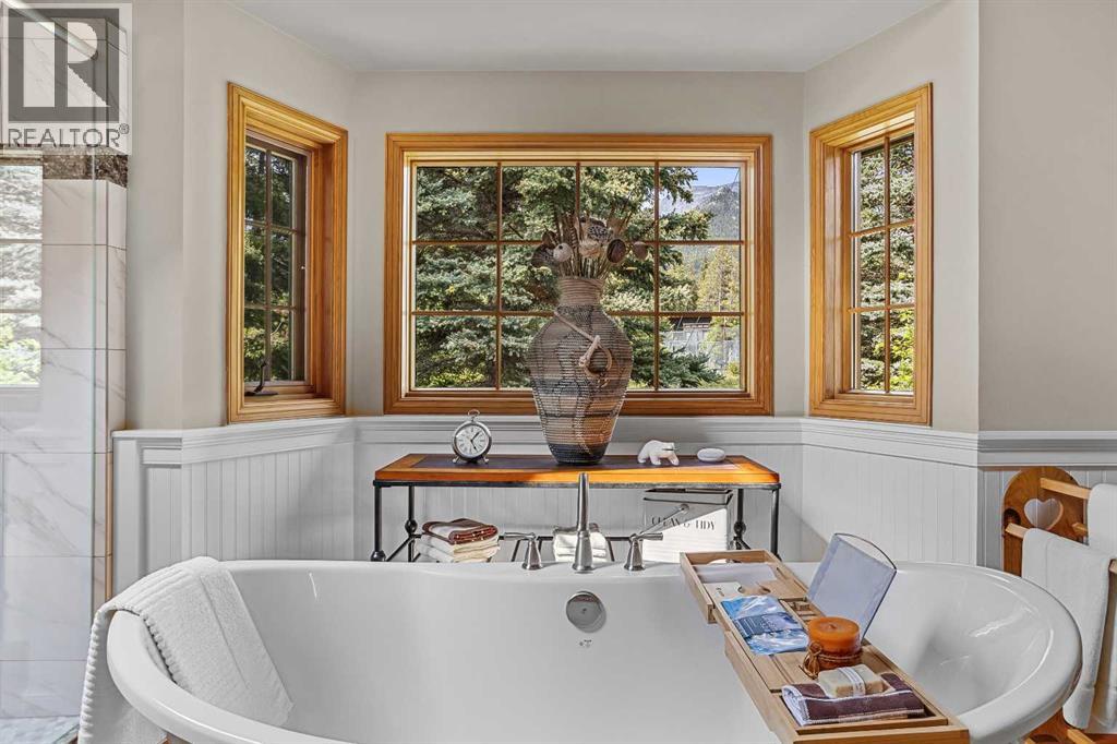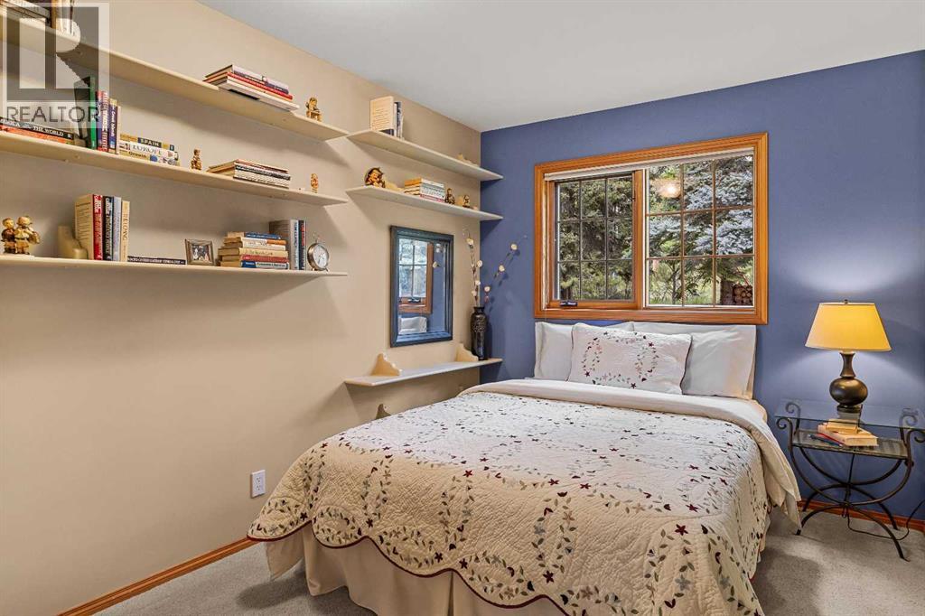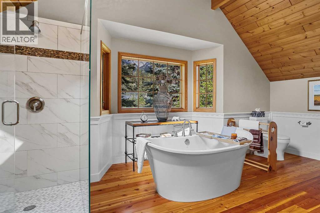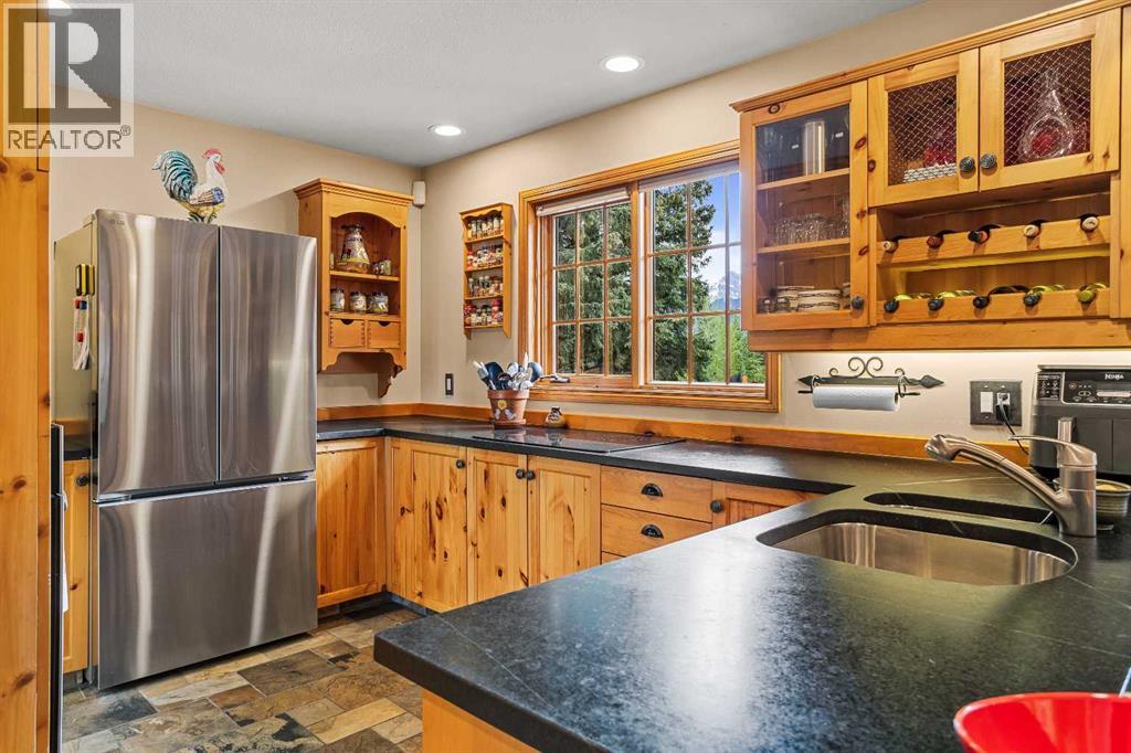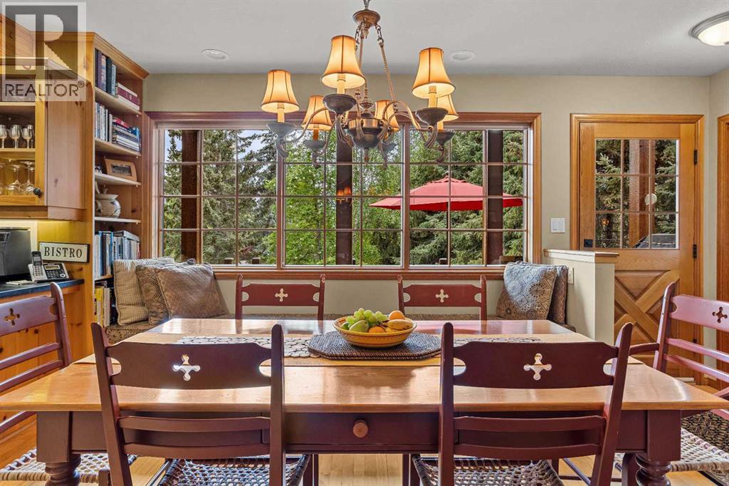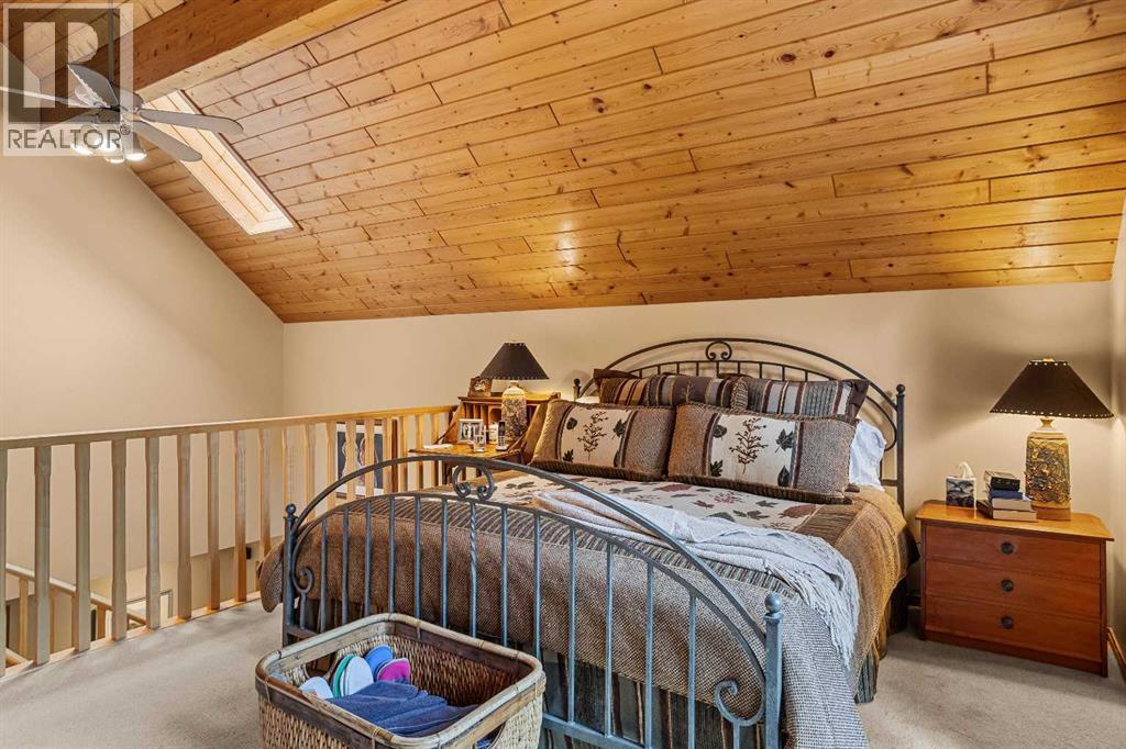Exempt from the foreign buyer ban, this exquisite mountain estate is quietly nestled in the serene hamlet of Harvie Heights, just minutes from the heart of Canmore. Set on a beautifully landscaped 11,250+ sq.ft. lot and surrounded by mature trees and mountain vistas, this is a rare opportunity to own a private alpine escape. Blending rustic charm with refined comfort, the home features vaulted ceilings, rich hardwood floors, and a spiral staircase that adds architectural elegance to the warm, wood-accented interior. The thoughtful layout includes 4 bedrooms and 3 bathrooms, plus a spacious lower-level family room, and additional storage — ideal for future customization. Four sun-drenched sundecks invite you to relax and take in the sweeping views, while a tandem double garage provides ample space for vehicles and gear. One of the few properties still eligible for foreign ownership, this mountain sanctuary is a truly rare offering in today’s market. (id:63190)