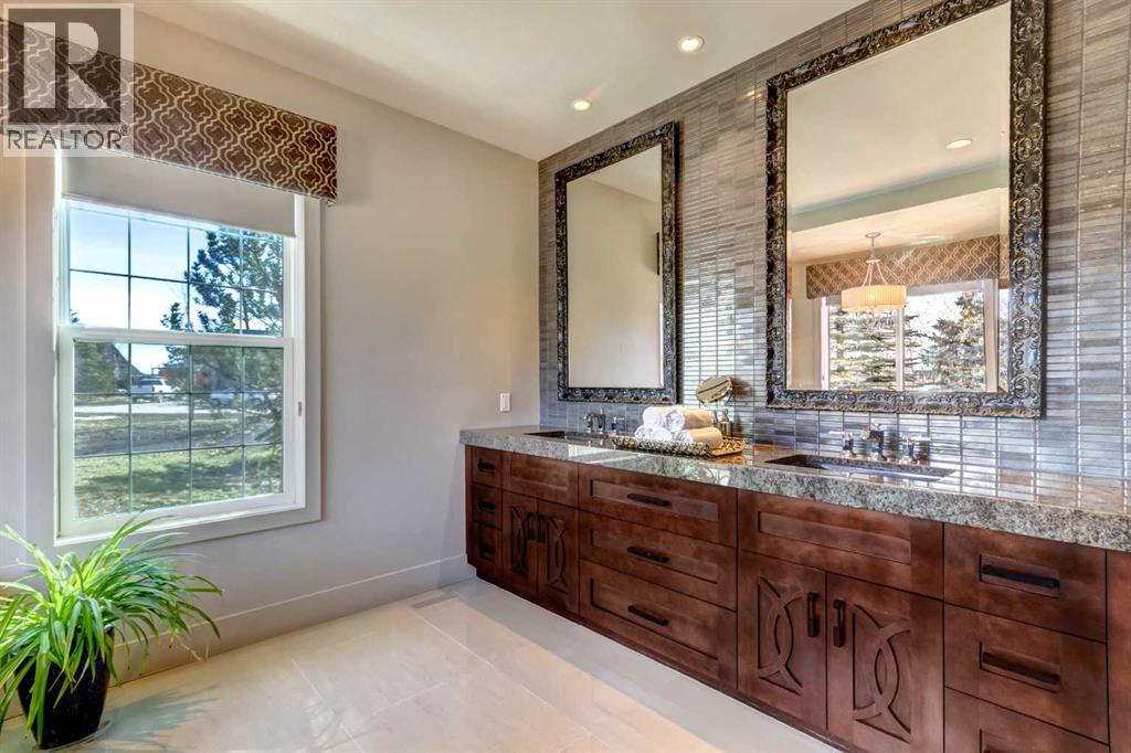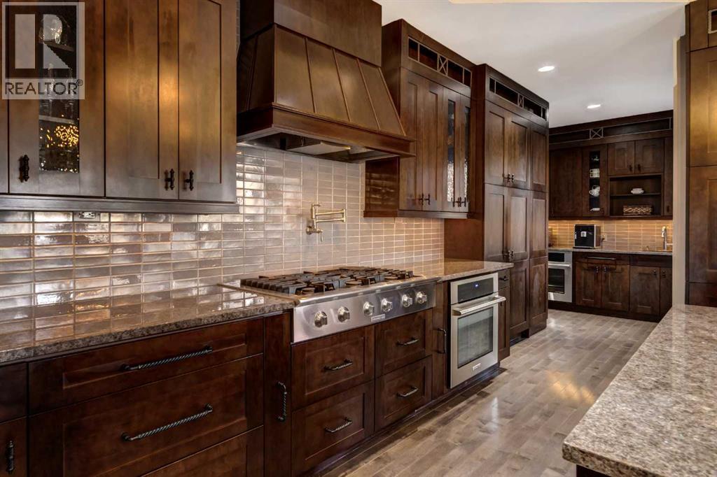 Nestled between the City of Calgary and Heritage Pointe, 1+2 bedrooms, 3158 Sq Ft Walkout Bungalow offers a rare opportunity to own an exquisite 1.4-acre ravine property that perfectly blends luxury, comfort, and natural beauty. This extraordinary estate captures the best of both worlds—tranquil country living and easy city access—making it an ideal sanctuary for those seeking privacy without compromise.From the moment you arrive, the property’s serene setting draws you in. Framed by mature trees and sweeping ravine views, this oversized, fully serviced lot provides an unparalleled sense of space and seclusion while remaining only minutes from Calgary’s city limits. Whether hosting lively gatherings or enjoying peaceful mornings on the deck, this bungalow promises a lifestyle defined by balance, elegance, and connection to nature.Completely renovated throughout, this exceptional bungalow showcases refined design and exceptional craftsmanship. The open-concept main floor features vaulted ceilings and a striking two-sided stone fireplace, creating an atmosphere of warmth and sophistication. Sunlight fills the living spaces, emphasizing the home’s flowing layout and high-end finishes that blend timeless charm with contemporary function.At the heart of the home lies a gourmet chef’s kitchen—an inspiring space designed for both culinary adventures and entertaining. Granite countertops, a large island with breakfast bar, and a dedicated scullery kitchen provide both beauty and convenience, seamlessly blending style and practicality. Every element has been thoughtfully curated to create a kitchen that is as inviting as it is functional.The primary suite is a serene retreat offering spa-like luxury with in floor heating, digital shower controls, and a five-piece ensuite designed for relaxation. Each bedroom includes a walk-in closet, and all bathrooms feature premium finishes that elevate daily routines into indulgent experiences.Transition effortlessly from indoor to outdoor living, where an expansive front deck with a stone fireplace and built-in seating offers the perfect gathering spot for evenings under the stars. The multi-tiered back deck, featuring a built-in hot tub, overlooks the breathtaking ravine—ideal for entertaining or simply unwinding in nature’s embrace.The fully developed walk-out basement expands the home’s versatility with in floor heating, a spacious recreation room with wet bar, a private gym, and a second den or home office. Every square foot is designed for both relaxation and functionality. Thoughtful additions such as an oversized triple garage with in floor heating, a main floor laundry room with full cabinetry, a mud room, and abundant storage space enhance convenience and comfort throughout.With its prime location, meticulous renovations, and unrivaled privacy, This bungalow redefines ravine living. This one-of-a-kind estate delivers the ultimate combination of natural beauty, modern luxury, and effortless convenience. (id:63190)