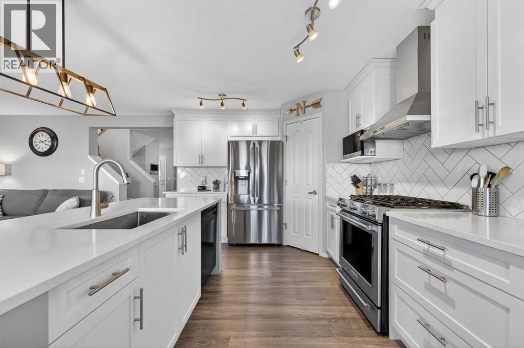 JEWEL OF A DEAL | RENOVATED - NEW PRICE - SIDE ENTRY | PRIME LOCATION This exceptional home offers the perfect combination of style, function, and location—just steps from the pathways, parks, schools, shopping, transit, and major expressways. Enjoy year-round access to the community’s premier amenities. Saddle Ridge’s long-standing heritage, combined with a diverse community, exemplifies Calgary’s cultural mosaic and its past, present, and future. Meticulously crafted and upgraded, this URBAN STYLE home offers over 2,897 sq ft of living space, including 4 bedrooms, 3.5 bathrooms, a bonus room, and a fully finished lower level. The main floor features an open-concept design with a bright, spacious great room anchored by a cozy gas fireplace, flowing seamlessly into the dining area and chef-inspired kitchen. The kitchen is designed for both efficiency and entertaining, featuring new Shaker-style cabinetry, a gas cooktop stove with a custom hood cover, upgraded stainless steel appliances, a walk-in pantry, a chevron tile backsplash, upscale lighting, and a dramatic central island with a flush eating bar and an undermount steel sink. Gleaming luxury vinyl wide plank floors and upgraded tile in all baths elevate the space. Upstairs, a front bonus room—perfect for family movie nights—offers a den/office setup with the expansive primary suite from two additional bedrooms at the rear of the home. The primary retreat includes a spa-inspired ensuite with a deep soaker tub, a separate shower, and a large walk-in closet. The fully developed basement includes a side entry door, adds a fourth flex room/bedroom, a full bathroom, and a spacious recreation area, providing versatility for guests, extended family, or a home gym. Outdoor living is easy with a low-maintenance landscaped yard, two deck areas, and mature landscaping. The home’s curb appeal is enhanced by stone accents, wood details, a panelled garage door, and a covered front entry. Additional features: Oversized, pie-s haped yard with no rear neighbours; modern lighting and plumbing fixtures; white-painted baseboards, casings, and doors; upscale wall decor and wainscotting. With its ideal location, functional floor plan, and quality finishes, this home delivers both comfort and convenience. Call your friendly REALTOR® today to arrange your private tour! (id:63190)