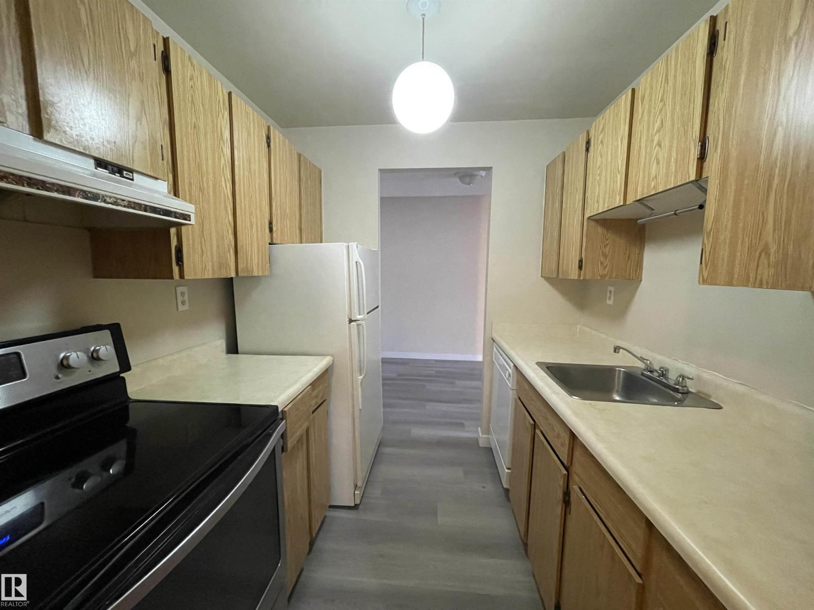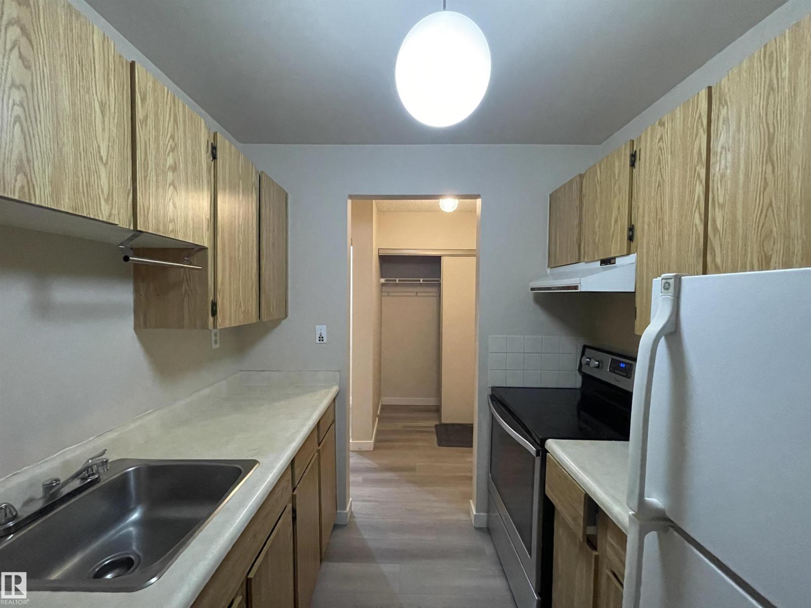 Spacious 1 bedroom. Reasonable condo fees including water and heat, and close to all amenities. Great investment property in the heart of Milwoods with 1100-1150 dollars income per month, quiet and pieceful. Brand new 7 mm Vinyl flooring and new baseboard installed, Min driving to the Anthoney Henday. 1 bedroom 1-bathroom, cozy kitchen and a huge living room with big patio door. The bedroom is a good size for a king or queen size bed. balcony overlooking the parking and perfect for hanging out and entertainment on a sunny day. close to schools, parking and shopping. (id:63190)