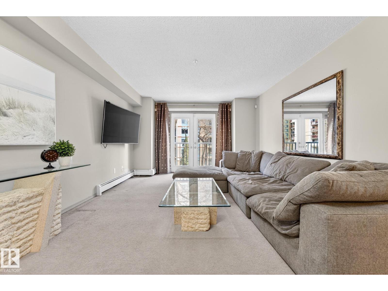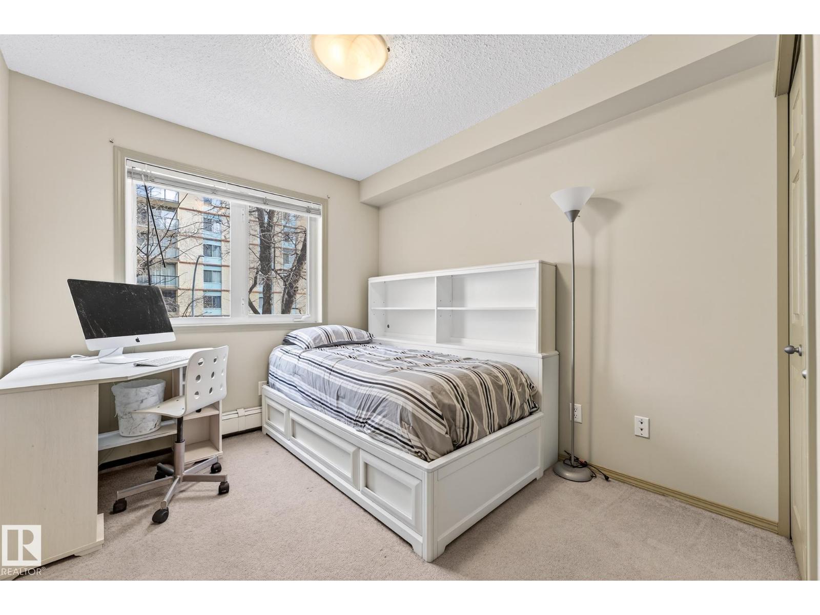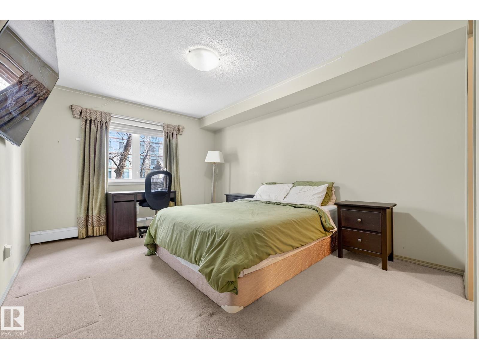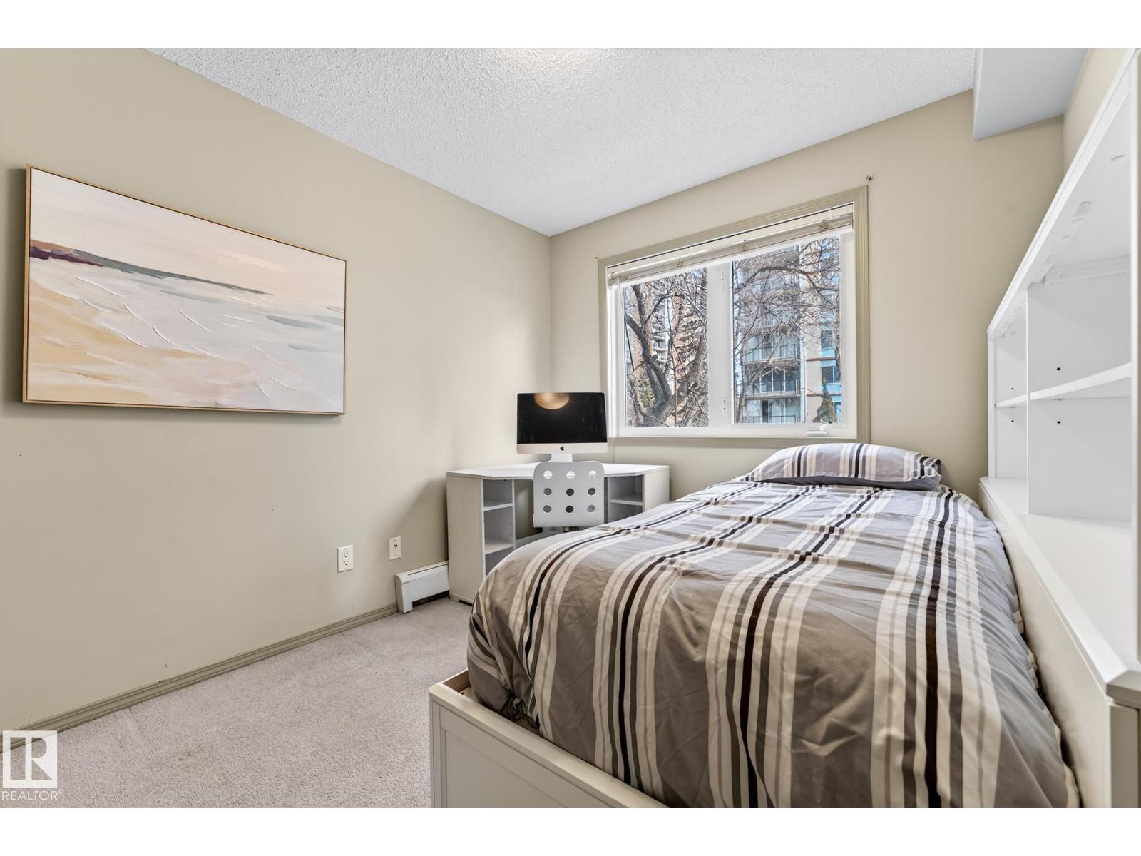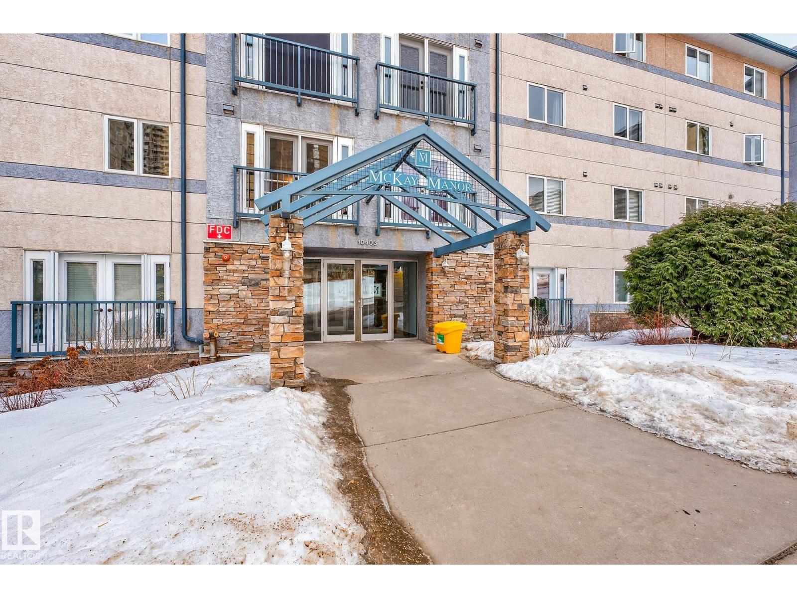 Fabulous & affordable 2 bedroom & 2 bathroom 900 sq.ft home is perfect for those attending U of A/Grant MacEwan/Nait or those working downtown! Located in McKay Manor, this well-managed complex with LOW condo fees is PET FRIENDLY with a high owner-occupancy rate and is situated on a quiet street just steps to the River Valley & all that downtown Edmonton has to offer including restaurants, cafes, shopping, public transit, and so much more. The unit is close to the elevator, and features an open concept design. Your kitchen has plenty of counter space, cabinet storage, and eating bar & pantry and overlooks the bright spacious living/dining room area with a juliet balcony facing a peaceful street. The HUGE primary bedroom offers a walkthru closet & 3pc ensuite, and rounding off the home is a 2nd bedroom, 4pc bathroom, INSUITE laundry & a titled underground heated parking stall. The complex offers a courtyard, gym & social room, 13 visitor parking stalls, car wash & bike storage & 2 elevators. (id:63190)