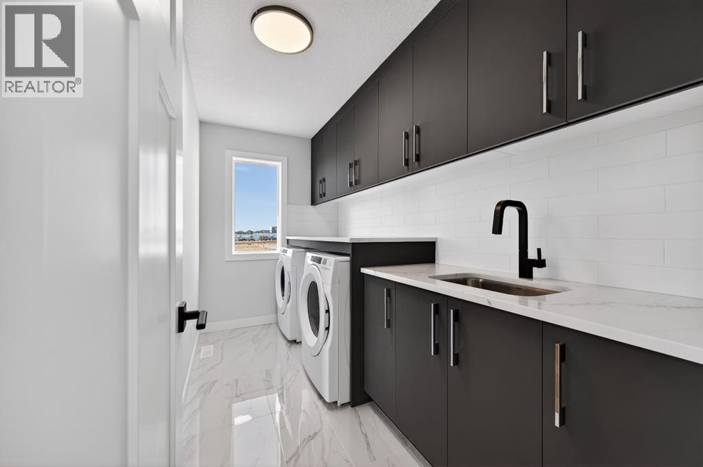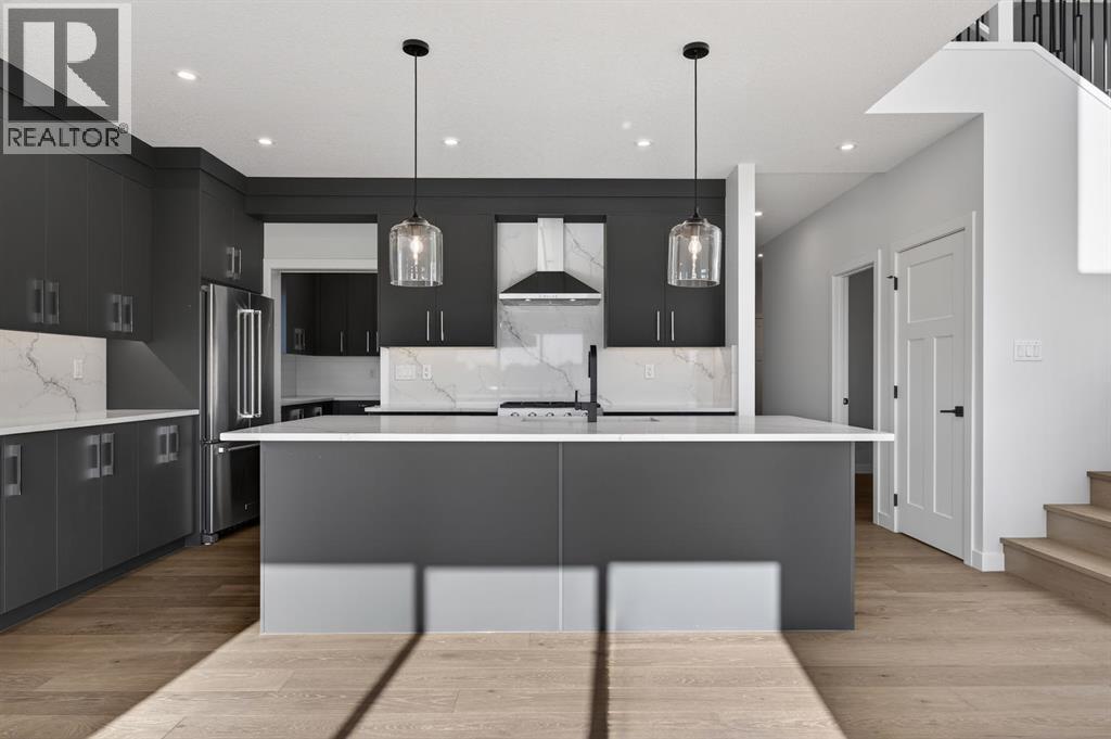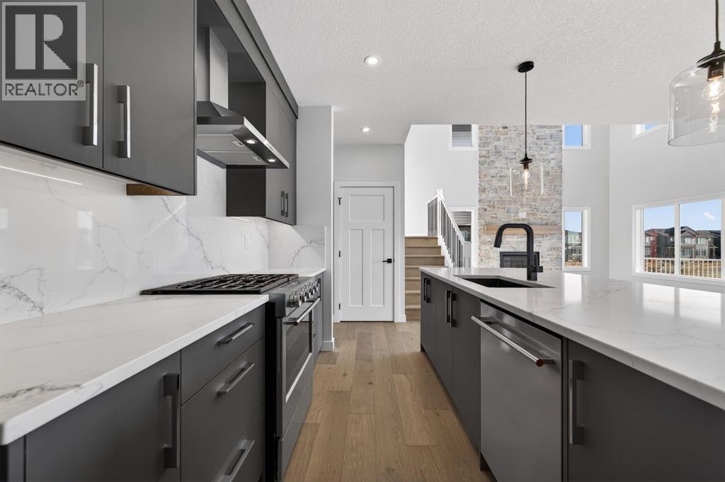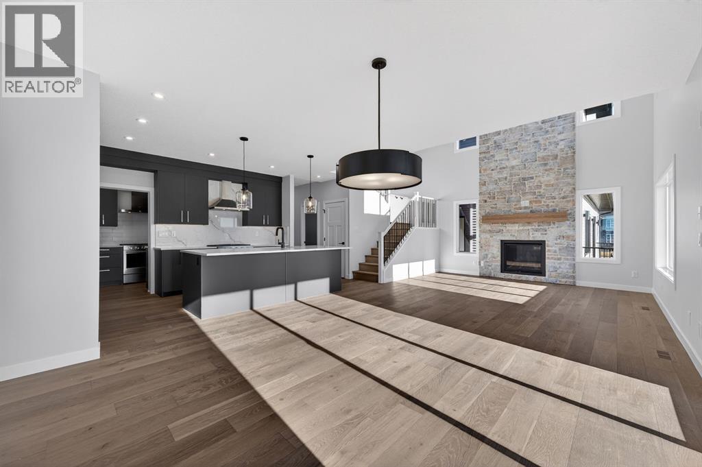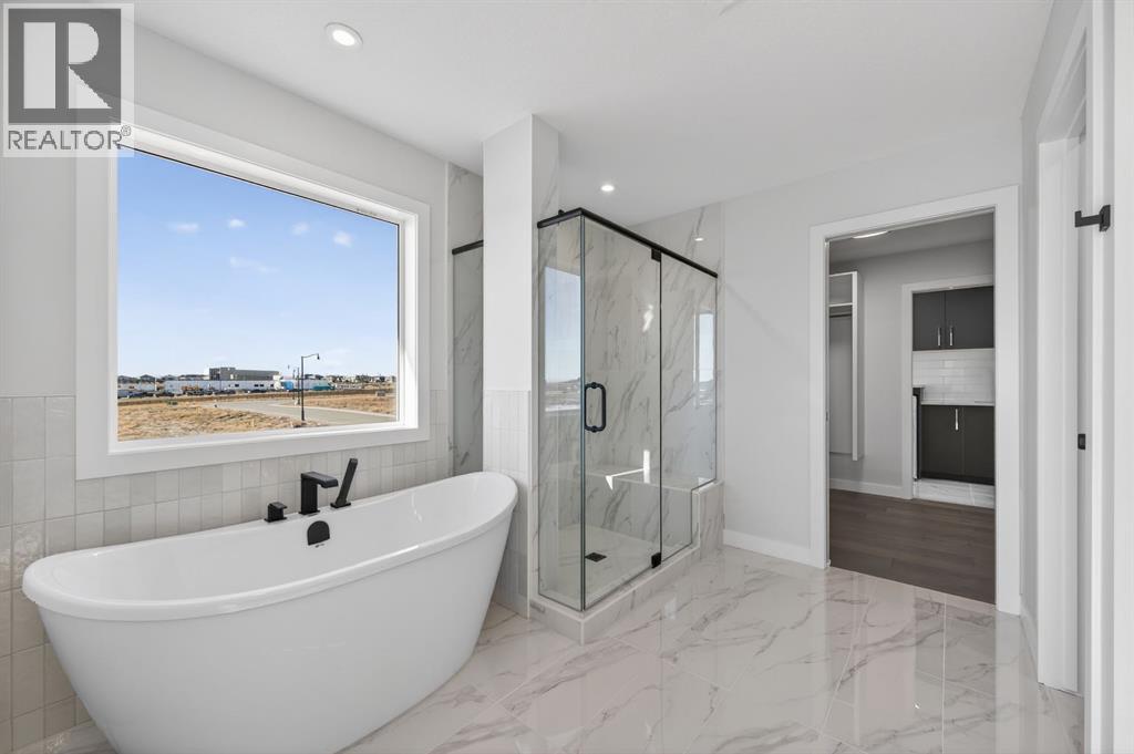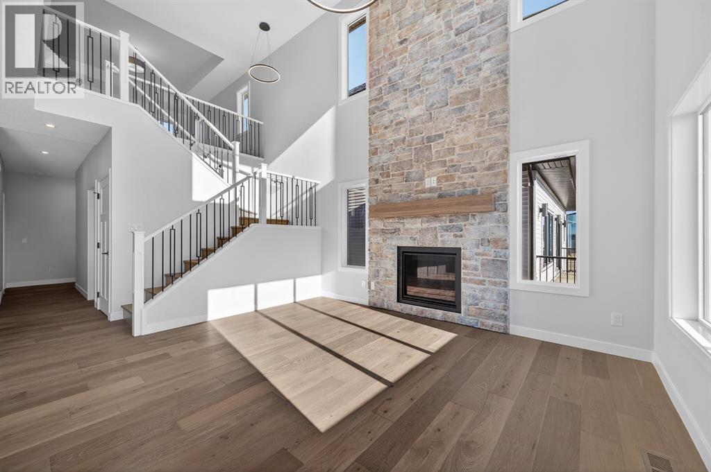Welcome to this exceptional new TRUMAN home in Dawson's Landing — where premium finishes, thoughtful design, and meticulous craftsmanship come together to create a residence that truly stands apart.The open-concept main floor is designed to impress, featuring a chef-inspired kitchen complete with full-height cabinetry, soft-close doors and drawers, quartz countertops, a premium appliance package, and a spacious walk-in pantry. A dedicated spice kitchen enhances both functionality and flexibility — perfect for entertaining or preparing family meals with ease. The bright and inviting Great Room is anchored by a stylish fireplace, adding warmth and modern elegance to the space.A rare and highly desirable feature, the main floor bedroom with a full bathroom offers exceptional versatility — ideal for guests, multigenerational living, or a private home office.Upstairs, the Primary Suite serves as a luxurious retreat, highlighted by a spa-inspired 5-piece ensuite with dual vanities, a tile shower, standalone soaker tub, and a generous walk-in closet. Two additional bedrooms, a 5-piece bathroom, convenient upper-level laundry, and a central bonus room provide ample space for comfortable family living.Adding even more value and potential, this home features a walk-out basement, offering abundant natural light and seamless access to the backyard — an ideal foundation for future development, whether you envision additional living space, a home gym, or an entertainment area tailored to your lifestyle.Completing this remarkable home is a triple-car garage, providing ample room for vehicles, storage, and hobbies.Located in Dawson’s Landing, residents enjoy preserved wetlands, scenic walking paths, playgrounds, and convenient access to Chestermere’s schools, shopping, and vibrant lake lifestyle — all just minutes from Calgary.Built by Truman, this home exemplifies signature craftsmanship and contemporary design, giving you the opportunity to Live Better in one of Chestermer e’s most sought-after new communities. (id:63190)