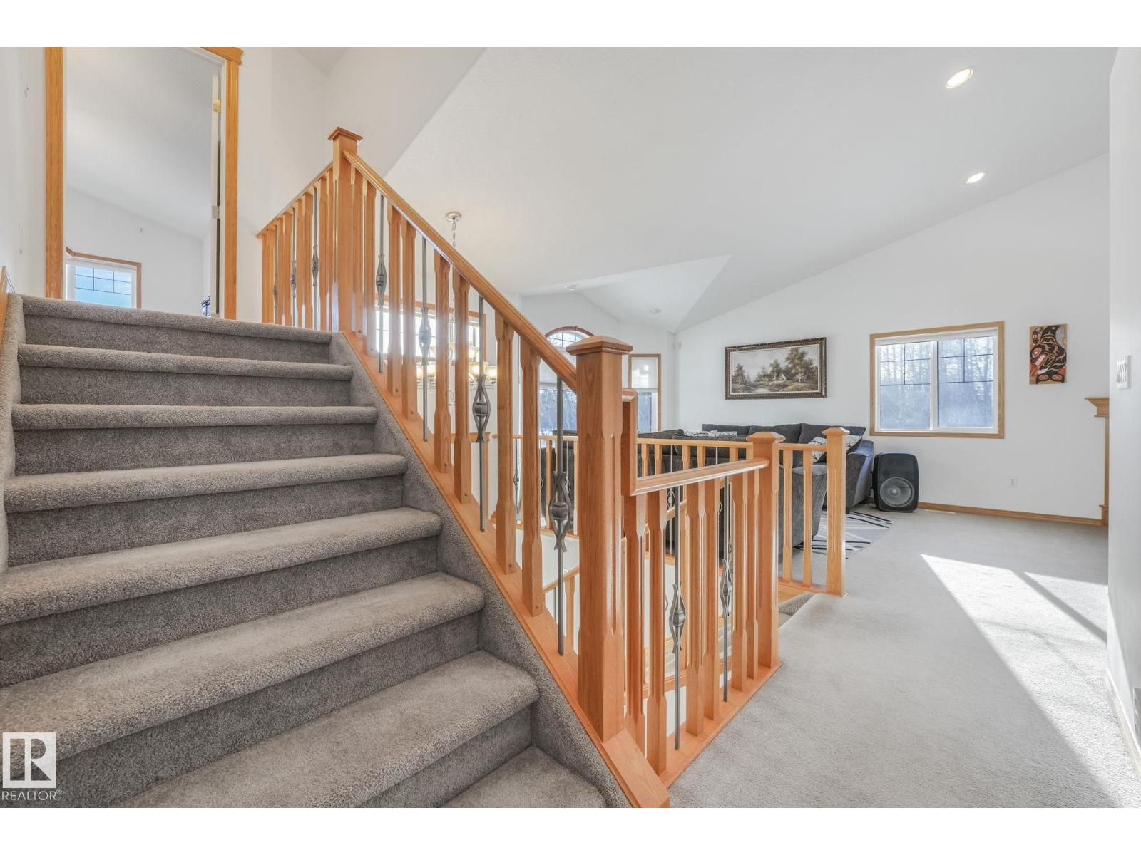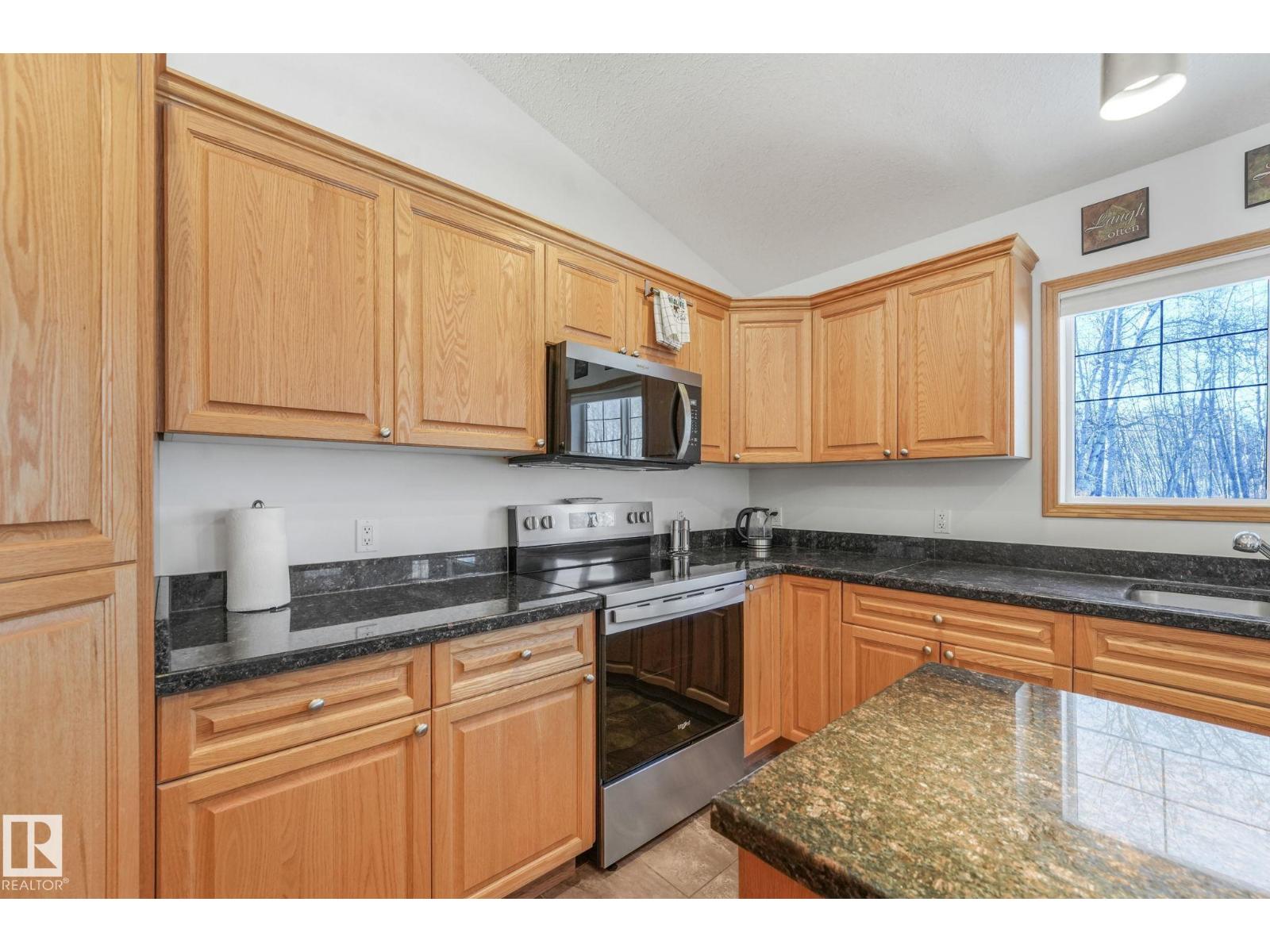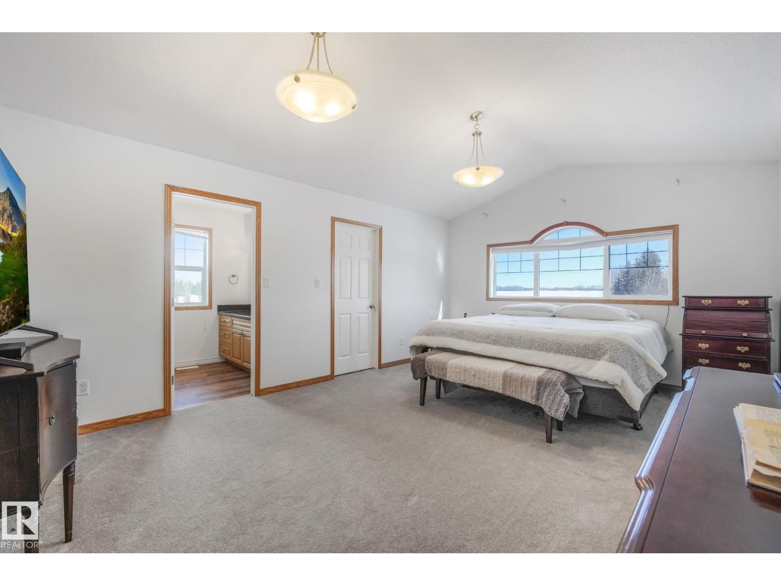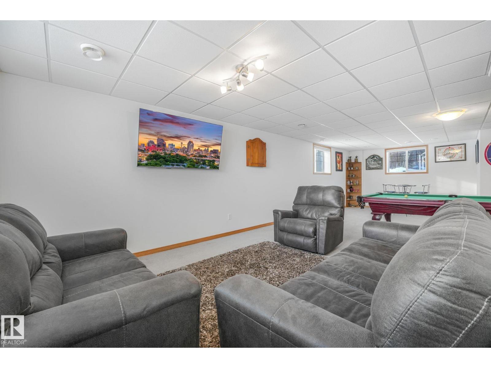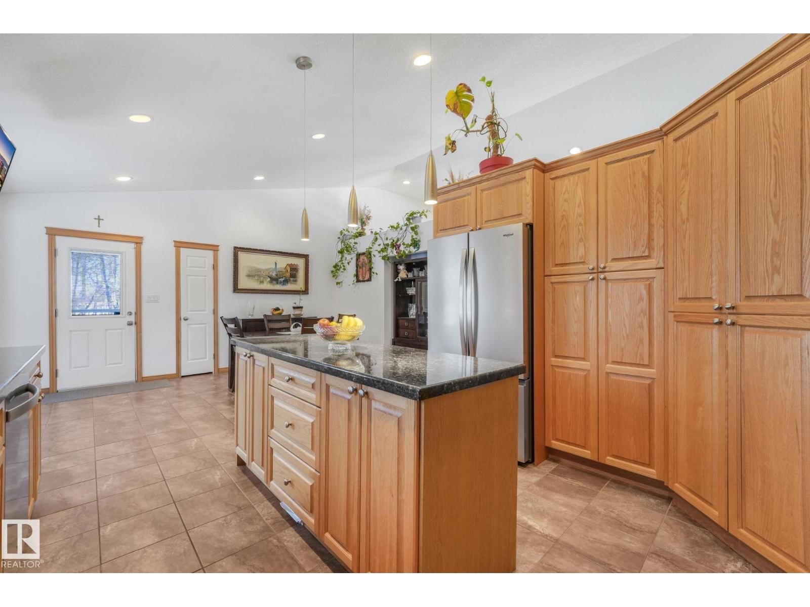 Tucked away on 10 private acres just 40 minutes from the city, this beautifully maintained bi-level offers the space, privacy, and lifestyle you have been waiting for. Vaulted ceilings and a cozy fireplace create a warm, inviting main living area filled with natural light. The kitchen features granite countertops, oak cabinetry, new stainless steel appliances, and a large pantry. The dining area opens onto a two-tiered deck with natural gas BBQ hookup, perfect for summer evenings. The primary suite includes an updated ensuite with new shower and flooring. Downstairs offers a massive rec room, office nook, and an additional bedroom with its own ensuite. Enjoy central A/C, heated double garage, and major upgrades including furnace (2019), well pump (2022), and water filtration (2023). Outside features a pond, trails, mature trees, fruit bushes, a chicken coop, and 40x20 quonset. (id:63190)