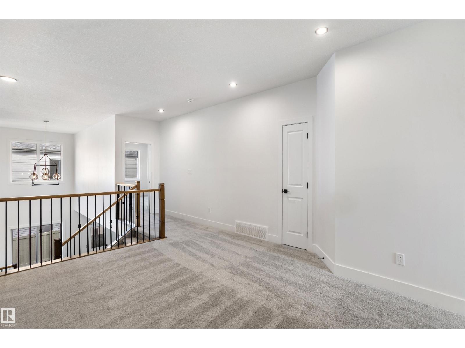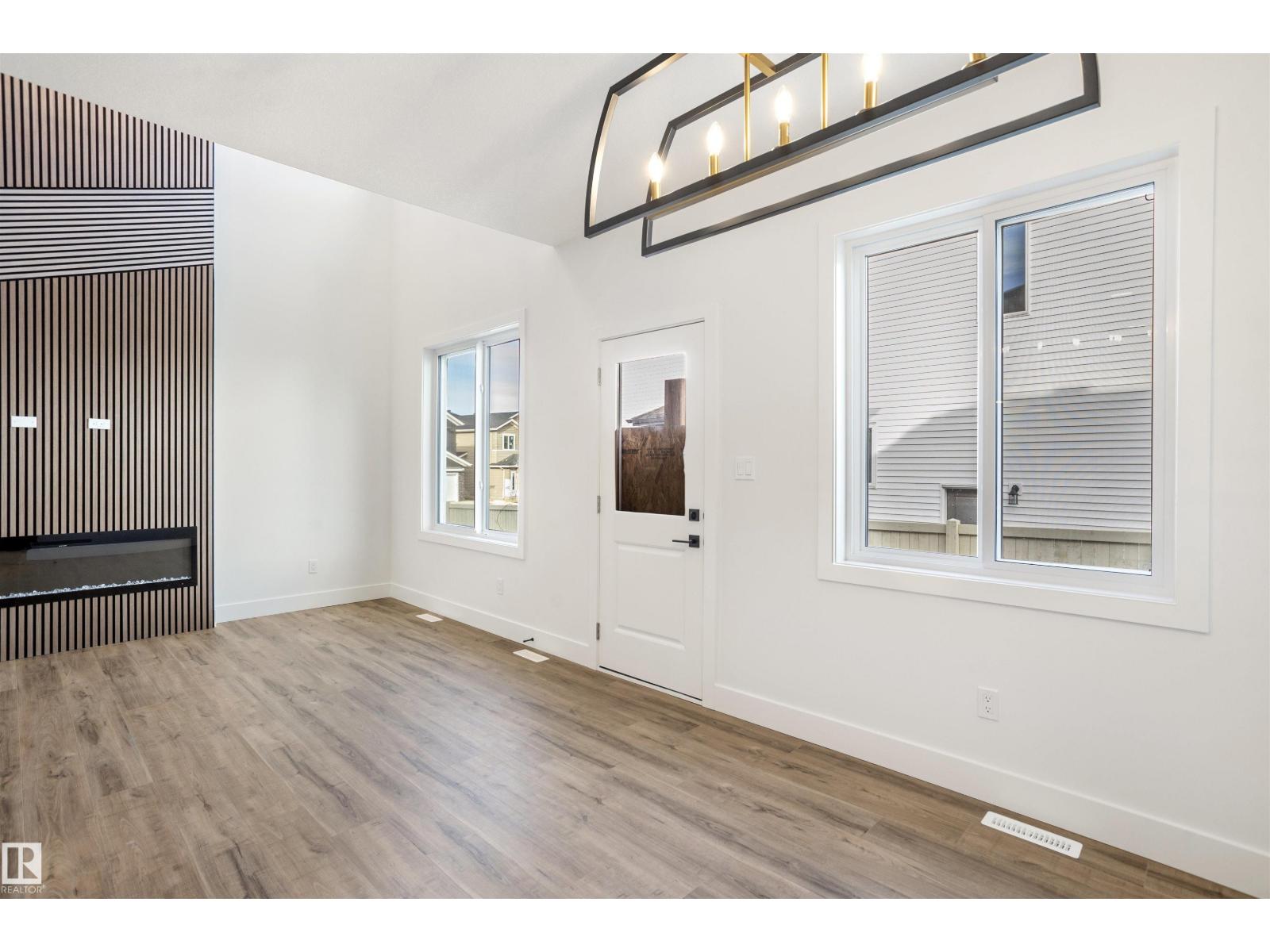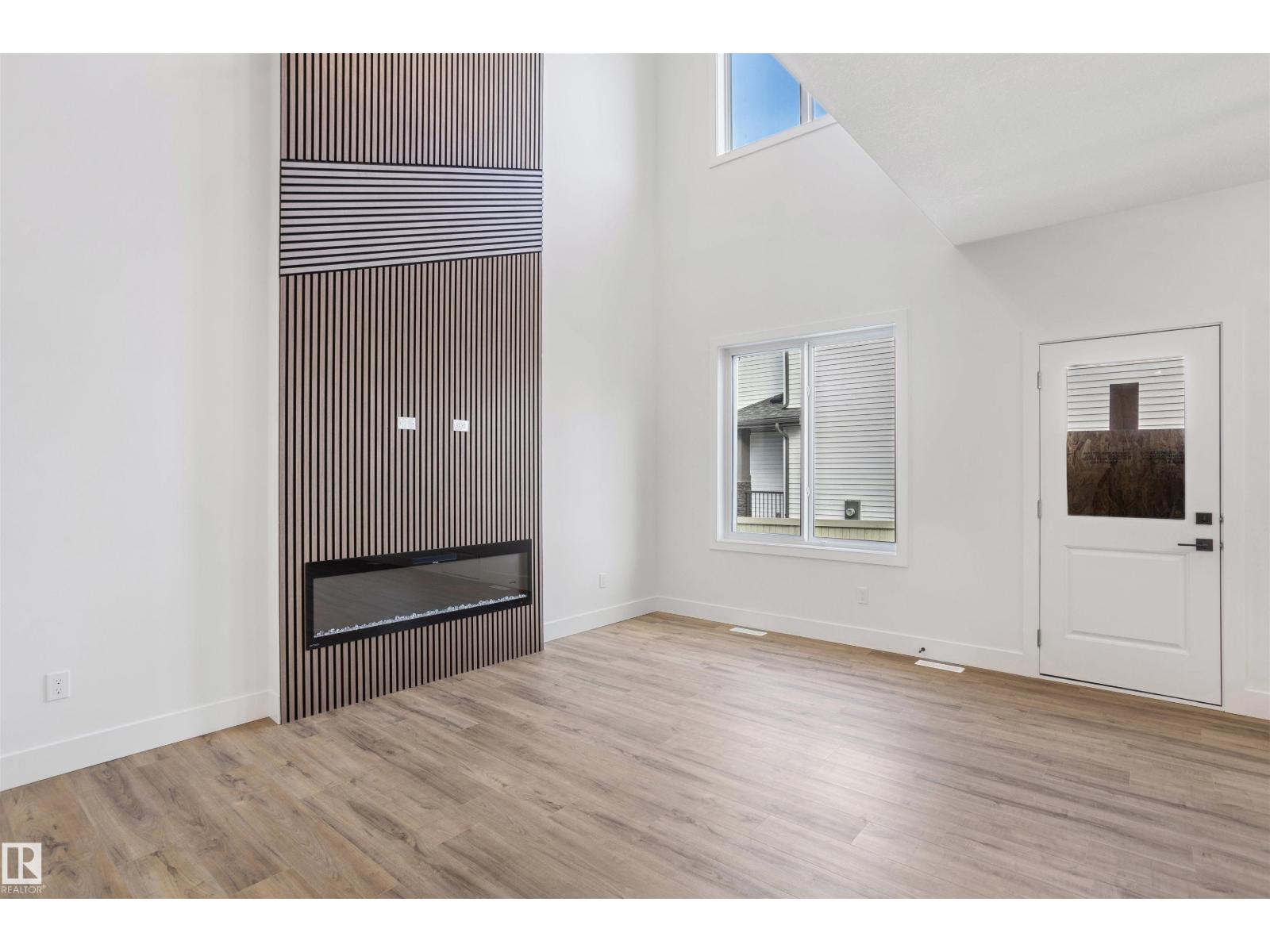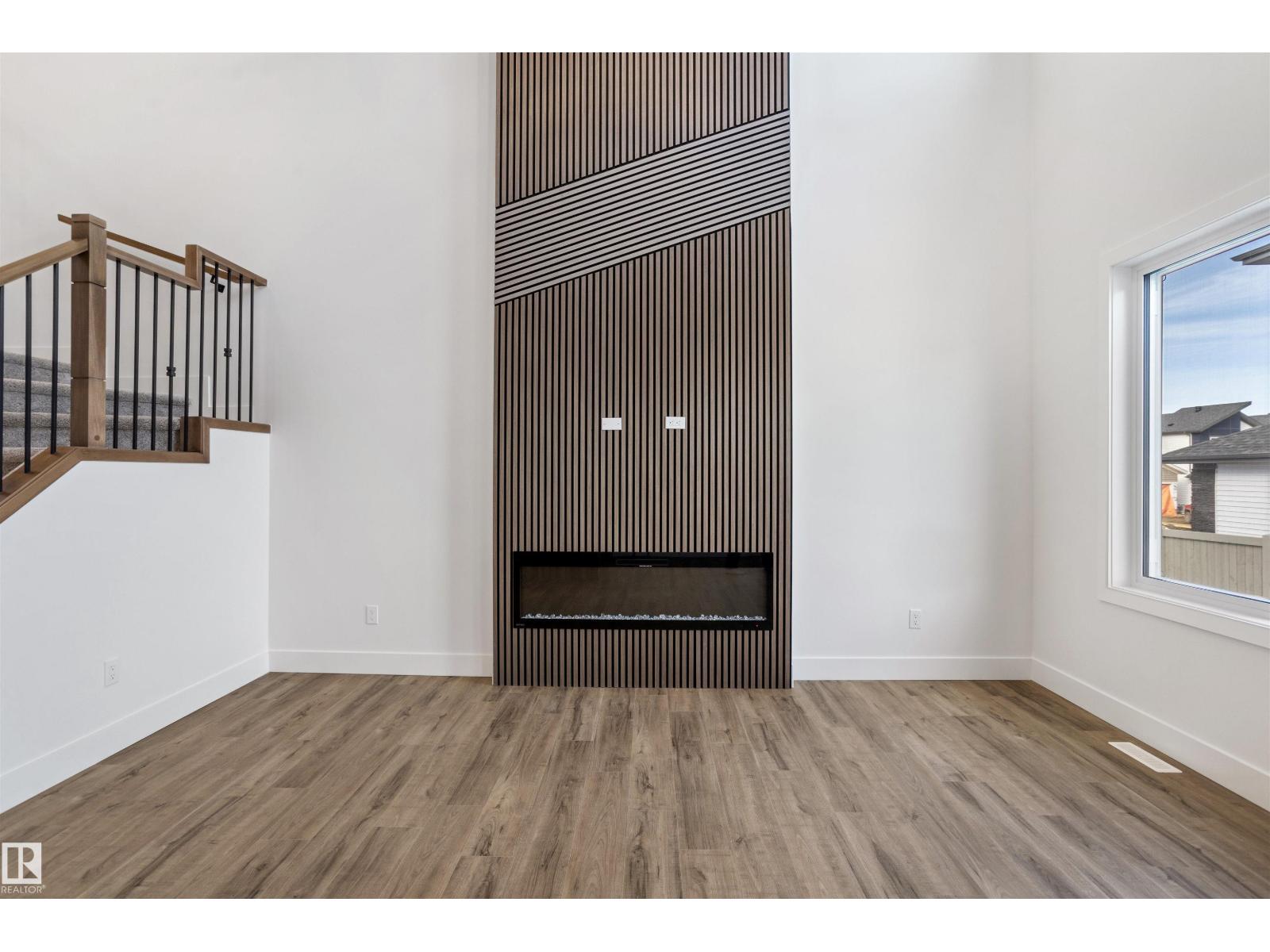Welcome to this brand new home in the desirable McLaughlin community of Spruce Grove, ideally located near walking trails and green space. Thoughtfully designed for modern living, this property offers 3 spacious bedrooms upstairs, 3 full bathrooms, and a versatile main-floor den with a full bath featuring a standing shower—perfect for guests or a home office. The open-to-below living room with fireplace creates a bright and elegant main living area, while the master bedroom features a stylish feature wall that adds a touch of sophistication. Upstairs, you’ll also find a generous bonus room and the convenience of laundry. The kitchen is enhanced by a walkthrough spice kitchen and features quartz countertops, soft-close cabinetry, and luxury vinyl plank flooring throughout, combining style and functionality for everyday living and entertaining. Complete with a double attached garage and side entrance to the basement for future development potential. (id:63190)