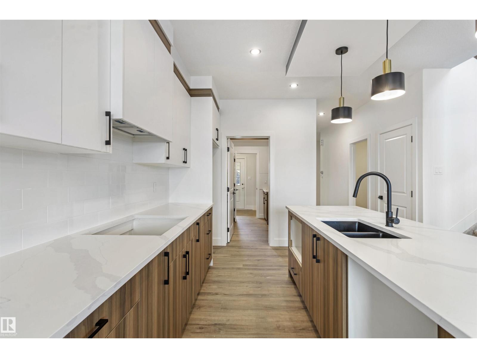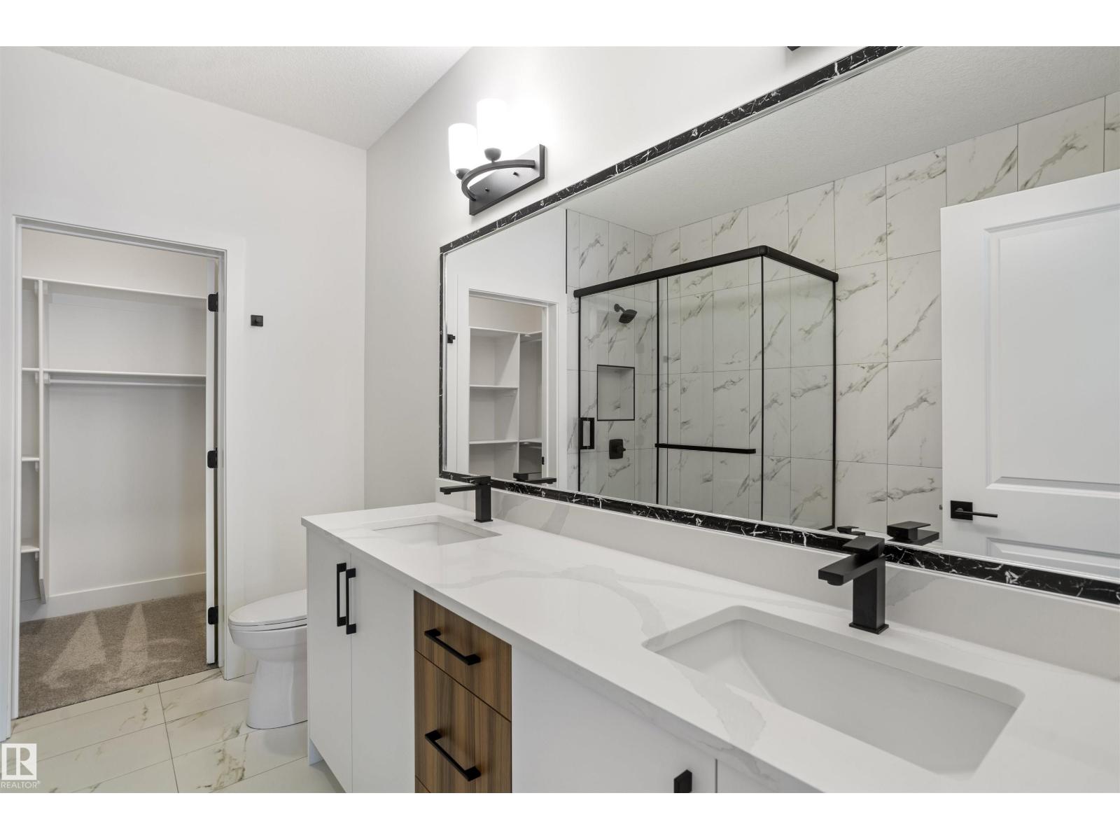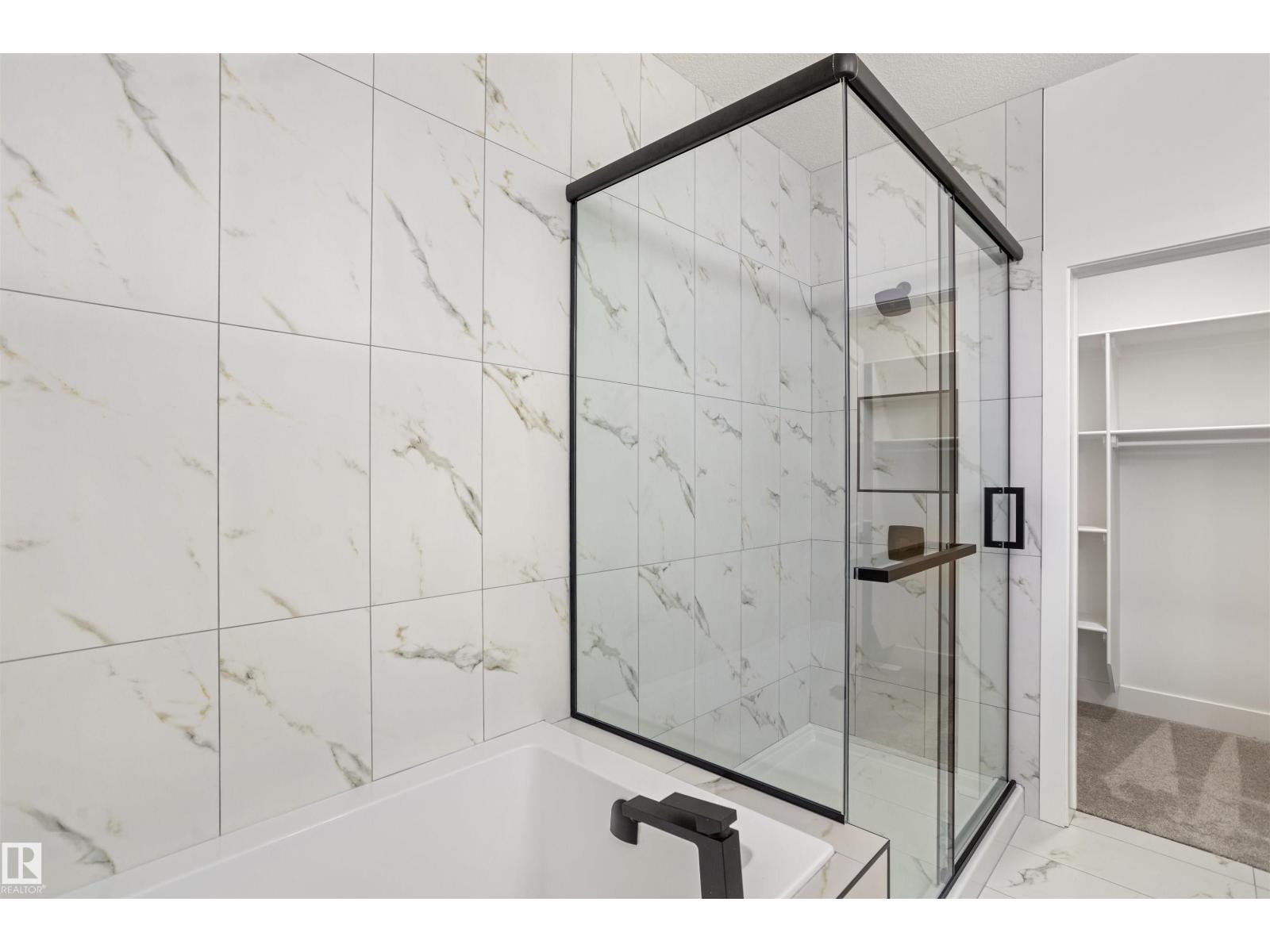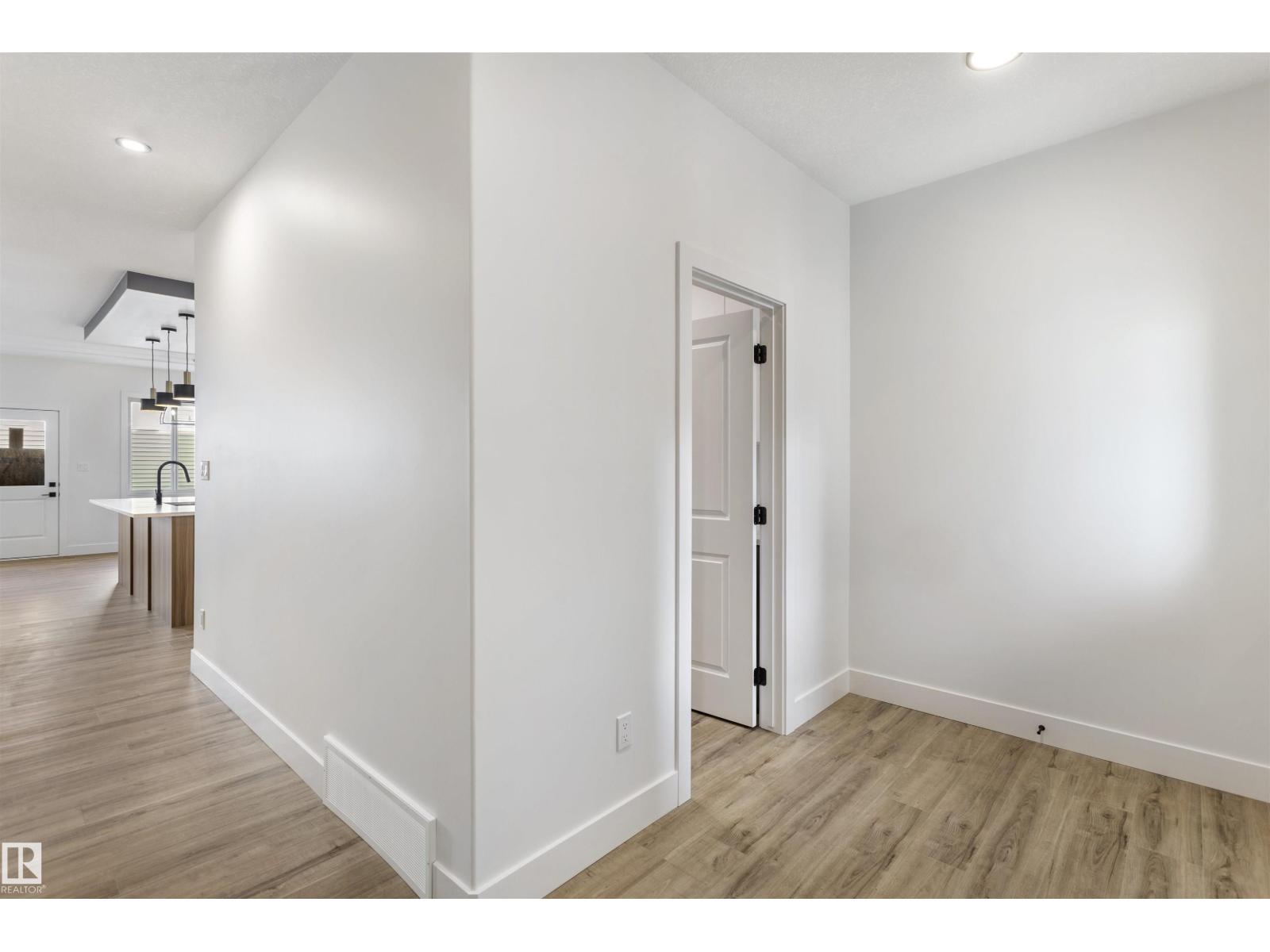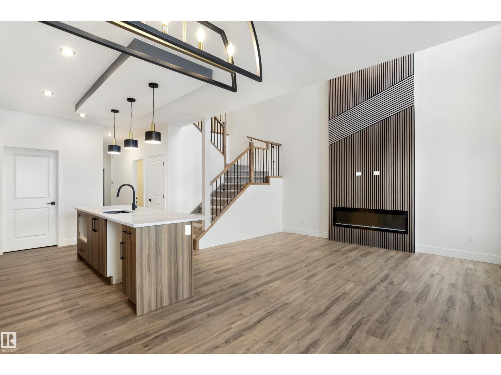 Welcome to this brand new home in the desirable McLaughlin community of Spruce Grove, ideally located near walking trails and green space. Thoughtfully designed for modern living, this property offers 3 spacious bedrooms upstairs, 3 full bathrooms, and a versatile main-floor den with a full bath featuring a standing shower—perfect for guests or a home office. The open-to-below living room with fireplace creates a bright and elegant main living area, while the master bedroom features a stylish feature wall that adds a touch of sophistication. Upstairs, you’ll also find a generous bonus room and the convenience of laundry. The kitchen is enhanced by a walkthrough spice kitchen and features quartz countertops, soft-close cabinetry, and luxury vinyl plank flooring throughout, combining style and functionality for everyday living and entertaining. Complete with a double attached garage and side entrance to the basement for future development potential. (id:63190)