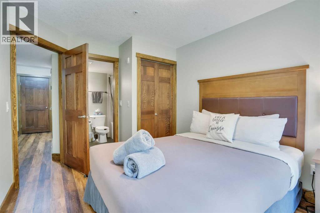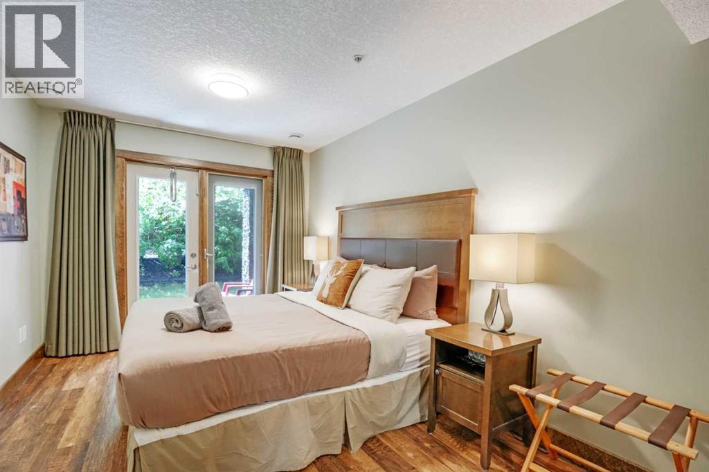 Enjoy the warm afternoon sun from one of 2 SW patio’s surrounded by attractive mountain architecture and beautiful views of the Mt. Rundle! This is one of the most peaceful and quiet locations you will find! This spacious 2 story townhouse has direct access to your vehicle for easy unloading of all of your gear & groceries! The entry level has a cozy living area, bright dining area with fully equipped kitchen and half bath. The doors and trim throughout are solid pine and the most of the flooring has been recently upgraded to match the warm mountain feel of the decor. Downstairs there are 2 large bedrooms each with their own ensuite and own direct outside access. The larger ensuite has been upgraded. The 18 foot long bedroom has the space to include an additional twin bunk which would expand the sleeping to 8-9 people (similar to most 3 bedrooms)! With this upgrade, Income should be strong and part way between a 2 bedroom and 3 bedroom! There is ample storage space both within the unit and in the external storage locker conveniently located beside the entrance door. Amenities include a hot tub & fitness room only a 10 second walk away. Fire Mountain Lodge has a healthy reserve fund and relatively low condo fee which includes air conditioning and in floor heating on the lower level. The location is ideal just a short walk away from the shops of Canmore and Spring Creek. List Price is $919,000+GST. GST is often deferred and not paid at the time of sale when the buyer is GST registered. All furniture, furnishings, kitchenware and unit items are included in the sale. This is a fantastic opportunity to own property & generate strong income on Airbnb! (id:63190)