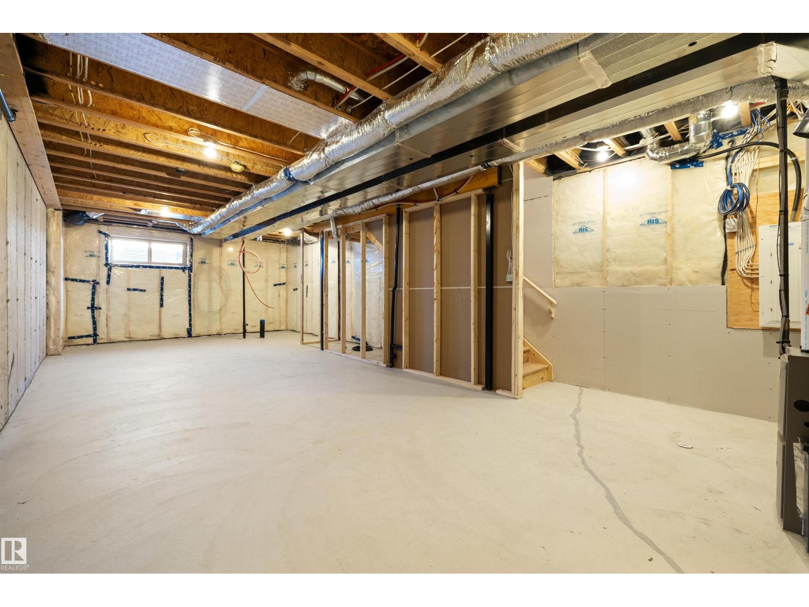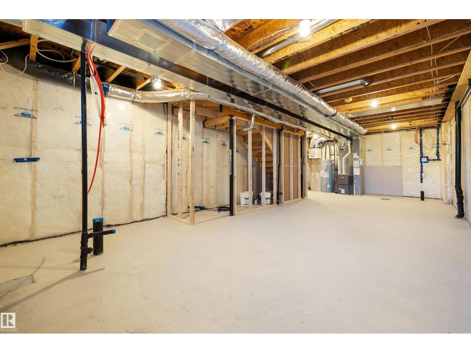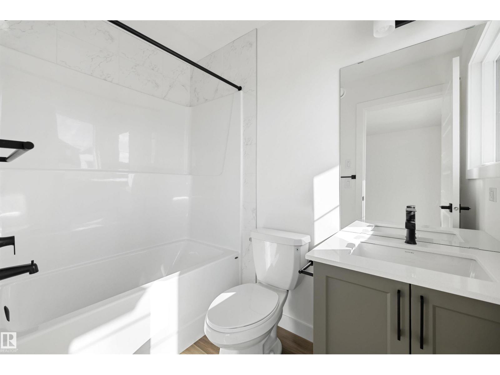 Built by Sterling Homes, this modern duplex in Marquis offers stylish living in a growing northeast community near parks, trails, and future amenities. Triple pane windows and 9’ ceilings create a bright, open main floor with sleek luxury vinyl plank flooring throughout. The kitchen features quartz countertops, a central island with seating, upgraded cabinetry, chimney hood fan, full-height tile backsplash, and built-in microwave. Large rear windows fill the dining nook with natural light, while a nearby pantry and half bath add convenience. A side entrance offers flexibility for future development or separate access. Upstairs, the primary suite includes a walk-in closet and 3-piece ensuite, along with two additional bedrooms, a full bath, upper-floor laundry, and a versatile loft. A backyard parking pad, double attached garage with floor drain, and basement rough-ins complete this well-designed home in a community poised for growth. (id:63190)